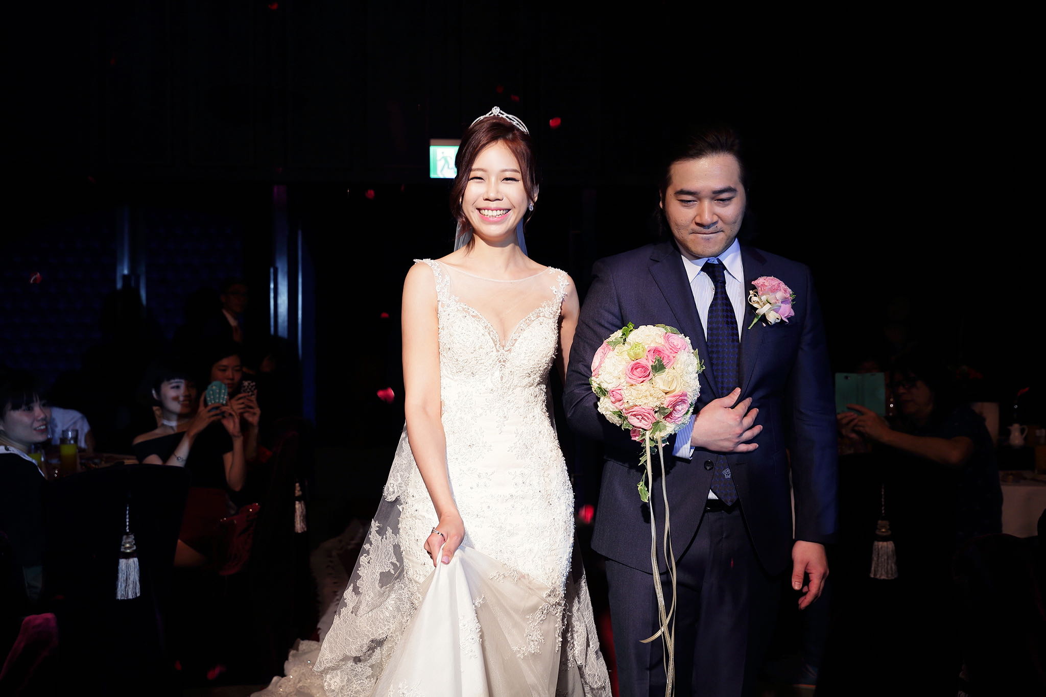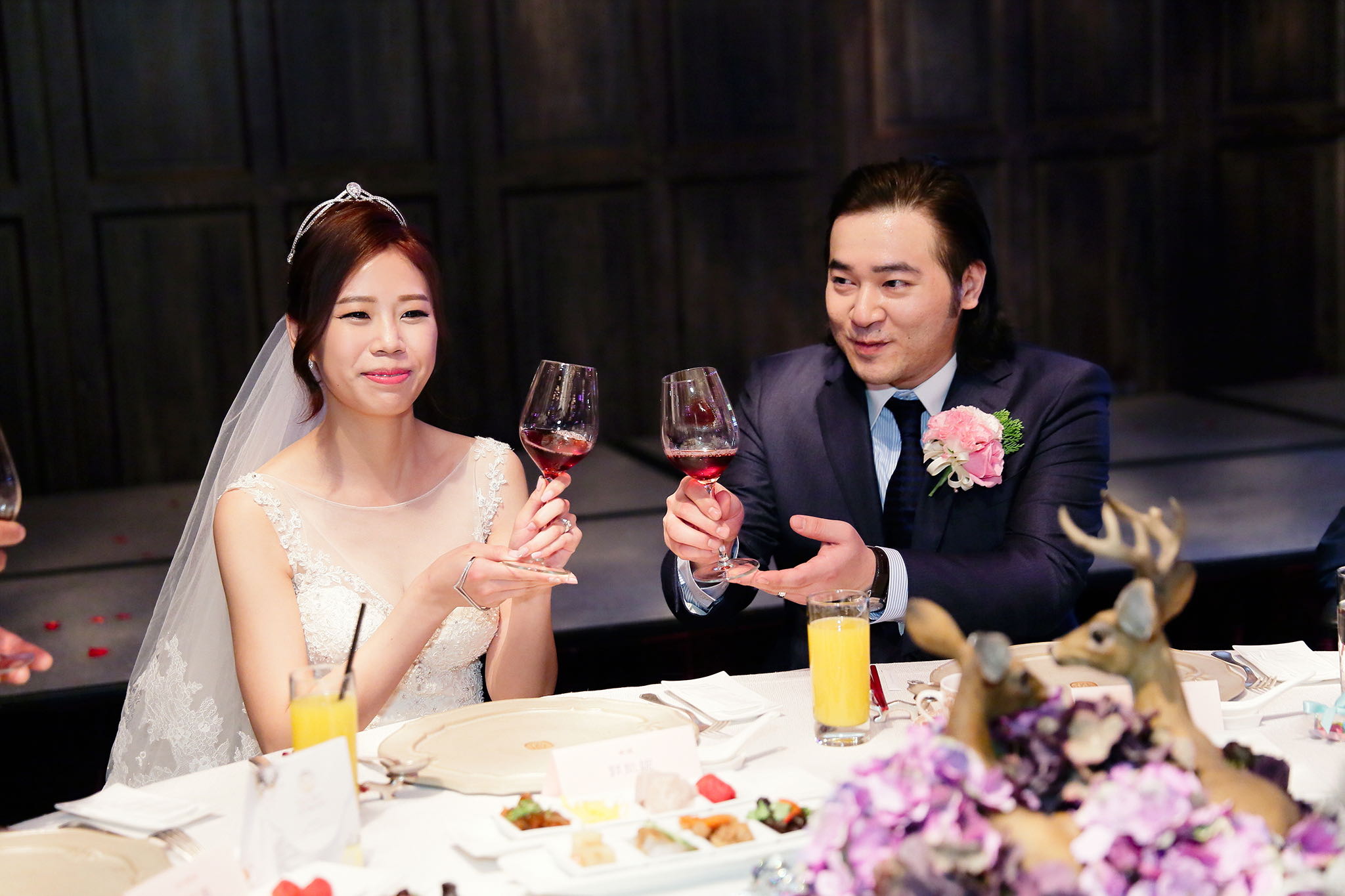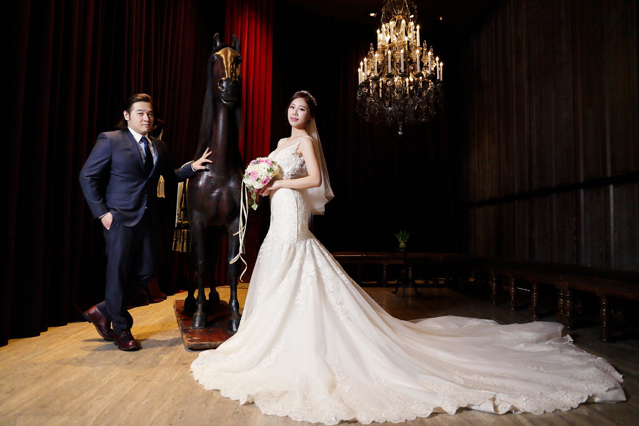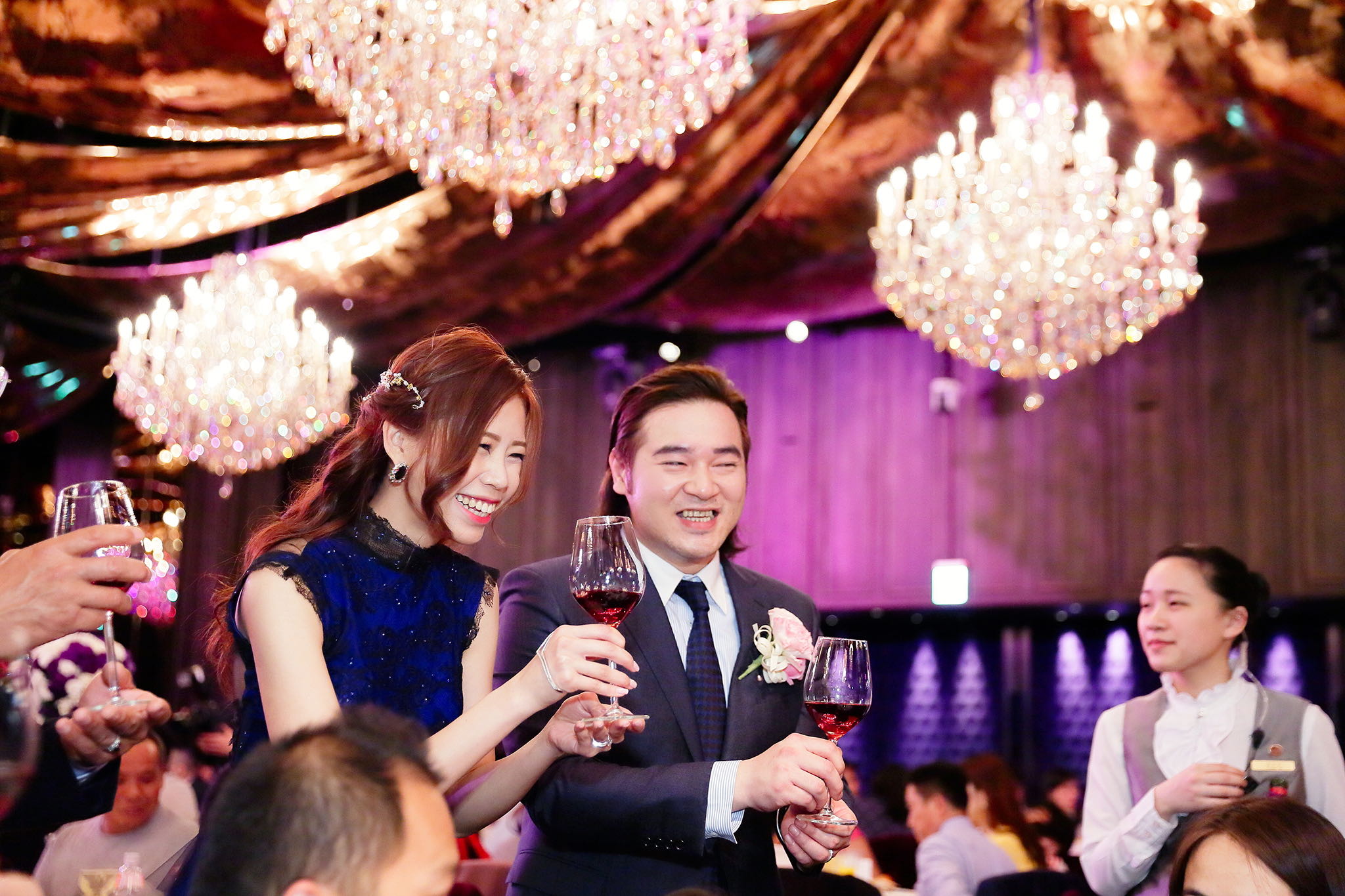 很多新人都會跟我說君品酒店很暗很難拍,但對我而言這裡就是暗的很美,絢麗的吊燈鋪陳出黃金般的高貴,溫潤的木頭擺飾家具與裝潢更襯托不俗的氣質溫暖,一直以來都很喜歡君品給人的感覺,不管是內裝還是服務人員,最貼身的小管家無不細心呵護新人,連工作人員也都照顧到了,拍合照時也會主動幫忙親友拍合照,比較讓攝影師能更專心拍攝,君品不只是一間餐廳,更是一種給人暖心的餐廳