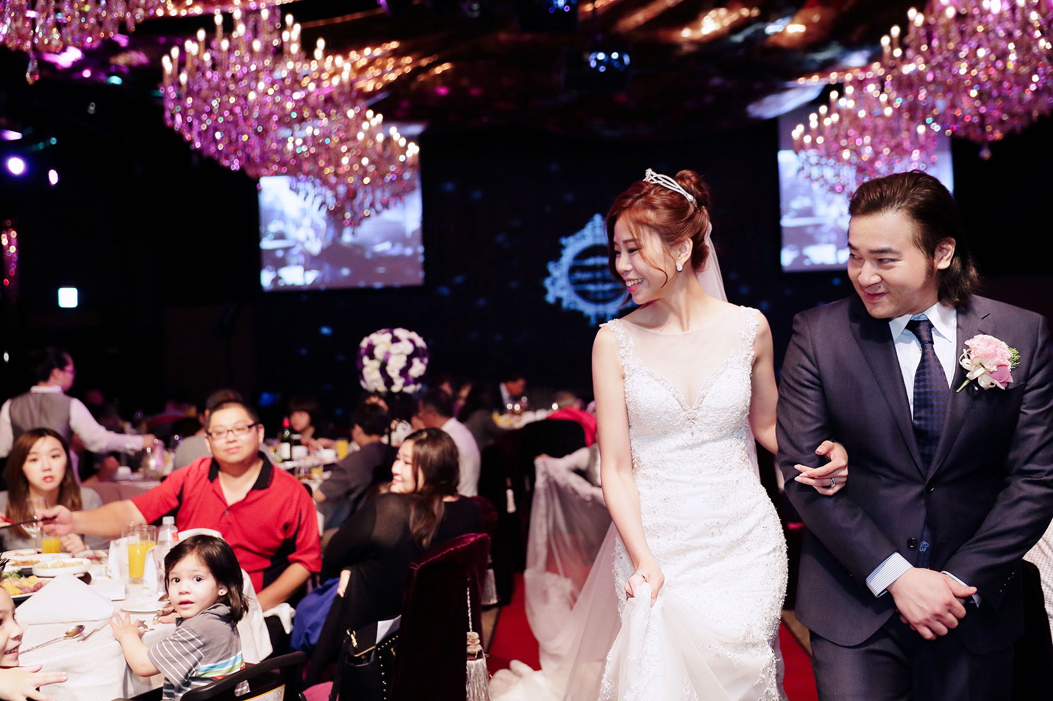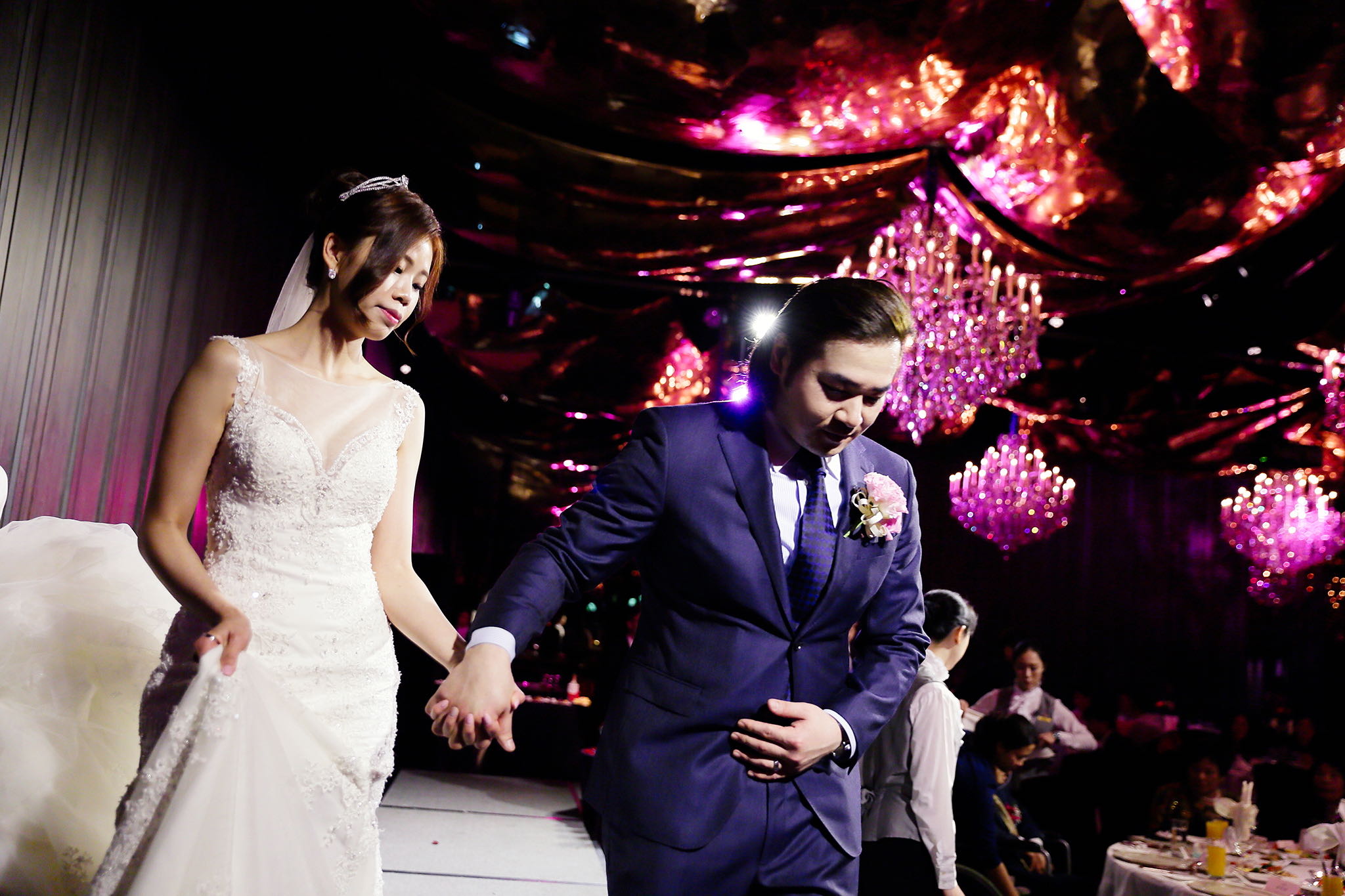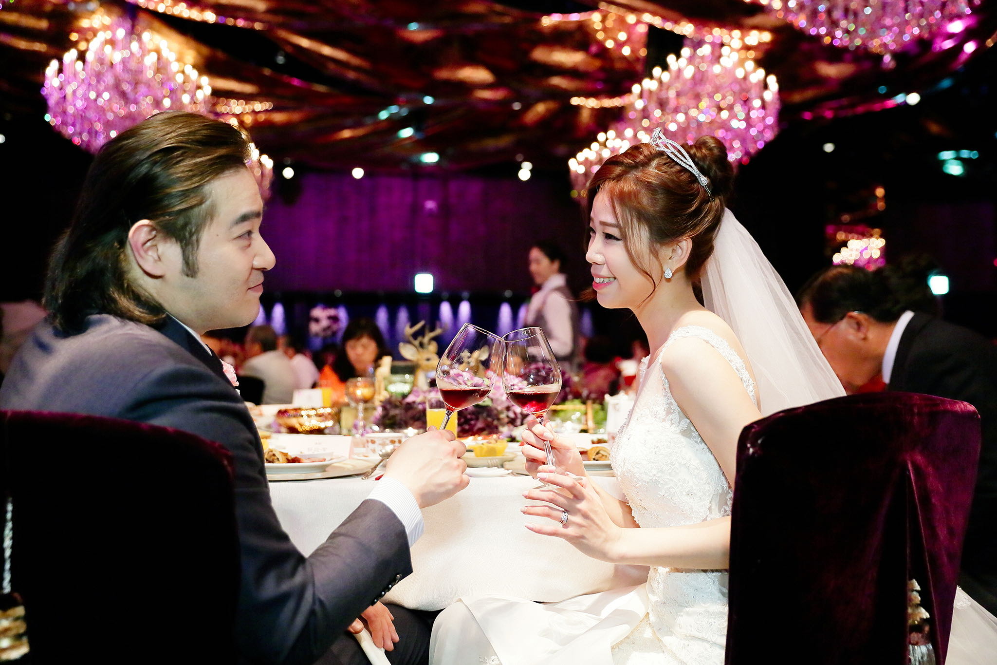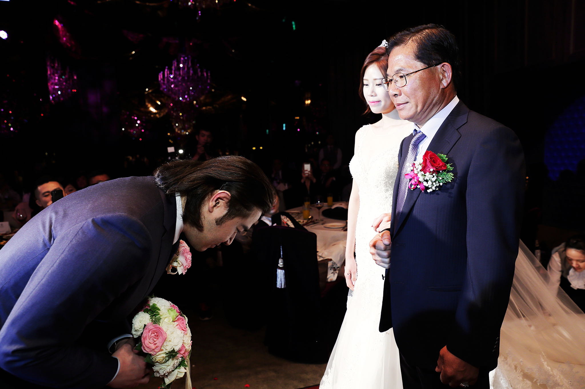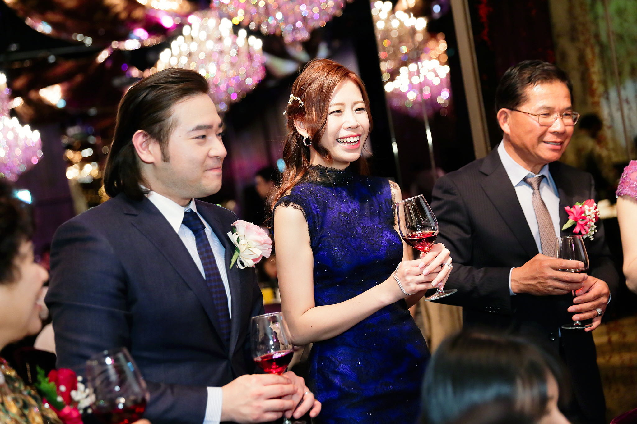 很多新人都會跟我說君品酒店很暗很難拍,但對我而言這裡就是暗的很美,絢麗的吊燈鋪陳出黃金般的高貴,溫潤的木頭擺飾家具與裝潢更襯托不俗的氣質溫暖,一直以來都很喜歡君品給人的感覺,不管是內裝還是服務人員,最貼身的小管家無不細心呵護新人,連工作人員也都照顧到了,拍合照時也會主動幫忙親友拍合照,比較讓攝影師能更專心拍攝,君品不只是一間餐廳,更是一種給人暖心的餐廳