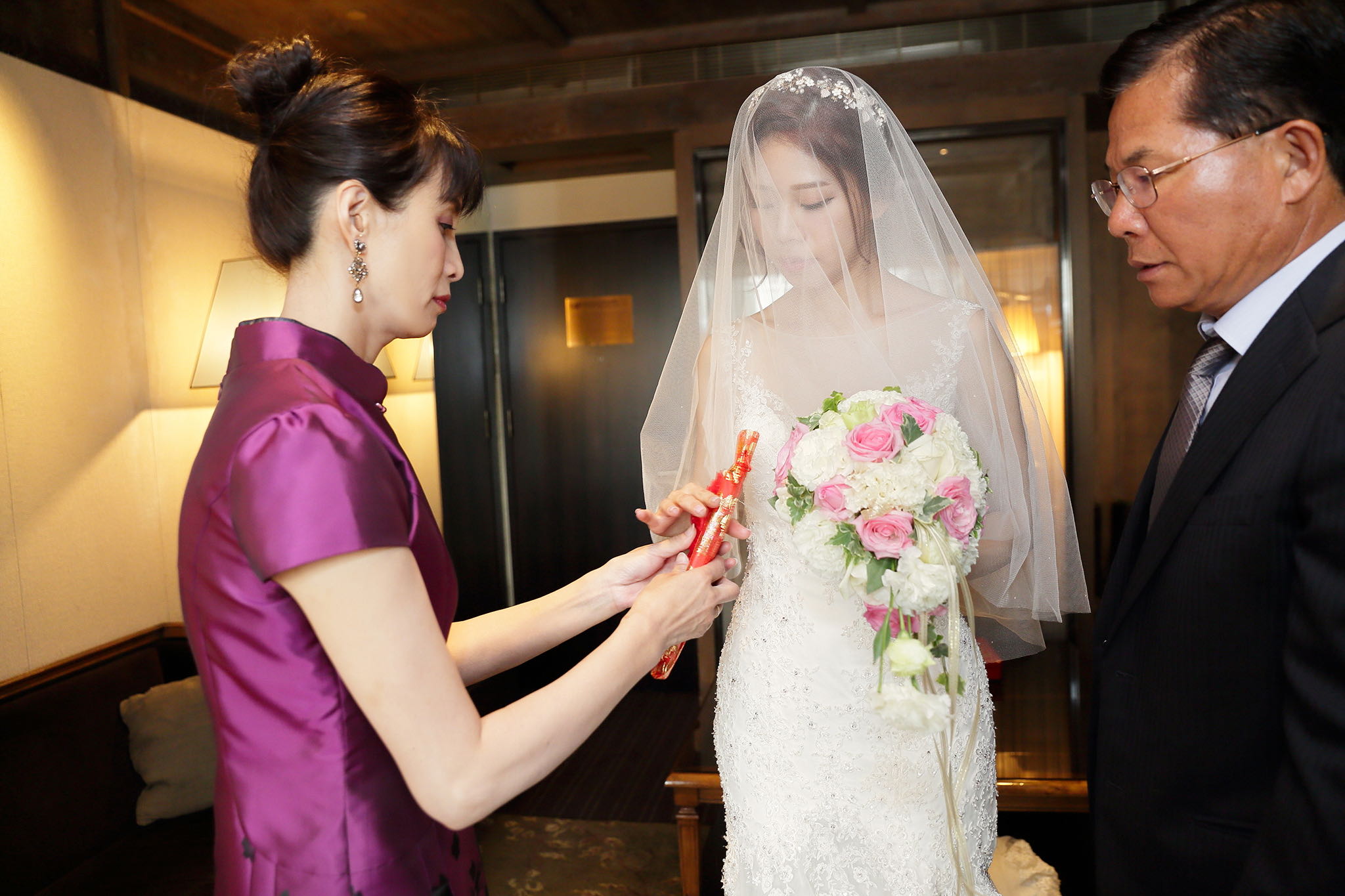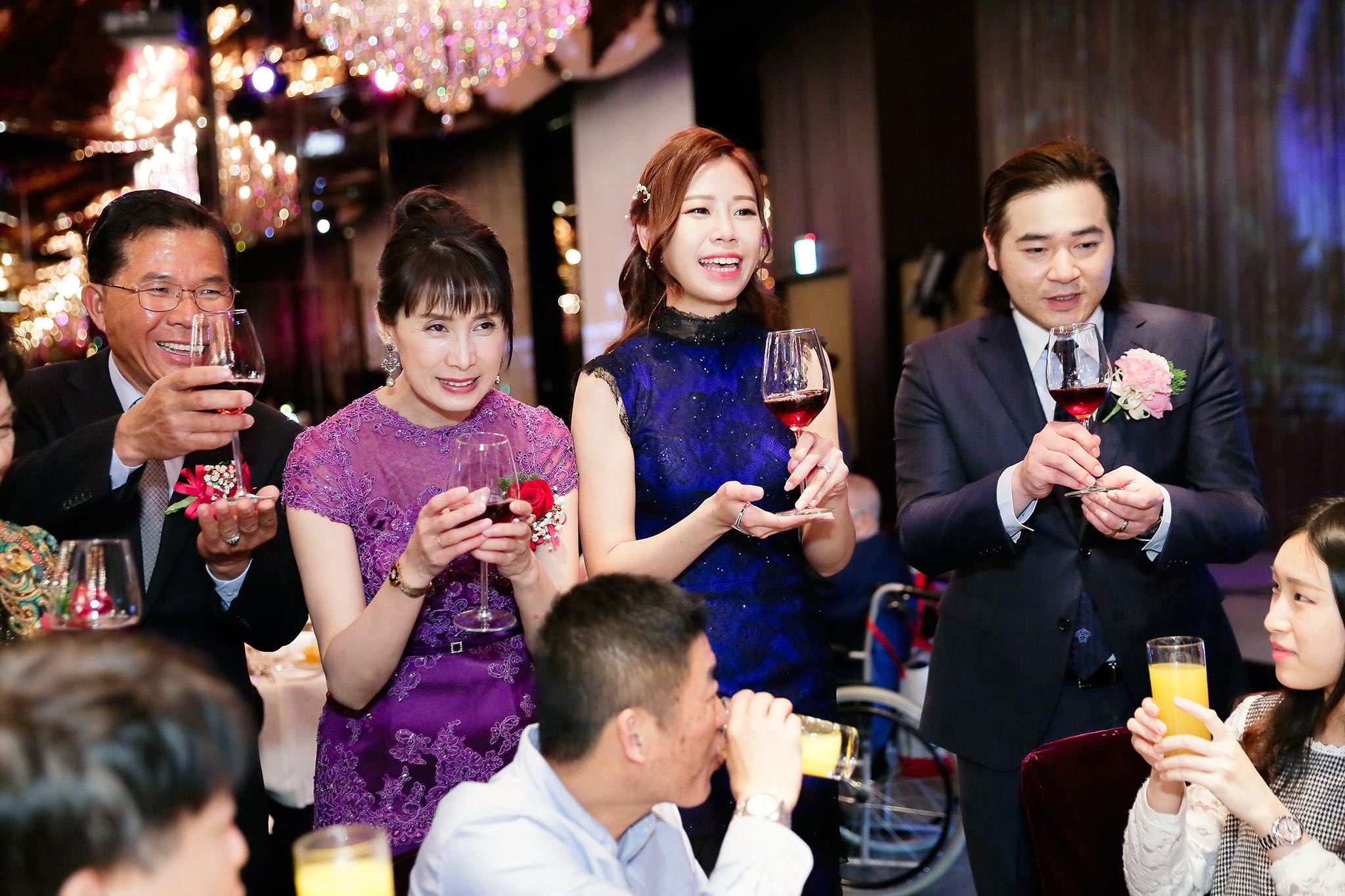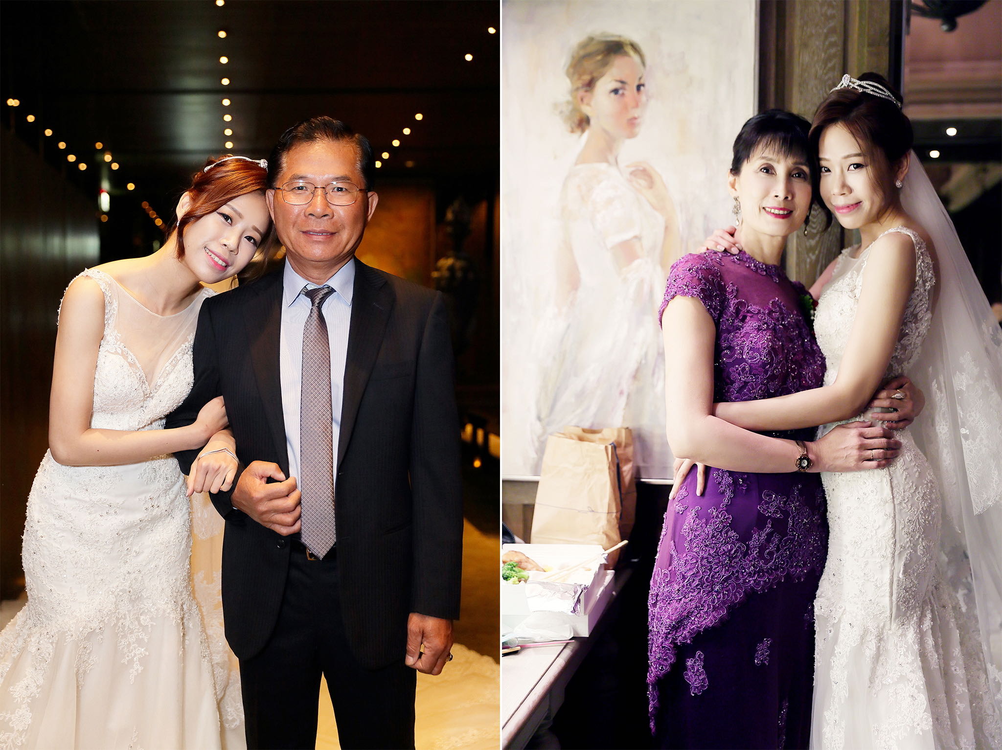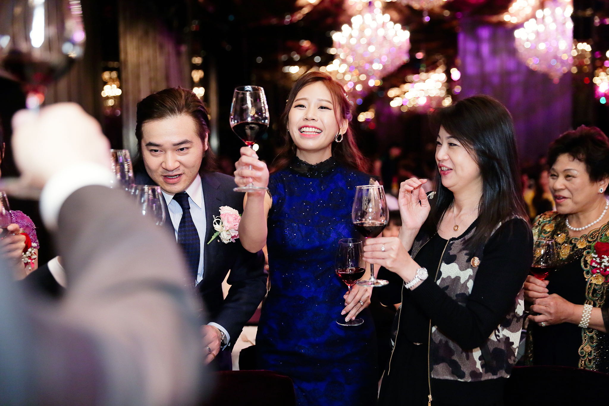 很多新人都會跟我說君品酒店很暗很難拍,但對我而言這裡就是暗的很美,絢麗的吊燈鋪陳出黃金般的高貴,溫潤的木頭擺飾家具與裝潢更襯托不俗的氣質溫暖,一直以來都很喜歡君品給人的感覺,不管是內裝還是服務人員,最貼身的小管家無不細心呵護新人,連工作人員也都照顧到了,拍合照時也會主動幫忙親友拍合照,比較讓攝影師能更專心拍攝,君品不只是一間餐廳,更是一種給人暖心的餐廳