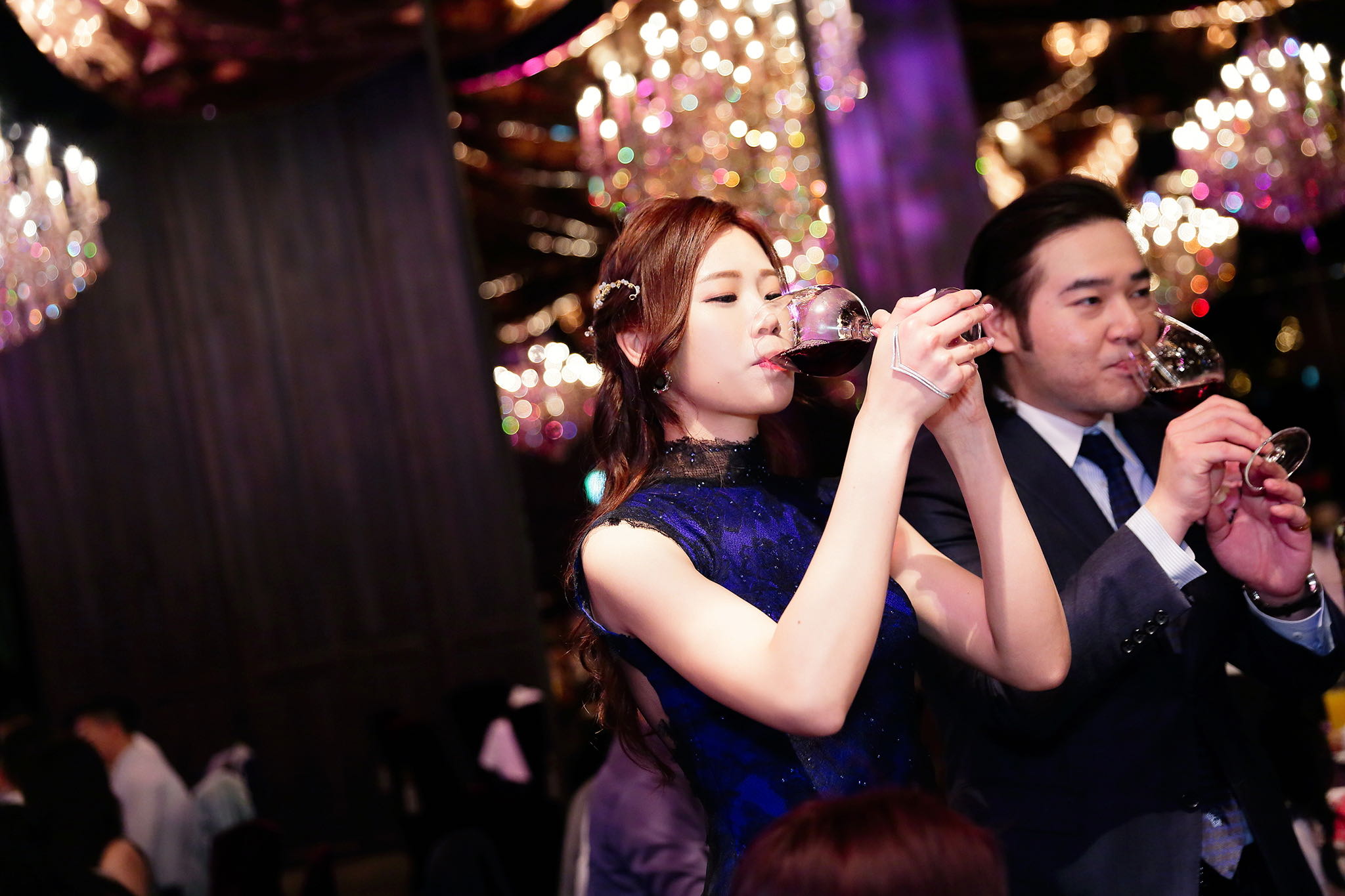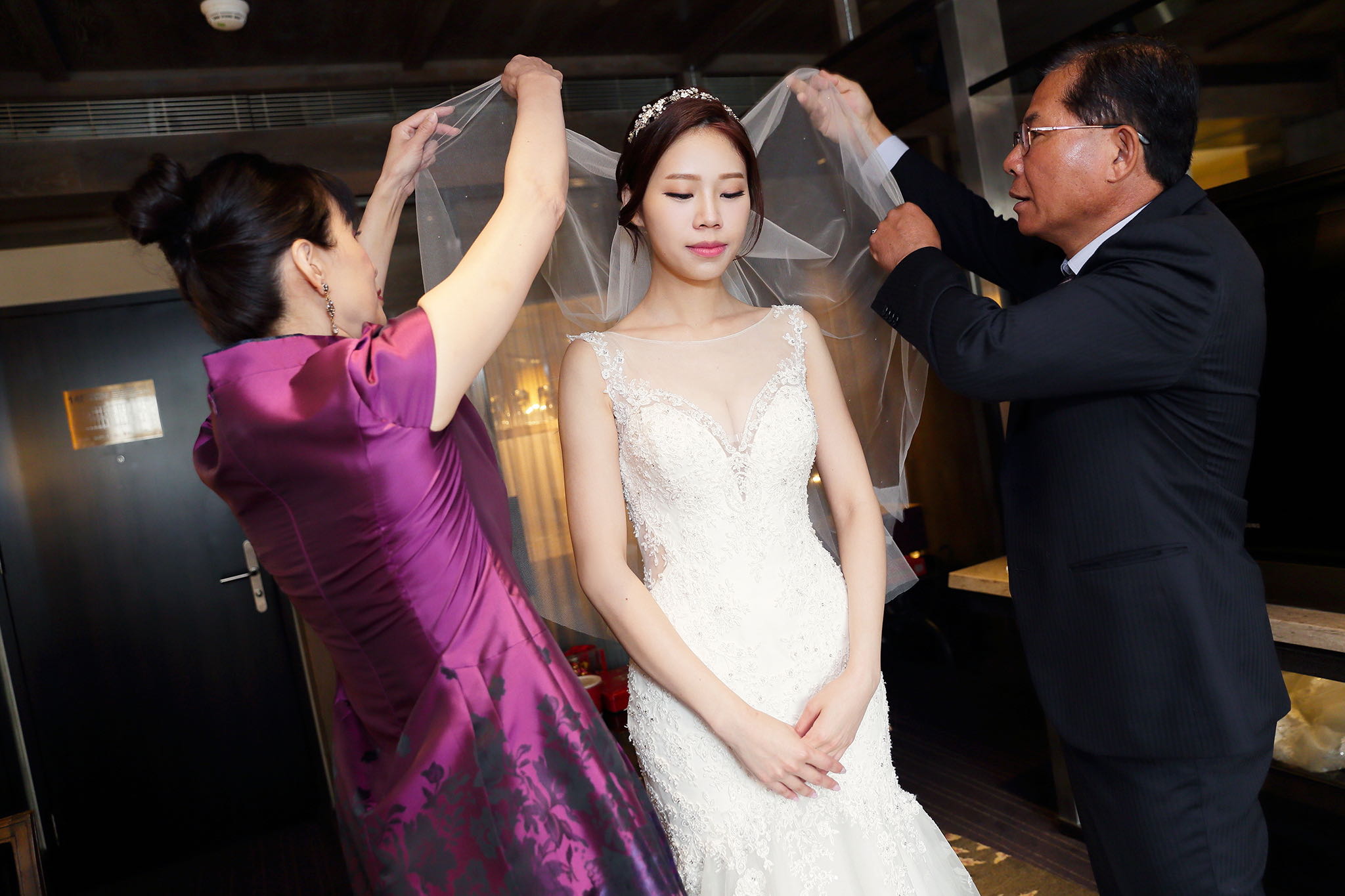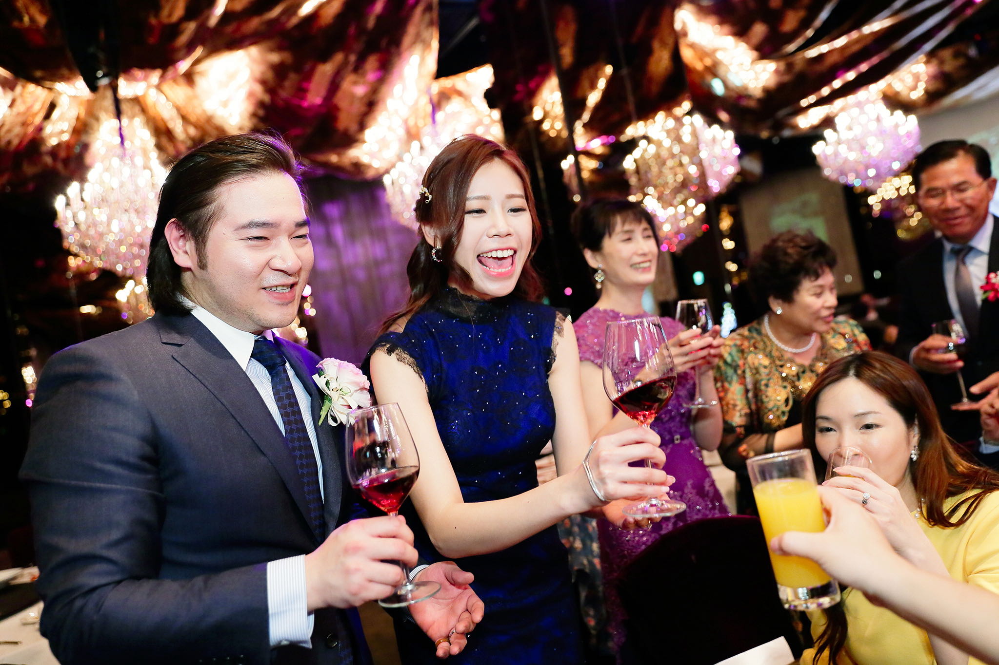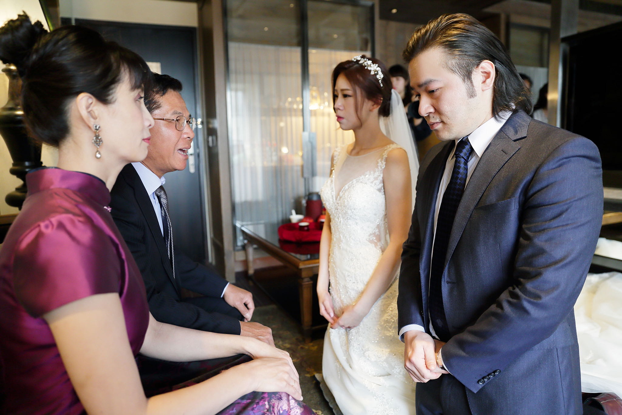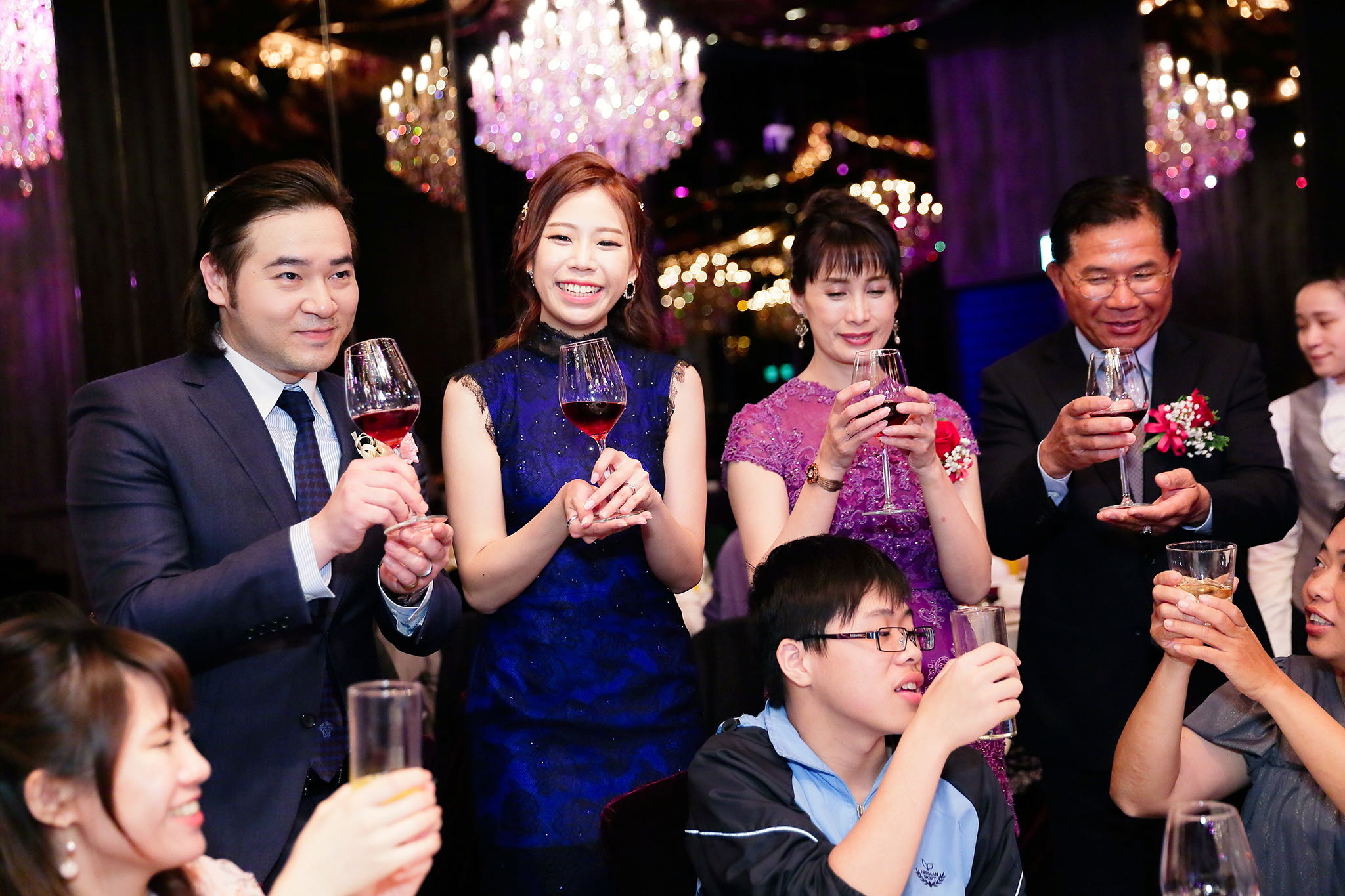 很多新人都會跟我說君品酒店很暗很難拍,但對我而言這裡就是暗的很美,絢麗的吊燈鋪陳出黃金般的高貴,溫潤的木頭擺飾家具與裝潢更襯托不俗的氣質溫暖,一直以來都很喜歡君品給人的感覺,不管是內裝還是服務人員,最貼身的小管家無不細心呵護新人,連工作人員也都照顧到了,拍合照時也會主動幫忙親友拍合照,比較讓攝影師能更專心拍攝,君品不只是一間餐廳,更是一種給人暖心的餐廳