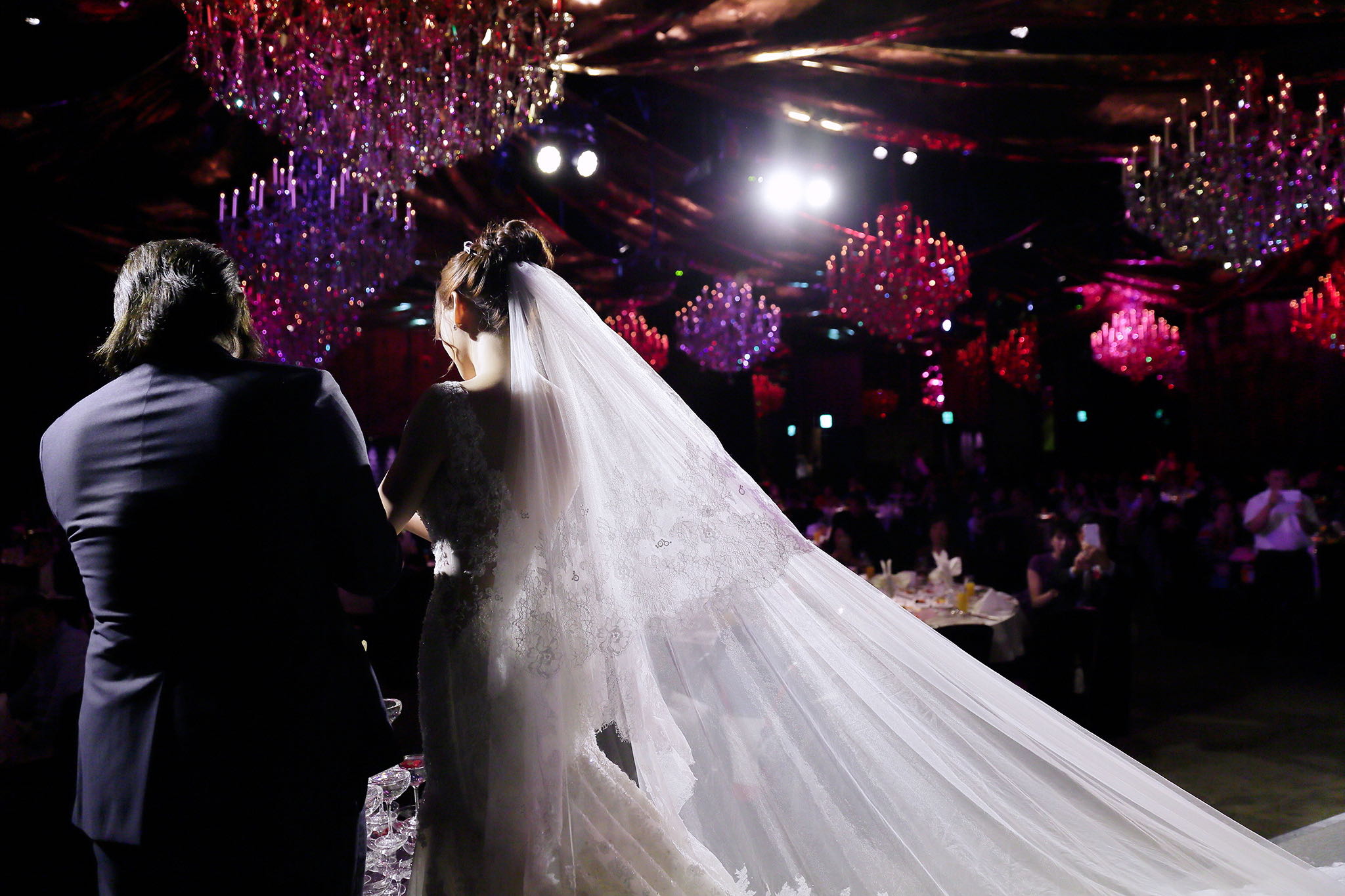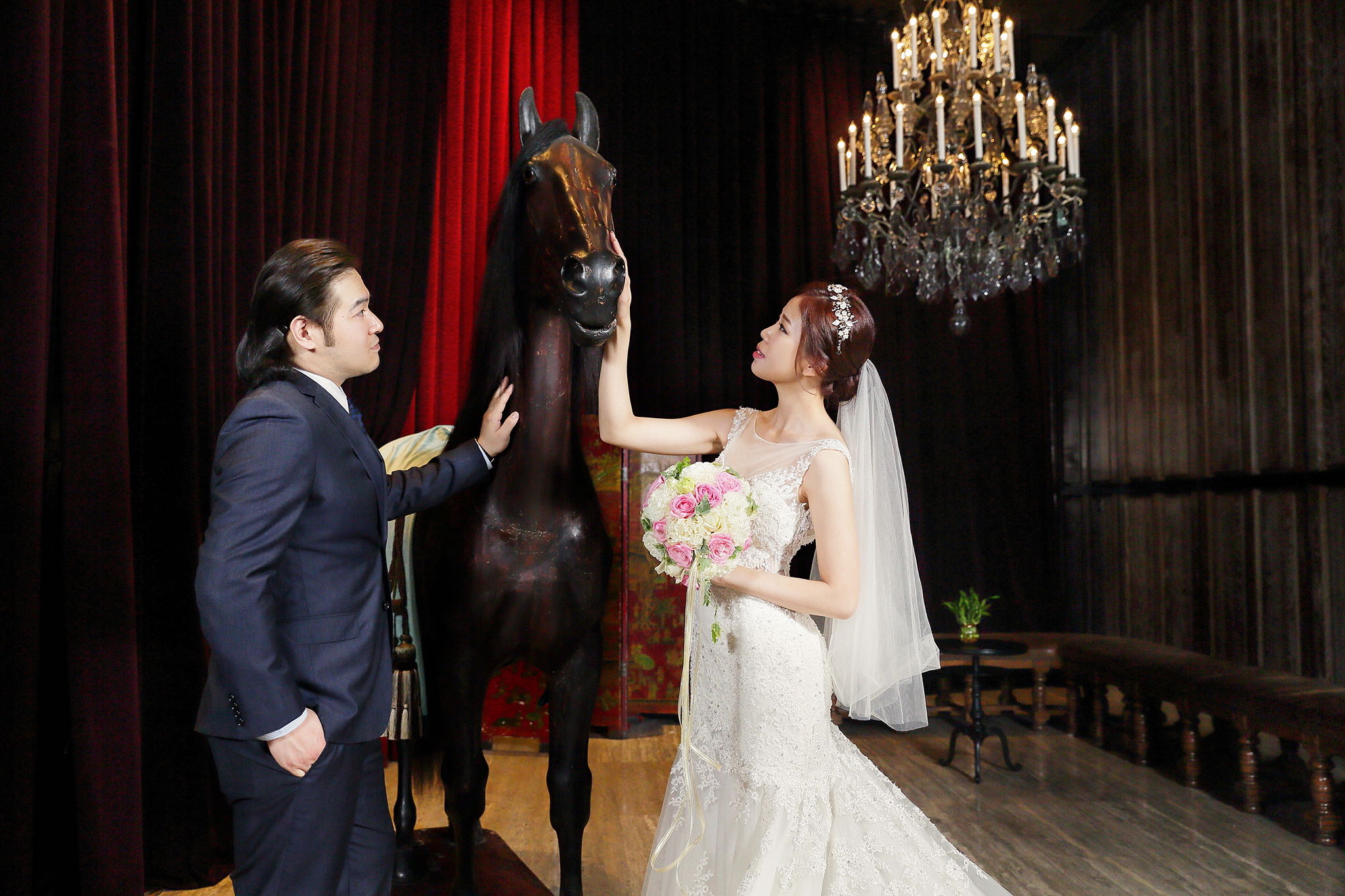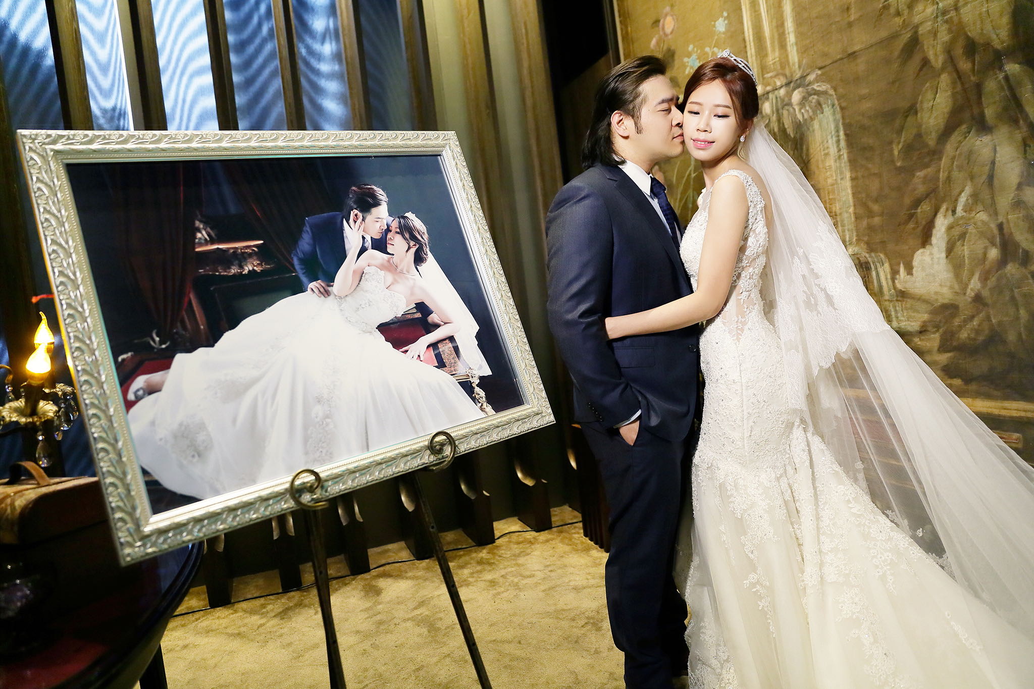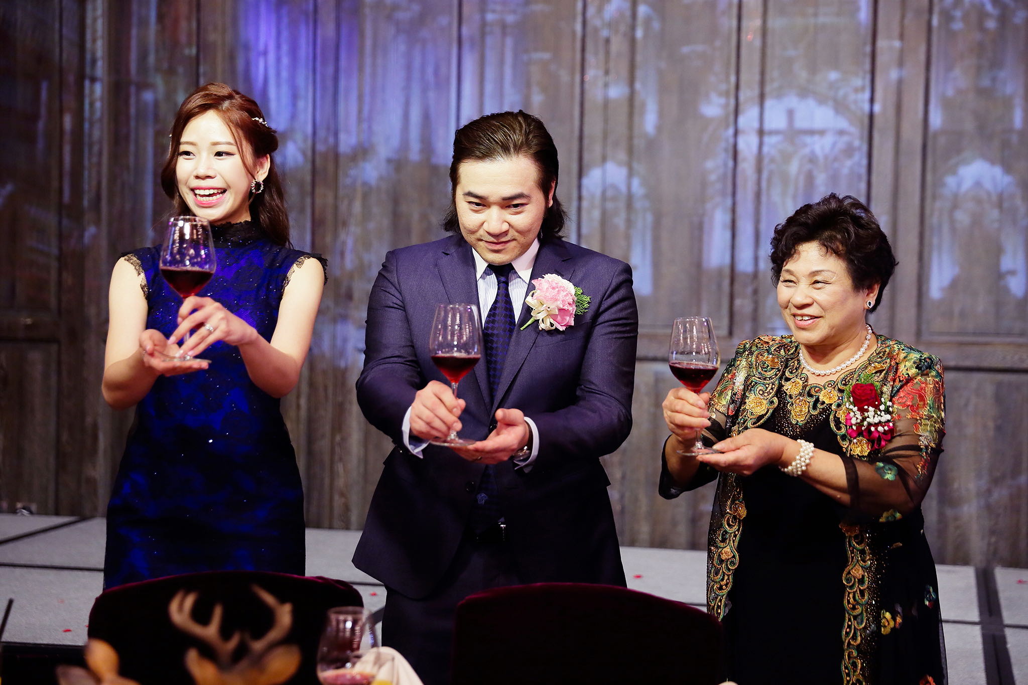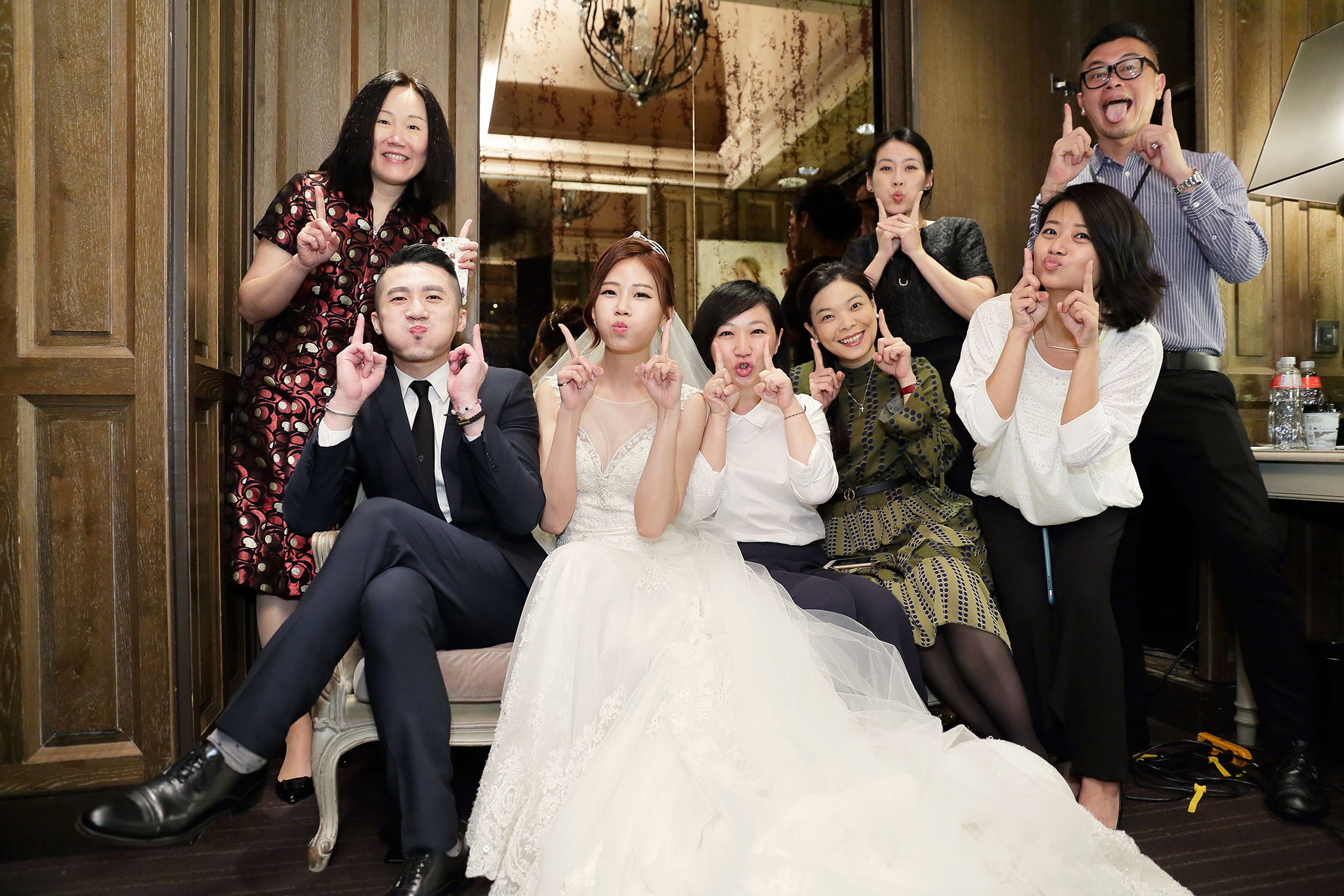 很多新人都會跟我說君品酒店很暗很難拍,但對我而言這裡就是暗的很美,絢麗的吊燈鋪陳出黃金般的高貴,溫潤的木頭擺飾家具與裝潢更襯托不俗的氣質溫暖,一直以來都很喜歡君品給人的感覺,不管是內裝還是服務人員,最貼身的小管家無不細心呵護新人,連工作人員也都照顧到了,拍合照時也會主動幫忙親友拍合照,比較讓攝影師能更專心拍攝,君品不只是一間餐廳,更是一種給人暖心的餐廳