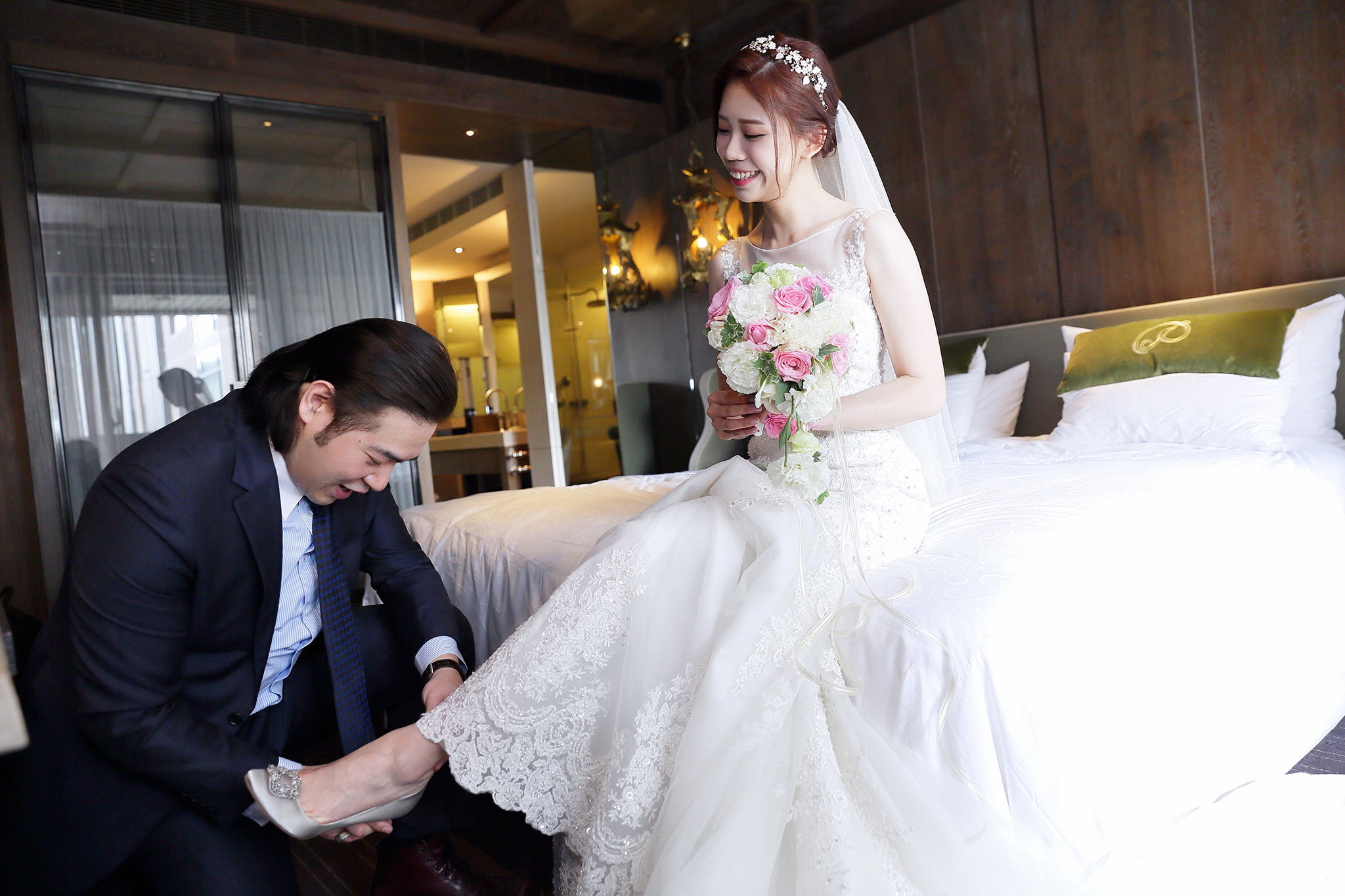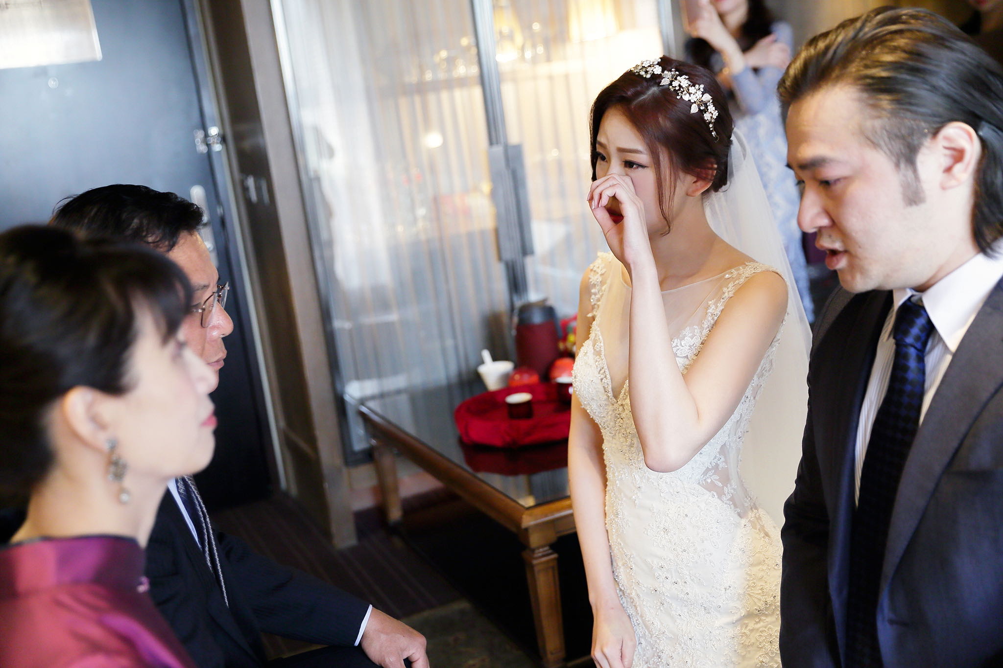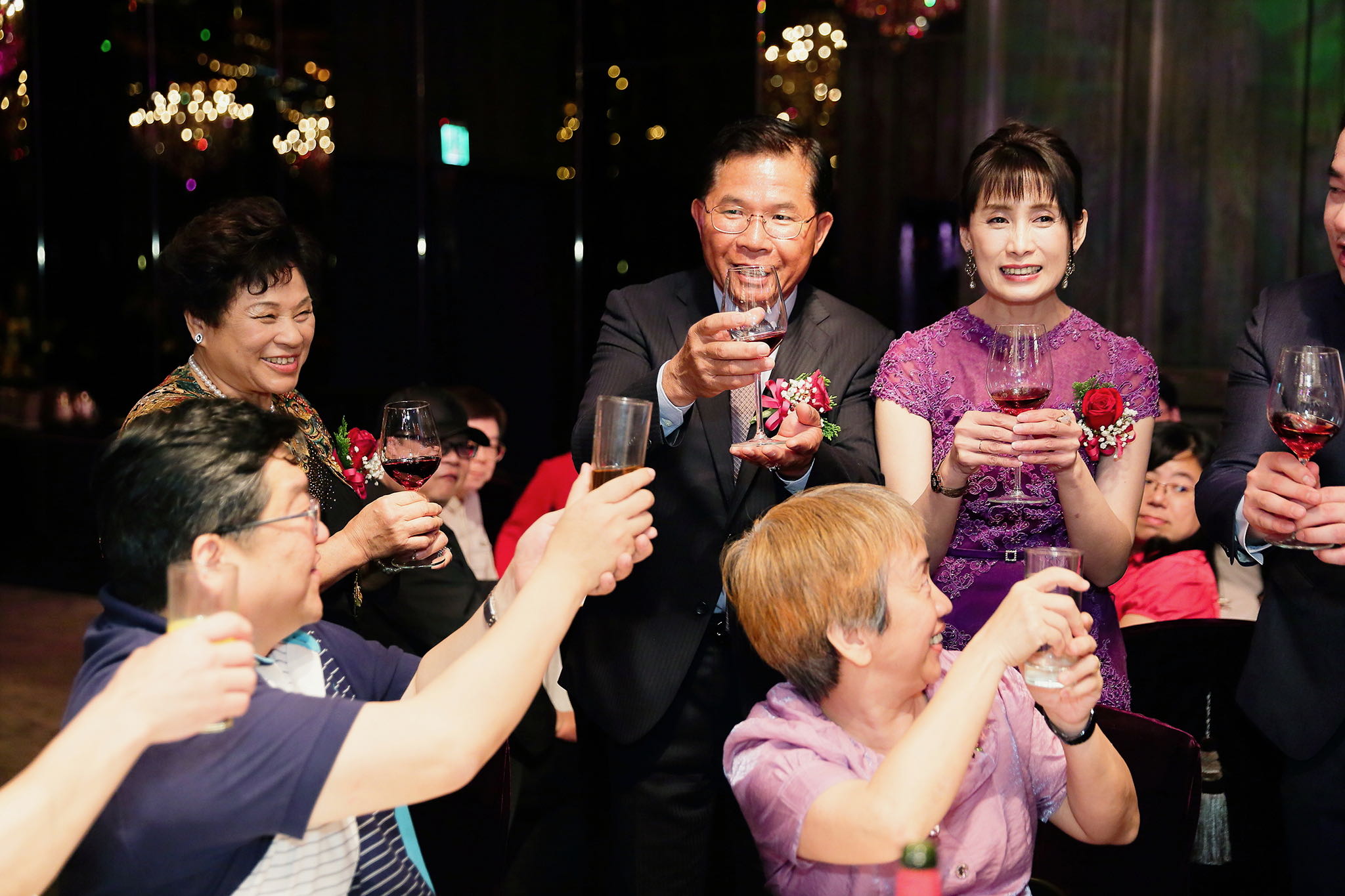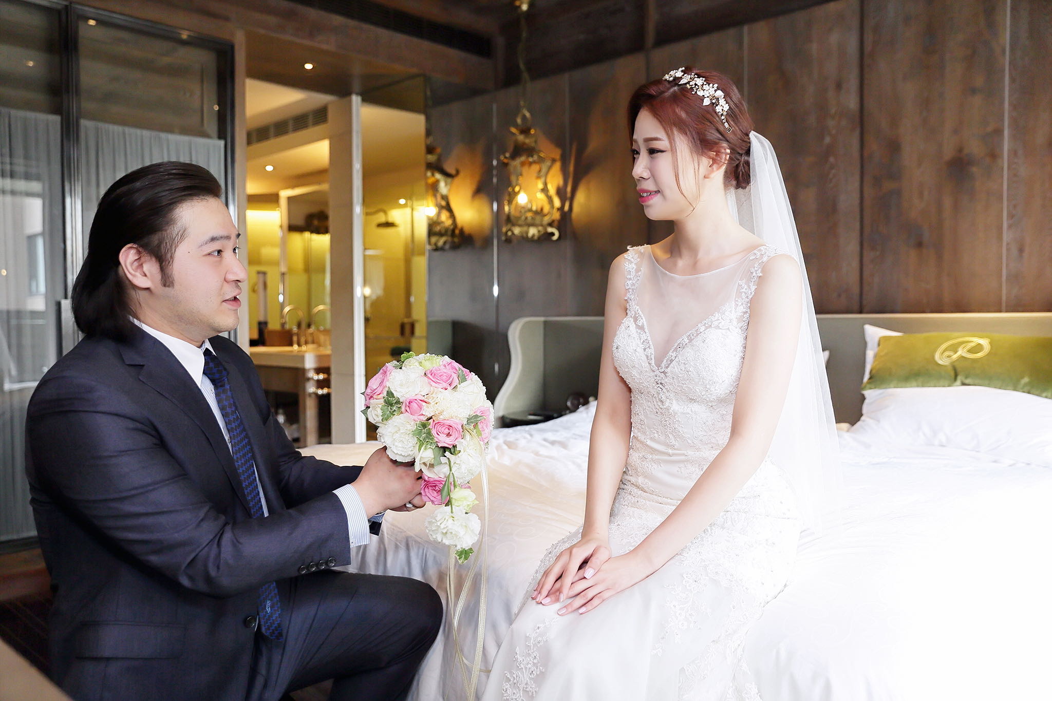 很多新人都會跟我說君品酒店很暗很難拍,但對我而言這裡就是暗的很美,絢麗的吊燈鋪陳出黃金般的高貴,溫潤的木頭擺飾家具與裝潢更襯托不俗的氣質溫暖,一直以來都很喜歡君品給人的感覺,不管是內裝還是服務人員,最貼身的小管家無不細心呵護新人,連工作人員也都照顧到了,拍合照時也會主動幫忙親友拍合照,比較讓攝影師能更專心拍攝,君品不只是一間餐廳,更是一種給人暖心的餐廳