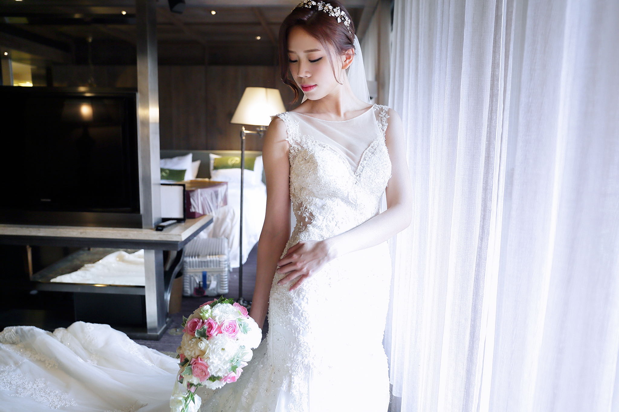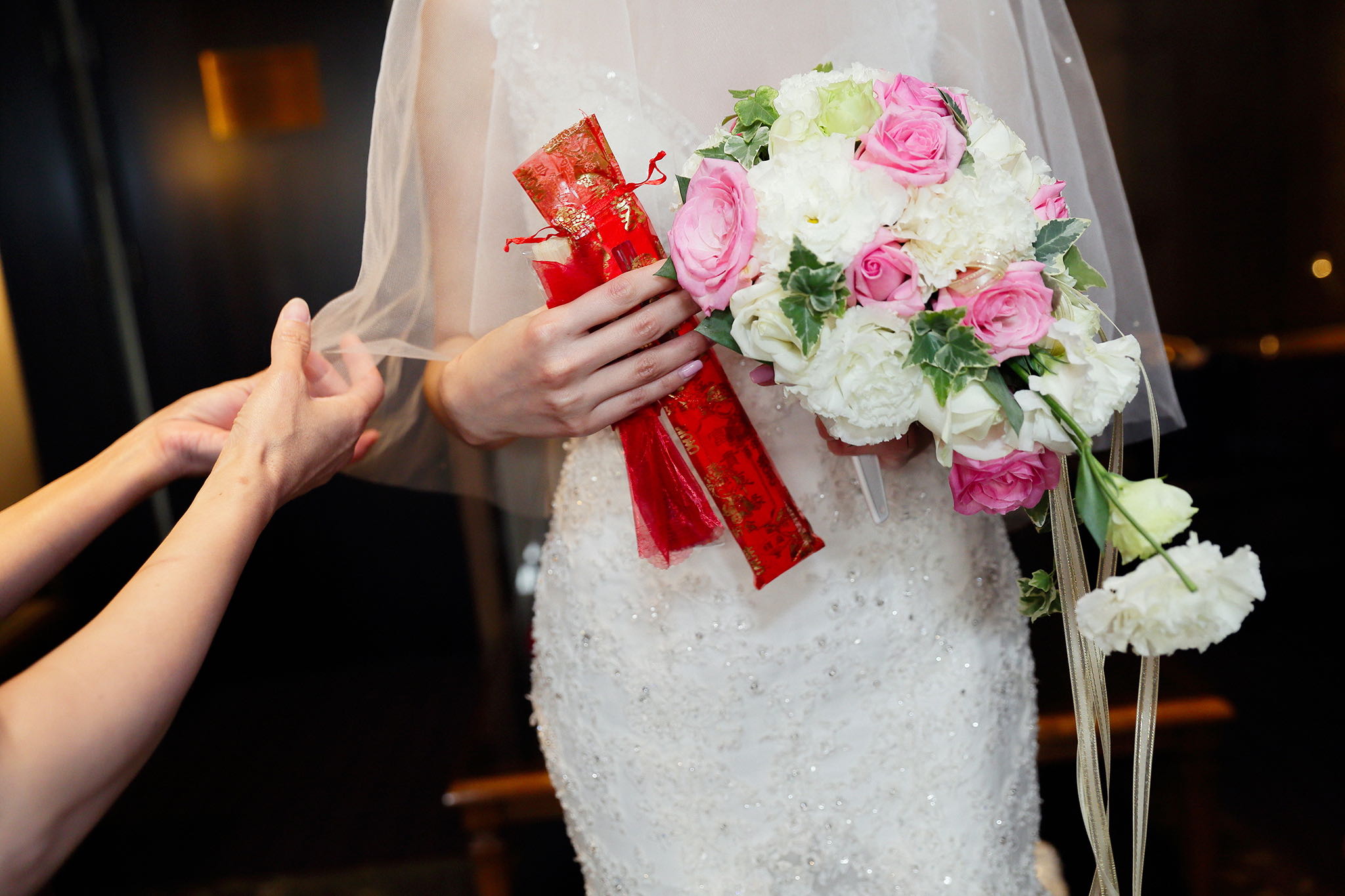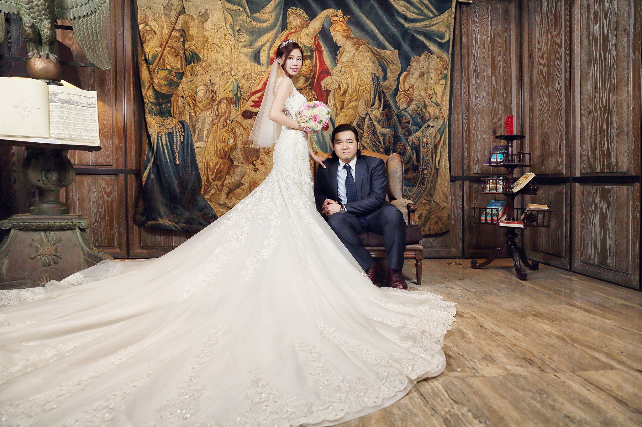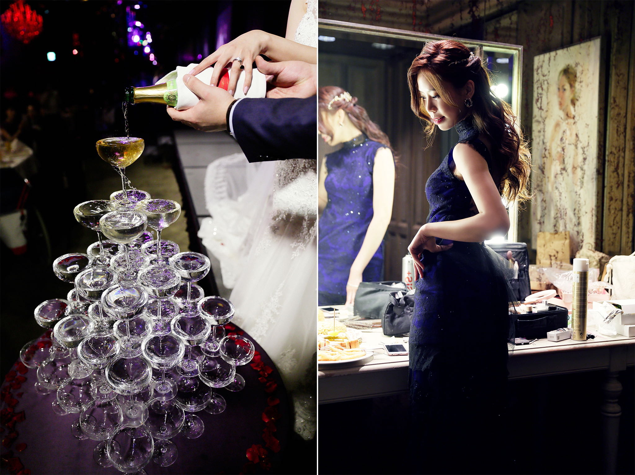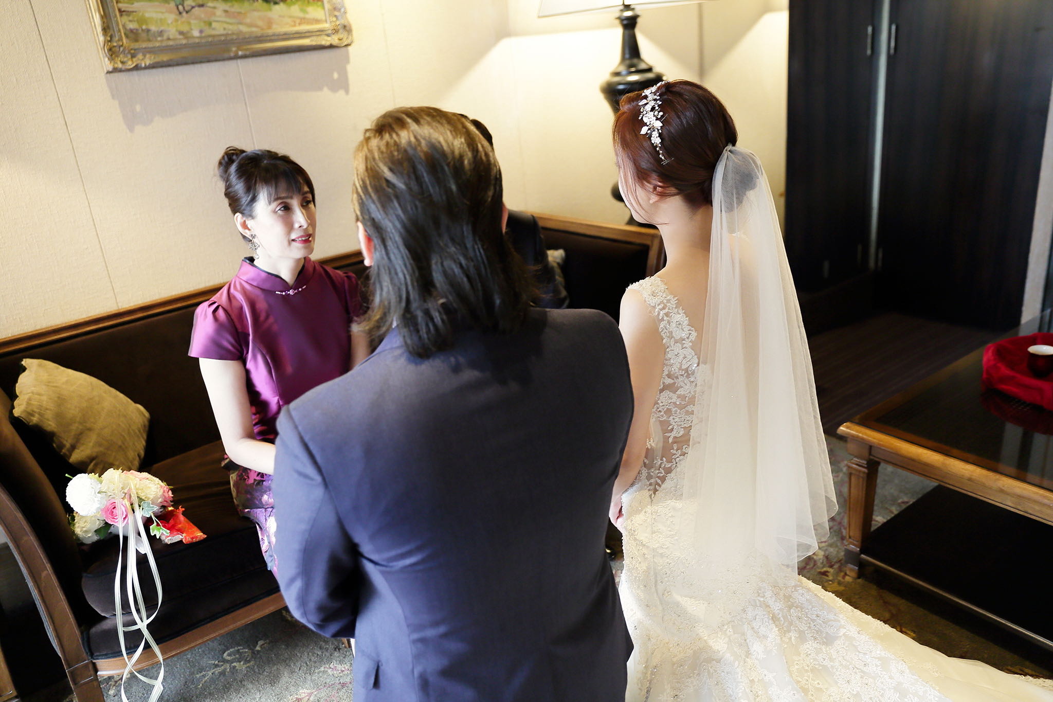 很多新人都會跟我說君品酒店很暗很難拍,但對我而言這裡就是暗的很美,絢麗的吊燈鋪陳出黃金般的高貴,溫潤的木頭擺飾家具與裝潢更襯托不俗的氣質溫暖,一直以來都很喜歡君品給人的感覺,不管是內裝還是服務人員,最貼身的小管家無不細心呵護新人,連工作人員也都照顧到了,拍合照時也會主動幫忙親友拍合照,比較讓攝影師能更專心拍攝,君品不只是一間餐廳,更是一種給人暖心的餐廳