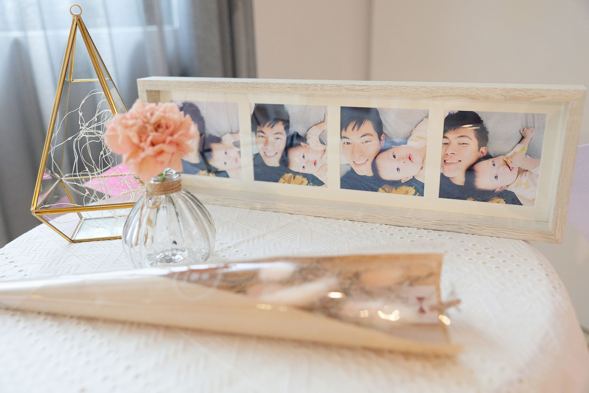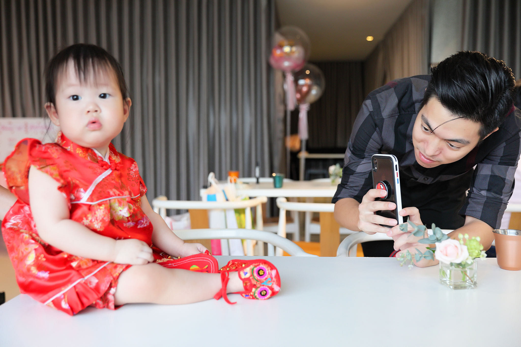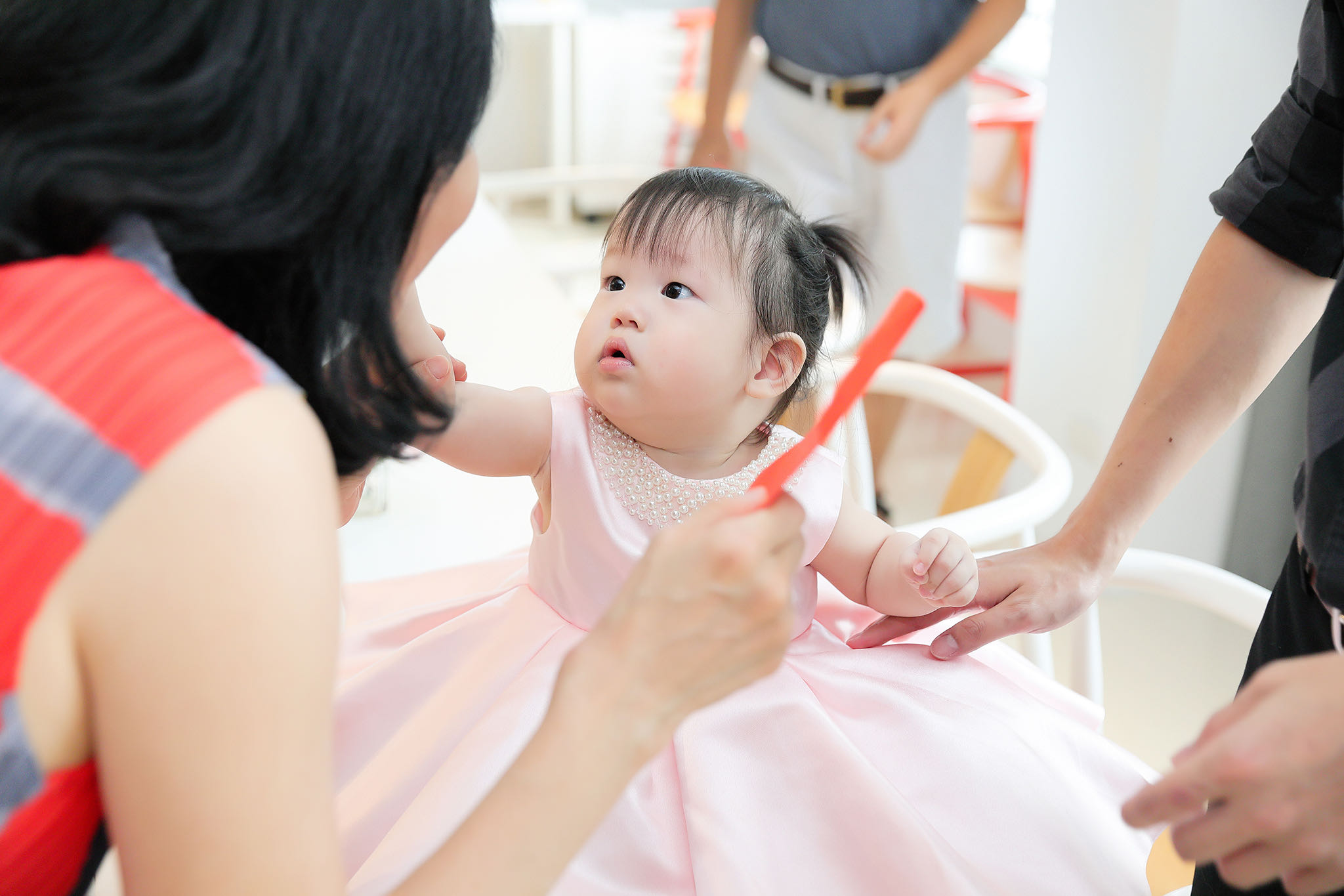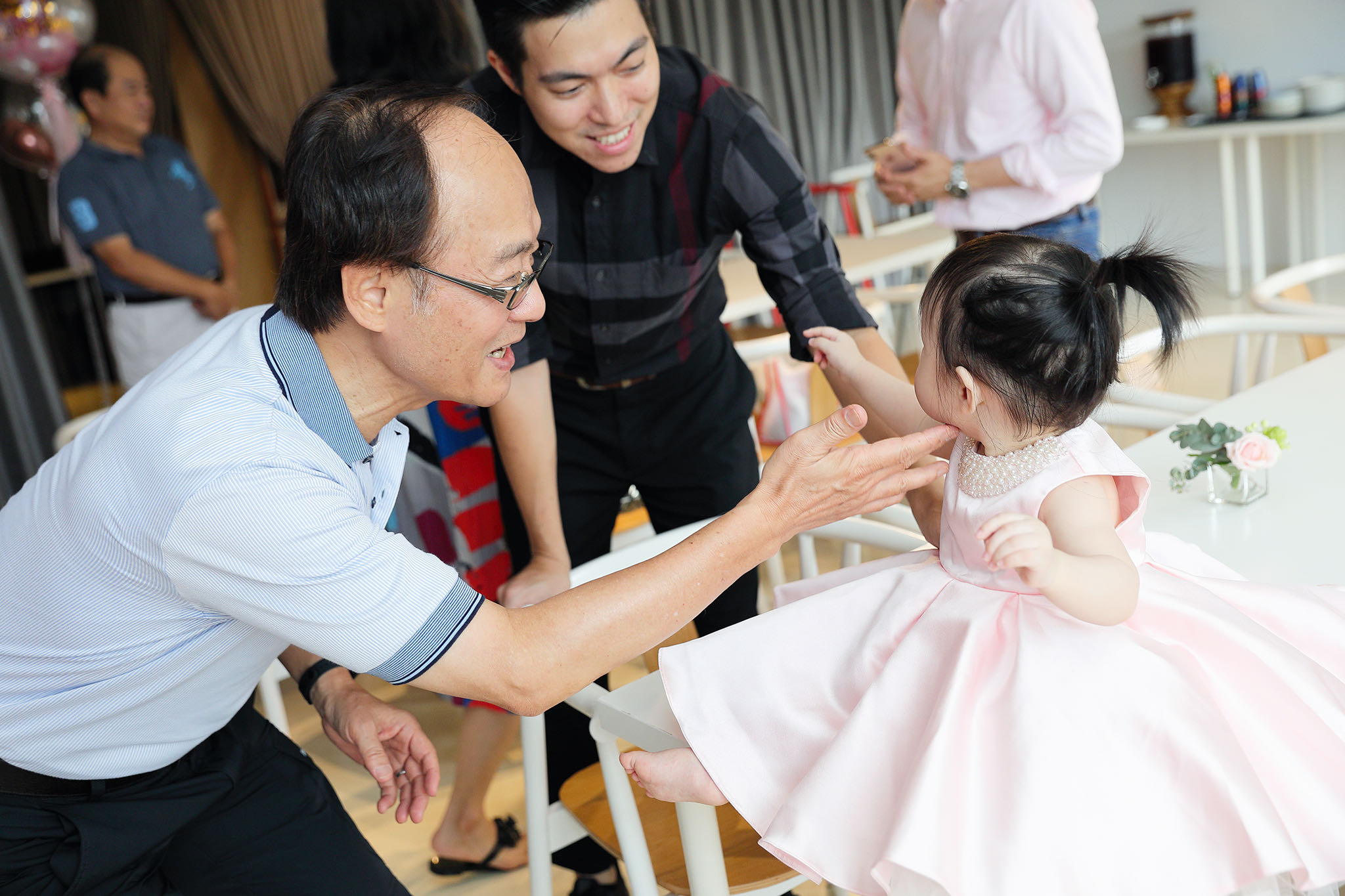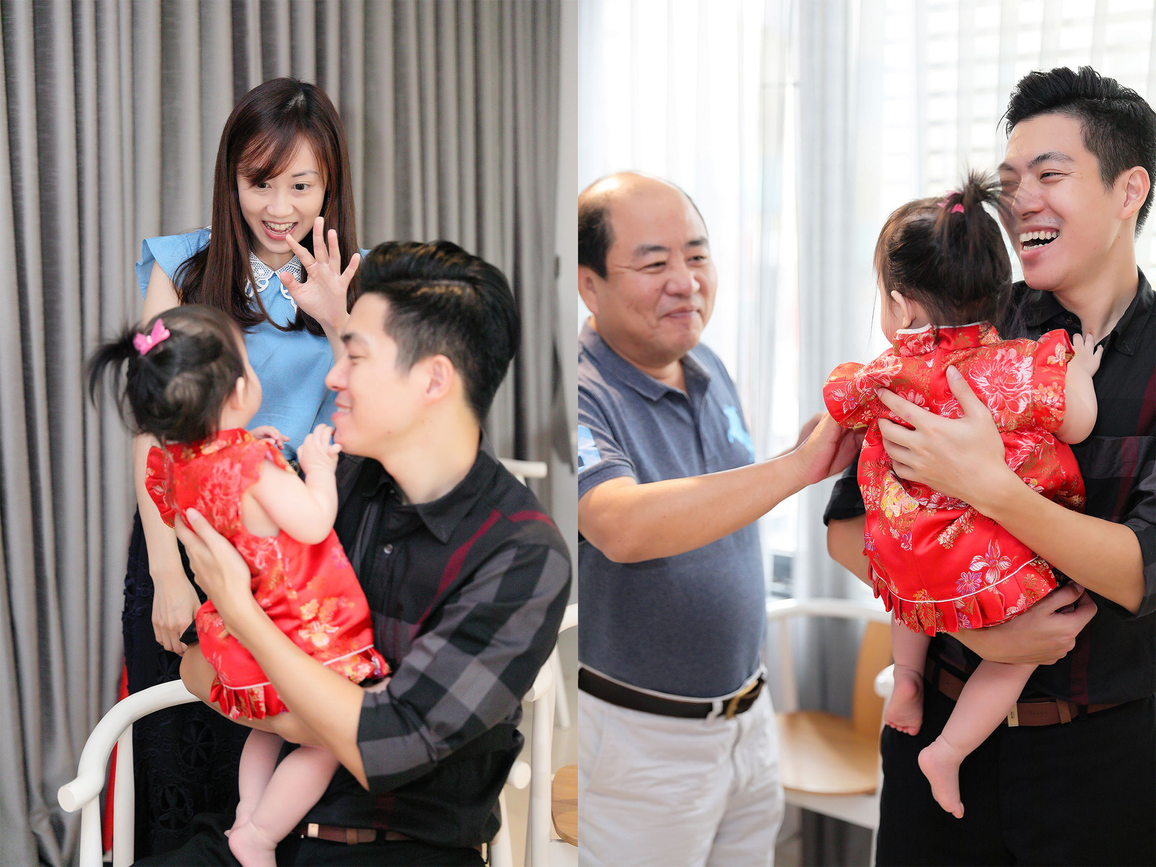 客人在洽詢時,連作品都沒看就直接秒定了,讓我不禁好奇起來,一問之下才得知,原來他們在籌備婚禮時發現了我,但當時已經下定其他的攝影師,已為時已晚,後來就在他們的心中萌芽一個想法:以後如果有拍攝的機會,一定要交給我拍攝。得知我有檔期之下,直接秒定,更說:婚禮拍的好的,抓周記錄只是piece of cake。