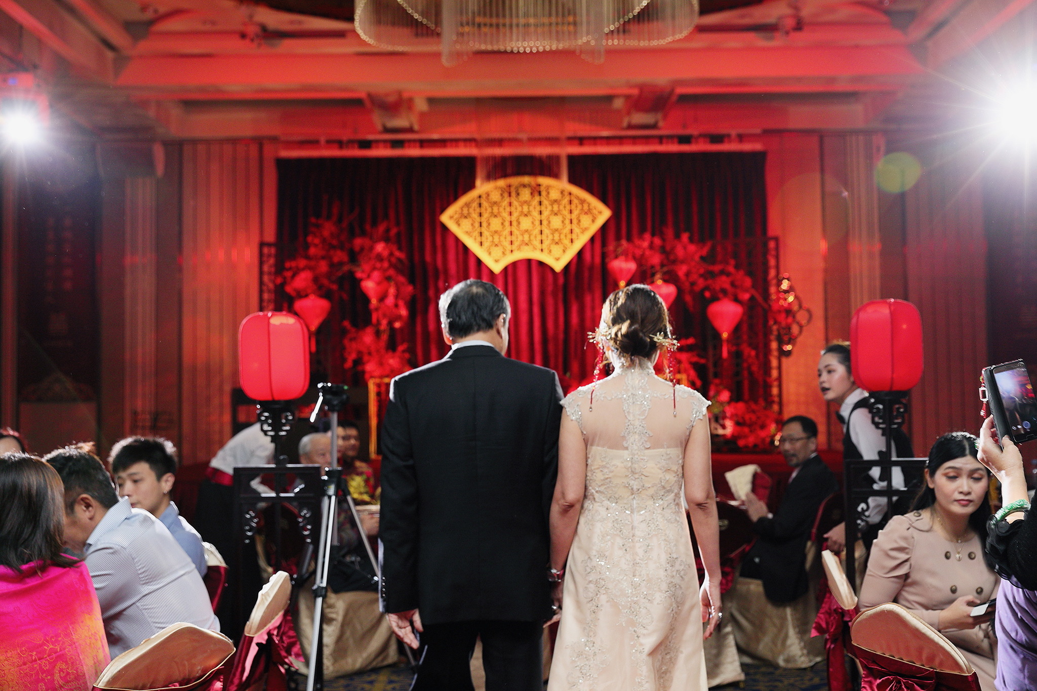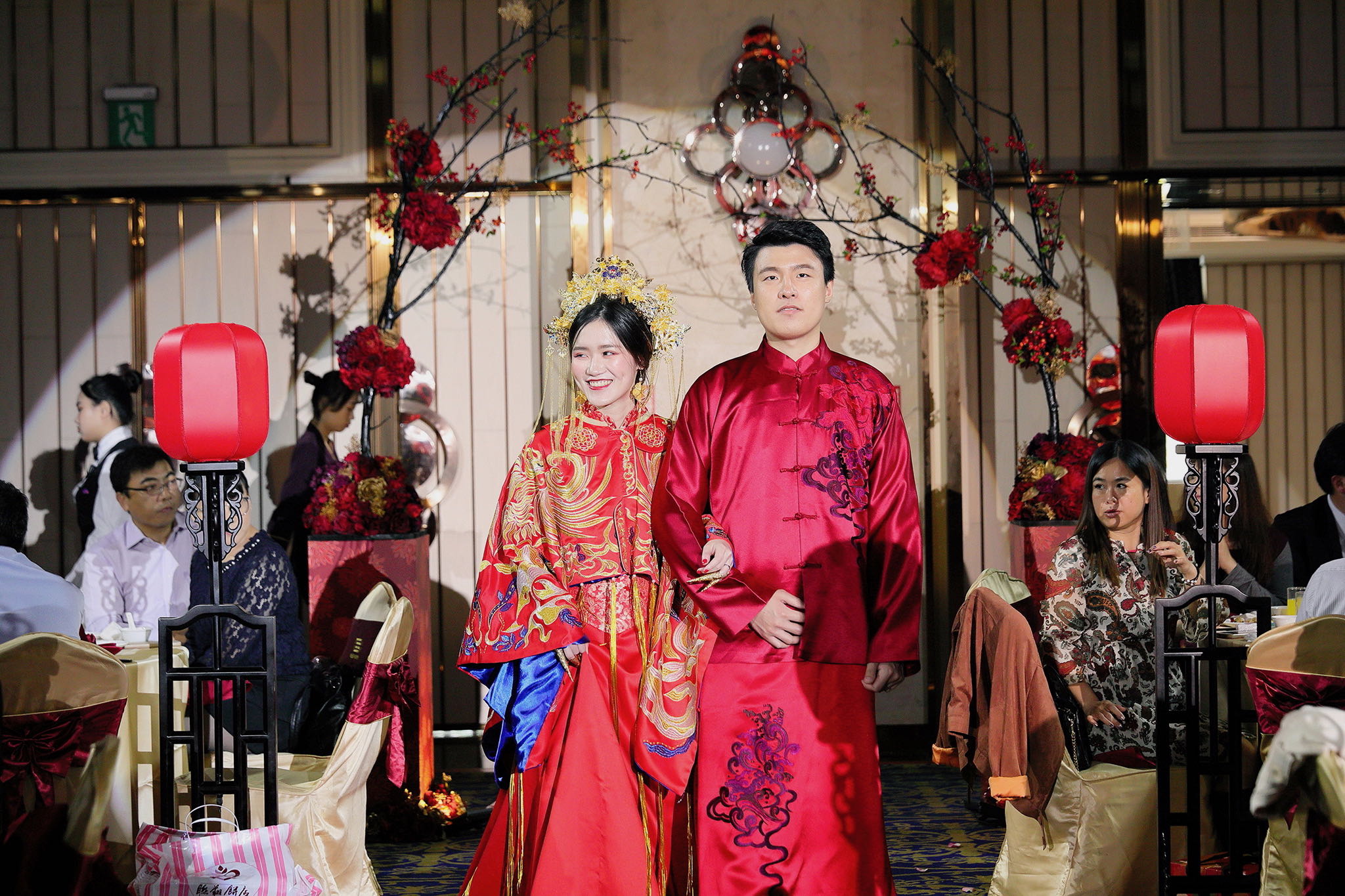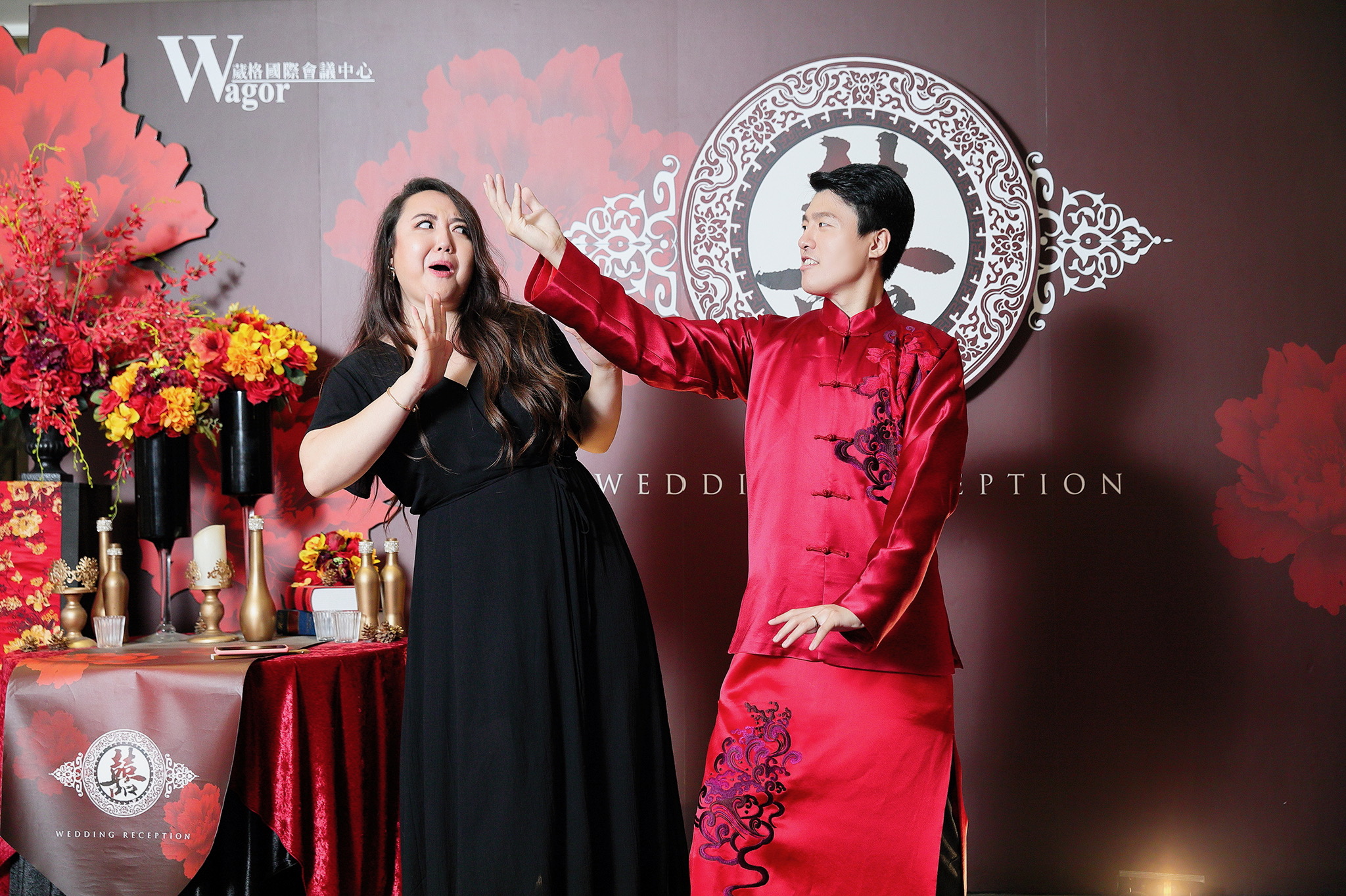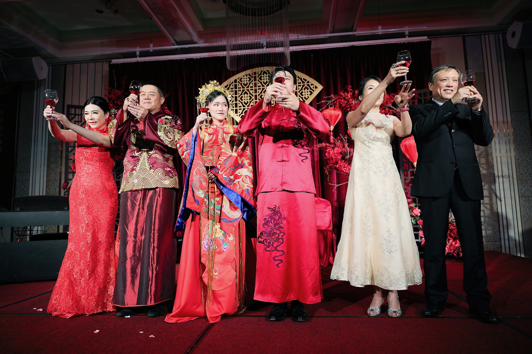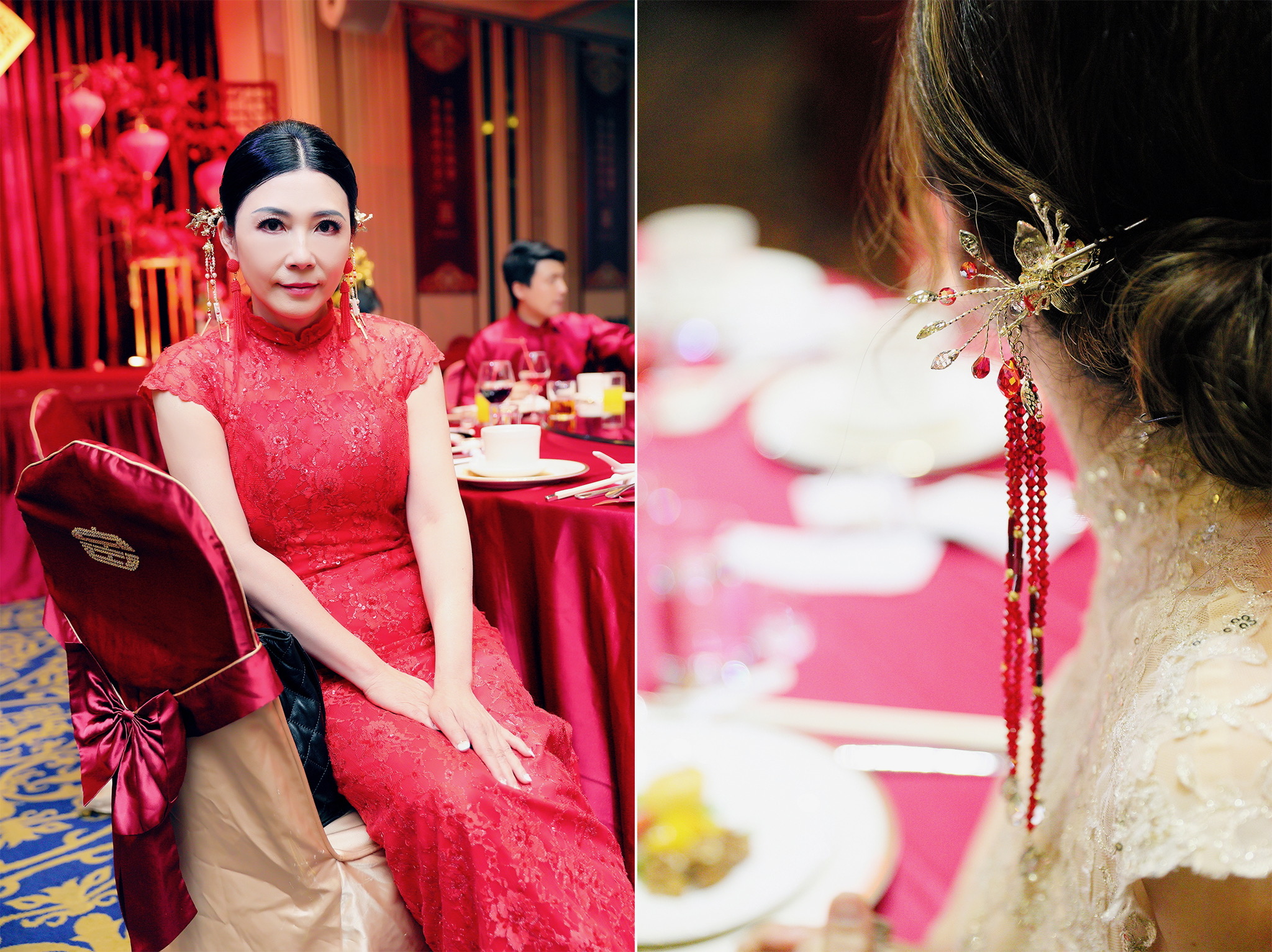 這場婚禮是由新娘的媽咪跟我洽詢的,因緣際會看了我拍攝其親友的婚禮,就直接來敲我檔期,哈 說來也還真是緣份呀!新人是在美國念書認識的,交往許久決定廝守終身,雖然只是簡單的純宴客,但從治裝就可以看出完全的走中國風,連進場歌曲都是<延禧攻略>,拍起來格外有fu,婚禮沒有一定要怎麼樣,只要你們喜歡都可以發揮其中,婚禮嘛!開心玩最重要
