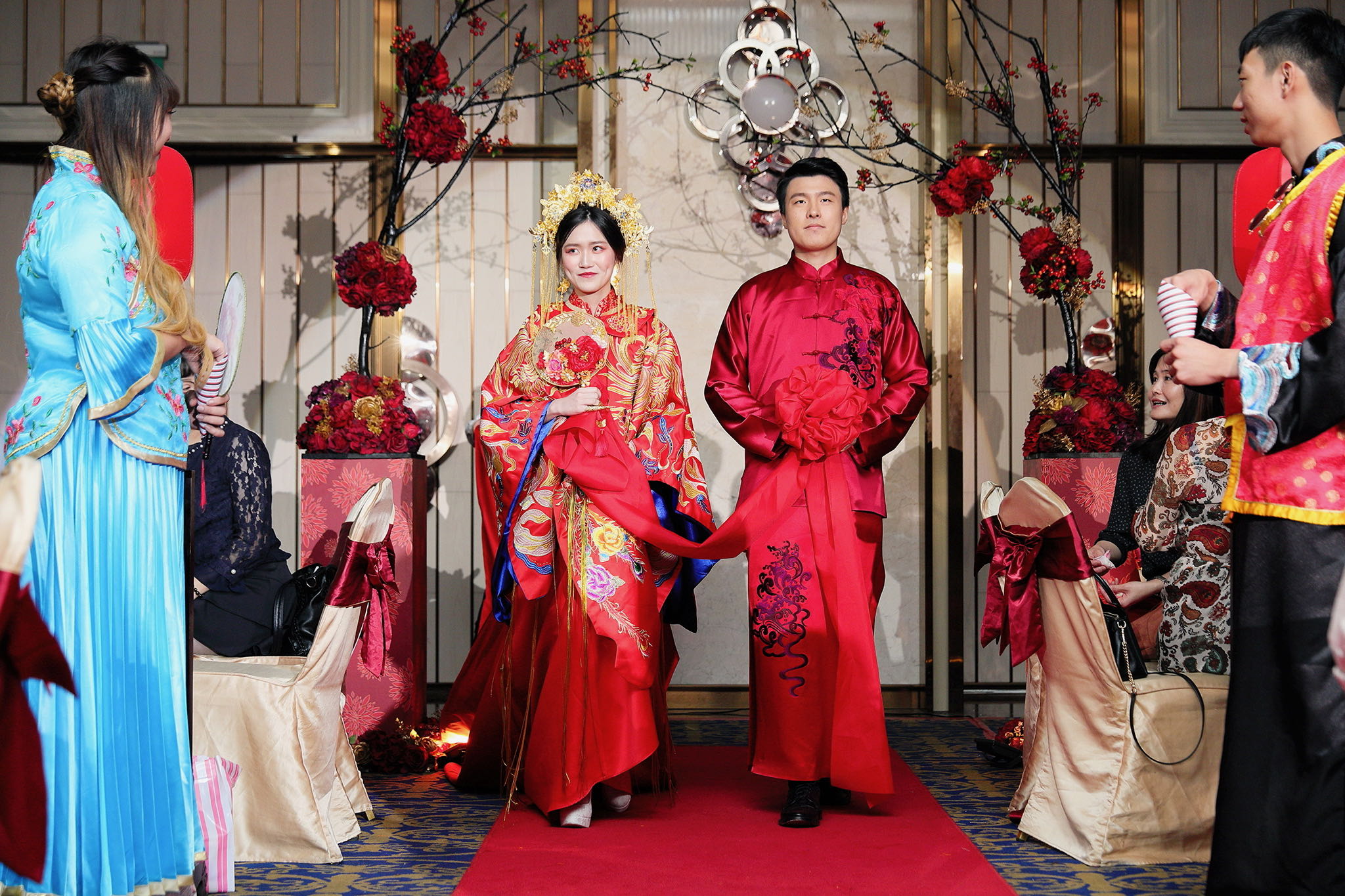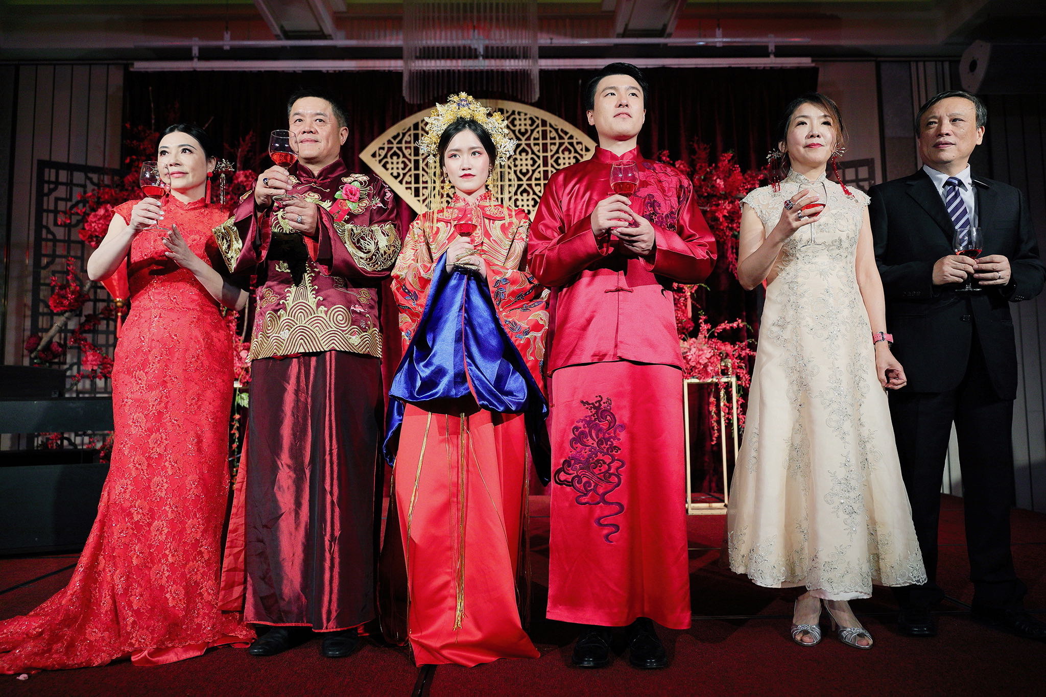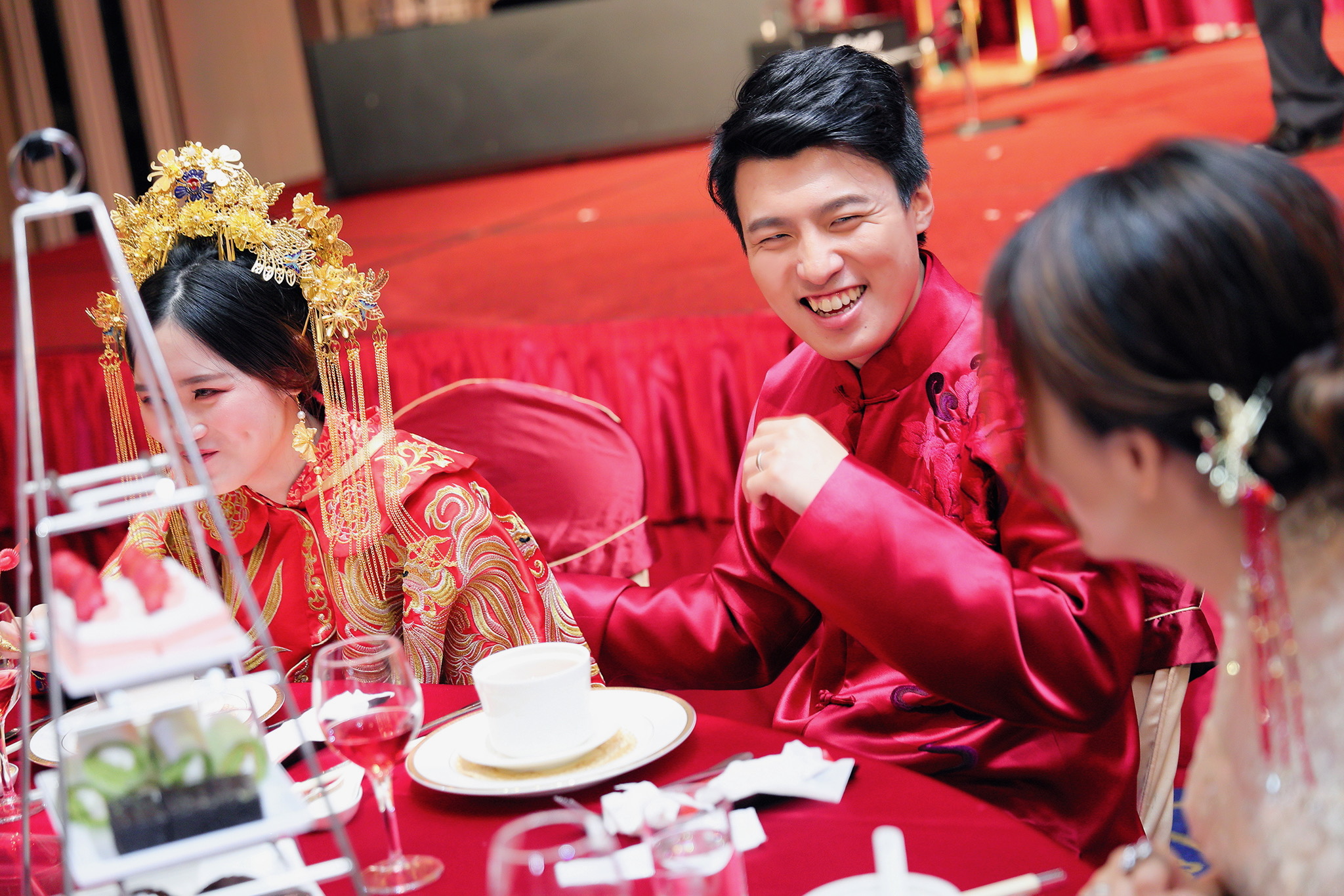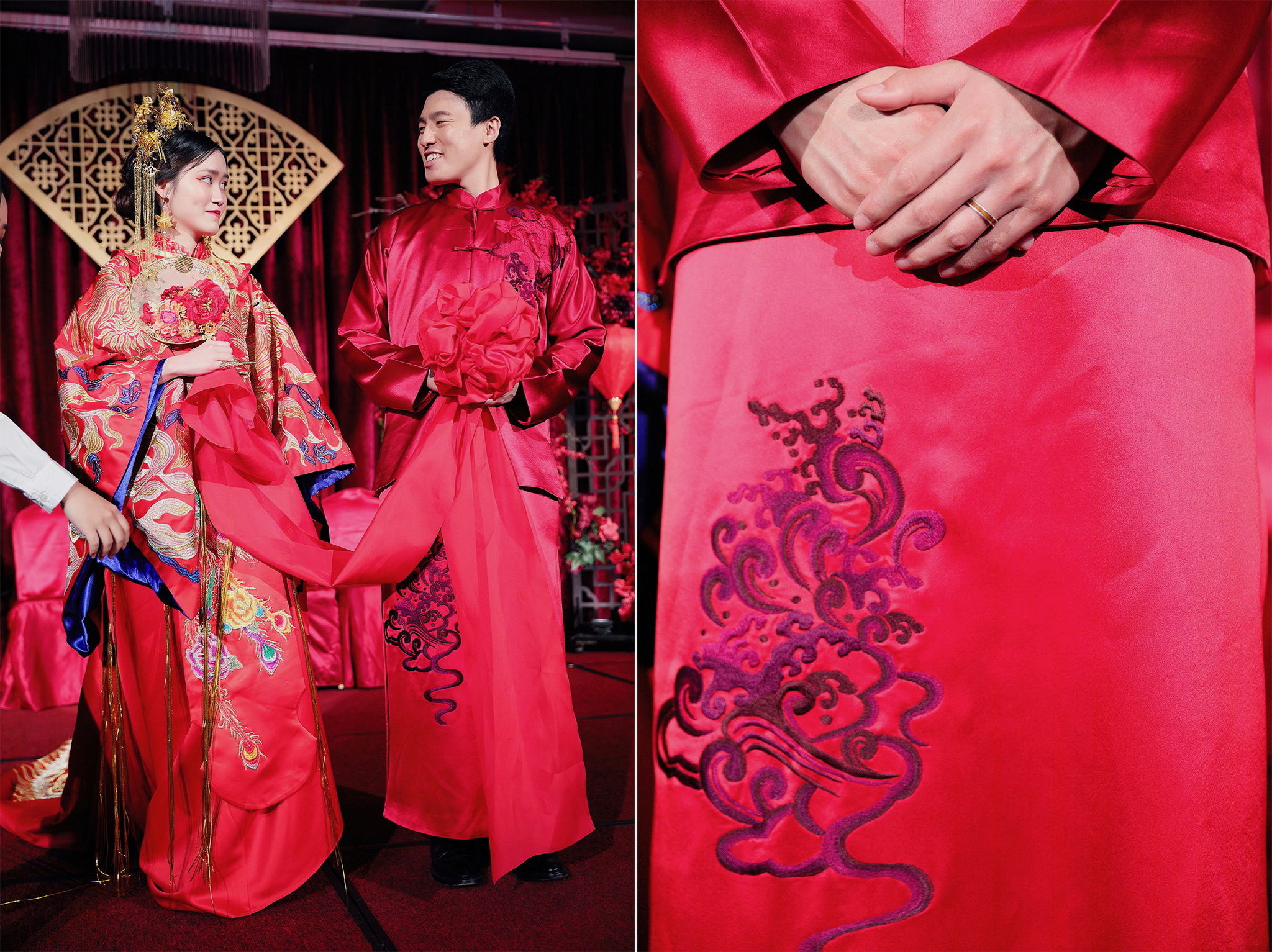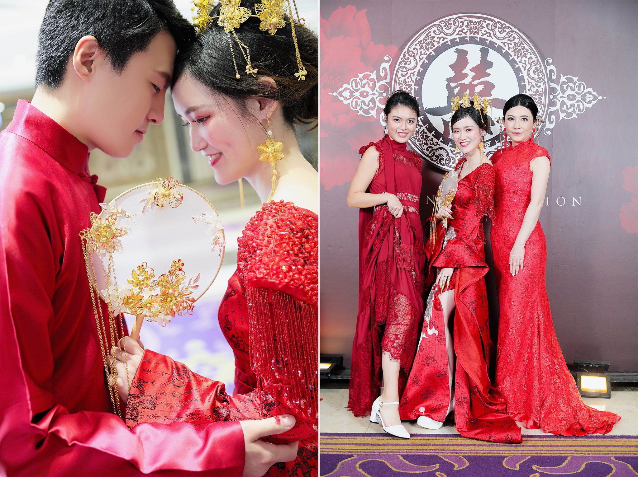 這場婚禮是由新娘的媽咪跟我洽詢的,因緣際會看了我拍攝其親友的婚禮,就直接來敲我檔期,哈 說來也還真是緣份呀!新人是在美國念書認識的,交往許久決定廝守終身,雖然只是簡單的純宴客,但從治裝就可以看出完全的走中國風,連進場歌曲都是<延禧攻略>,拍起來格外有fu,婚禮沒有一定要怎麼樣,只要你們喜歡都可以發揮其中,婚禮嘛!開心玩最重要