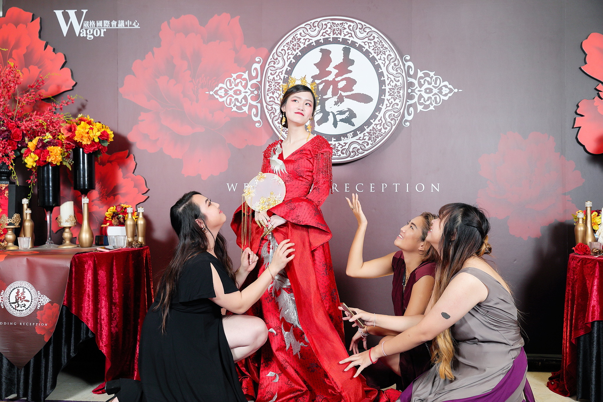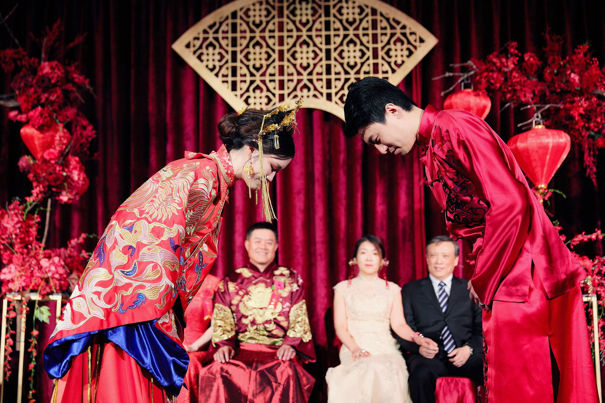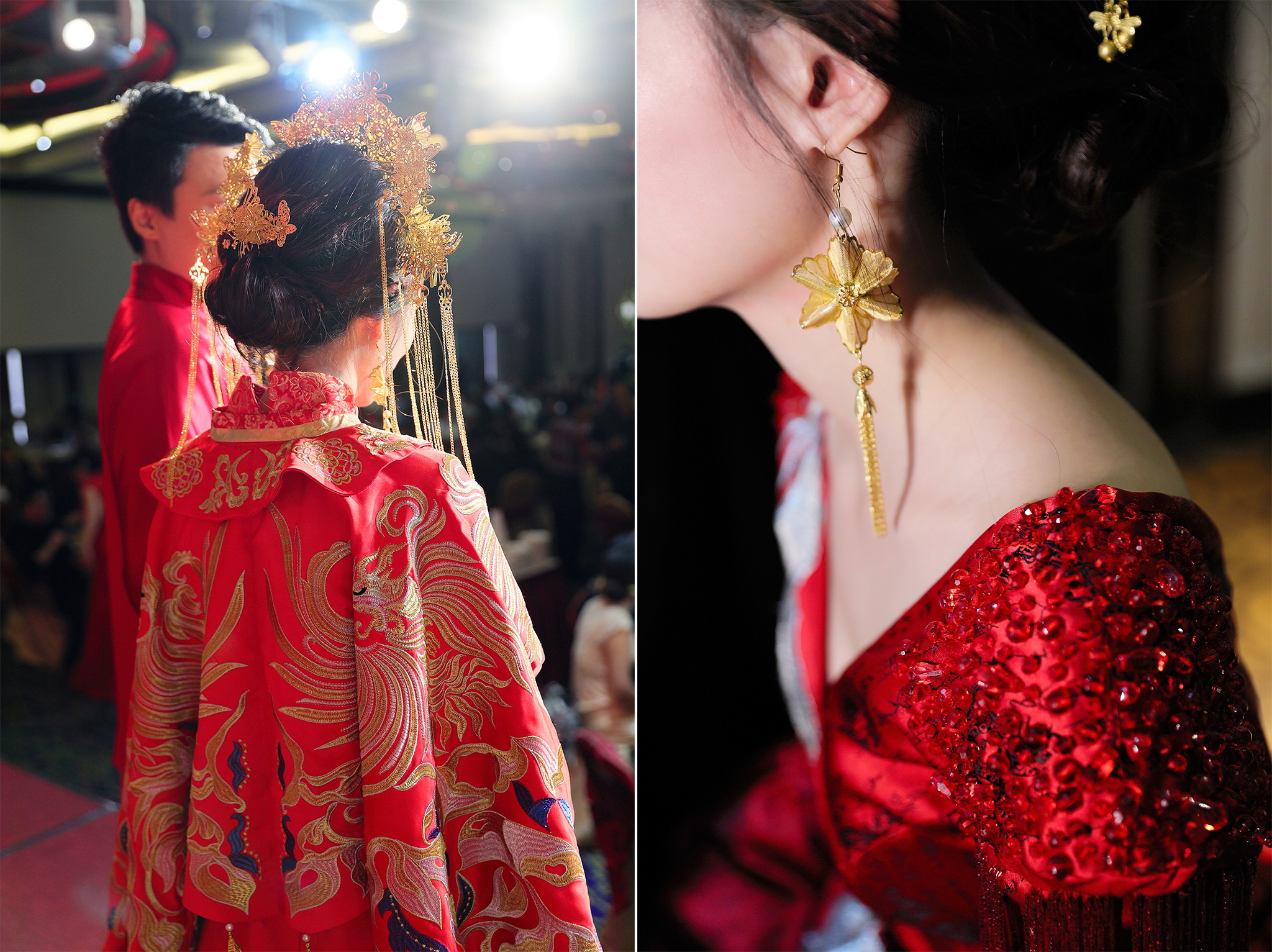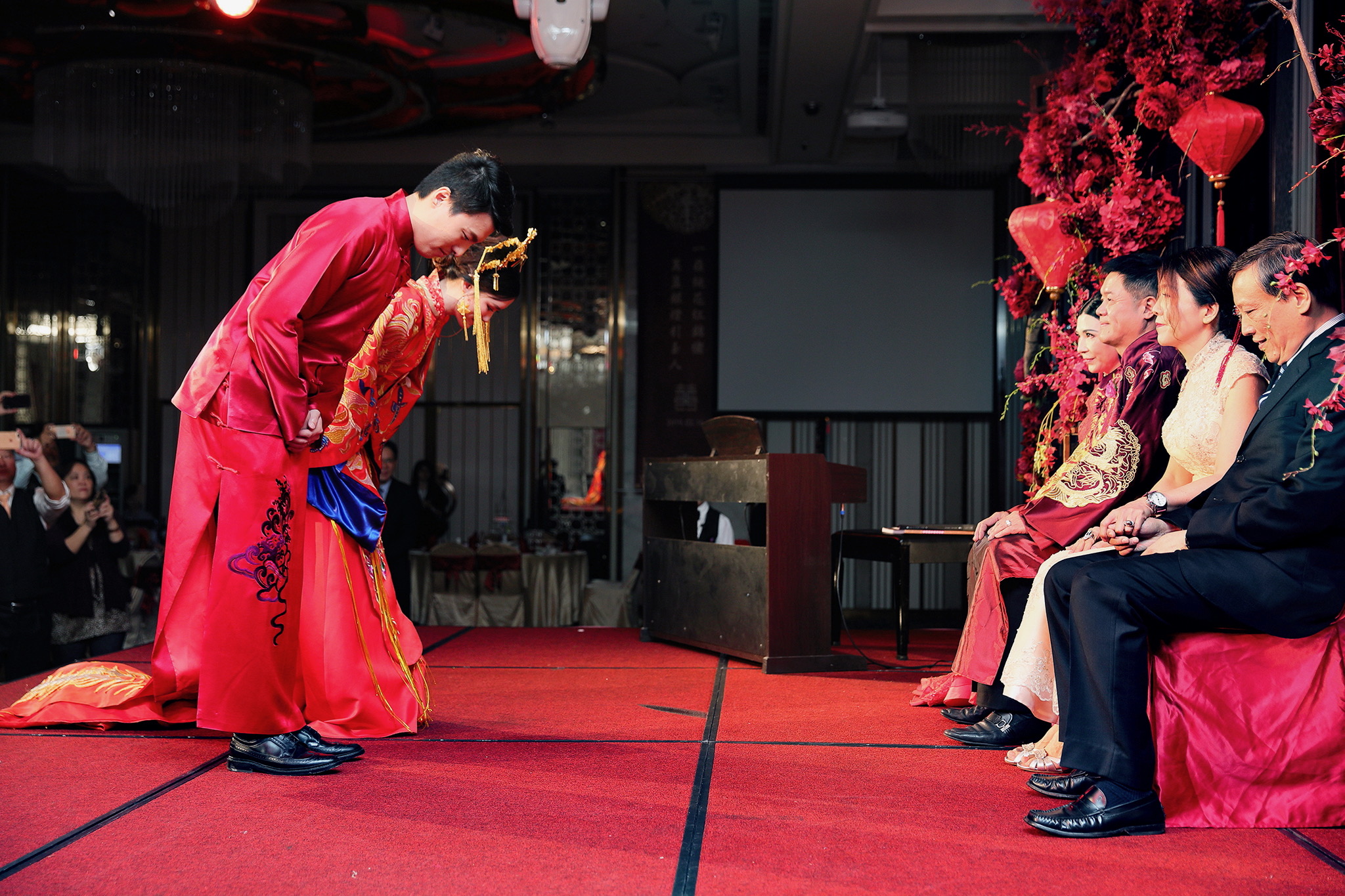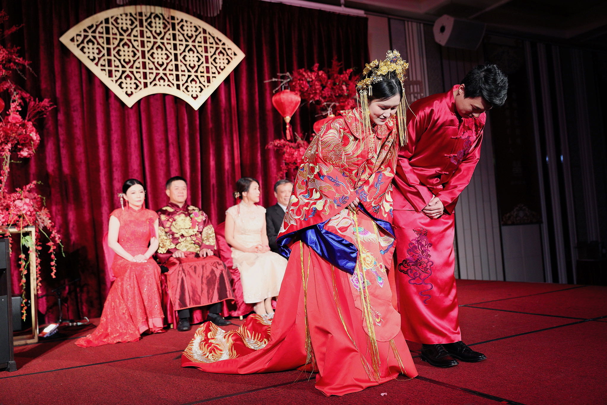 這場婚禮是由新娘的媽咪跟我洽詢的,因緣際會看了我拍攝其親友的婚禮,就直接來敲我檔期,哈 說來也還真是緣份呀!新人是在美國念書認識的,交往許久決定廝守終身,雖然只是簡單的純宴客,但從治裝就可以看出完全的走中國風,連進場歌曲都是<延禧攻略>,拍起來格外有fu,婚禮沒有一定要怎麼樣,只要你們喜歡都可以發揮其中,婚禮嘛!開心玩最重要