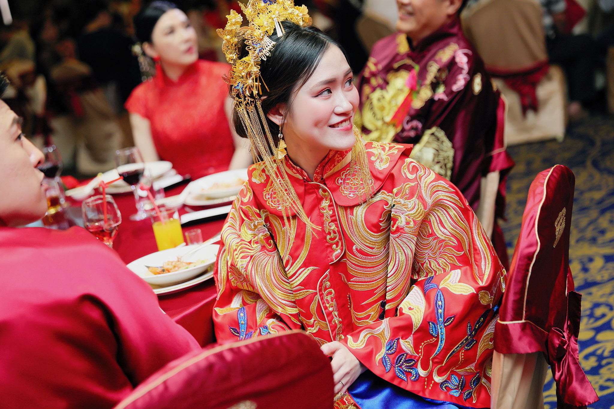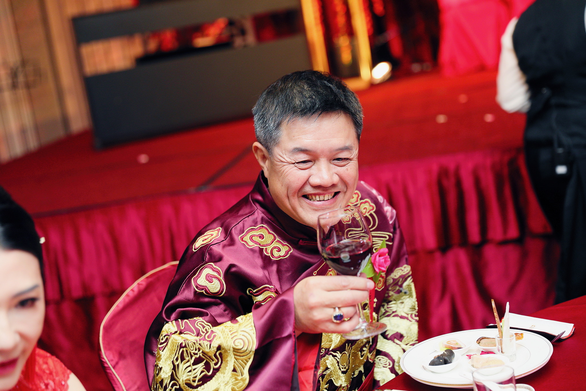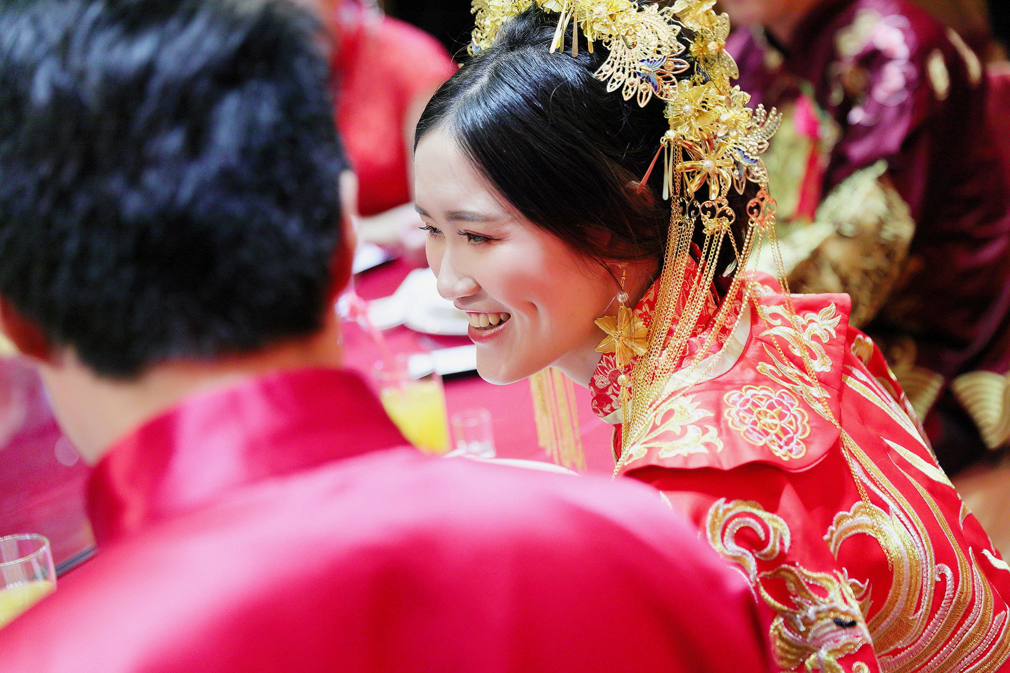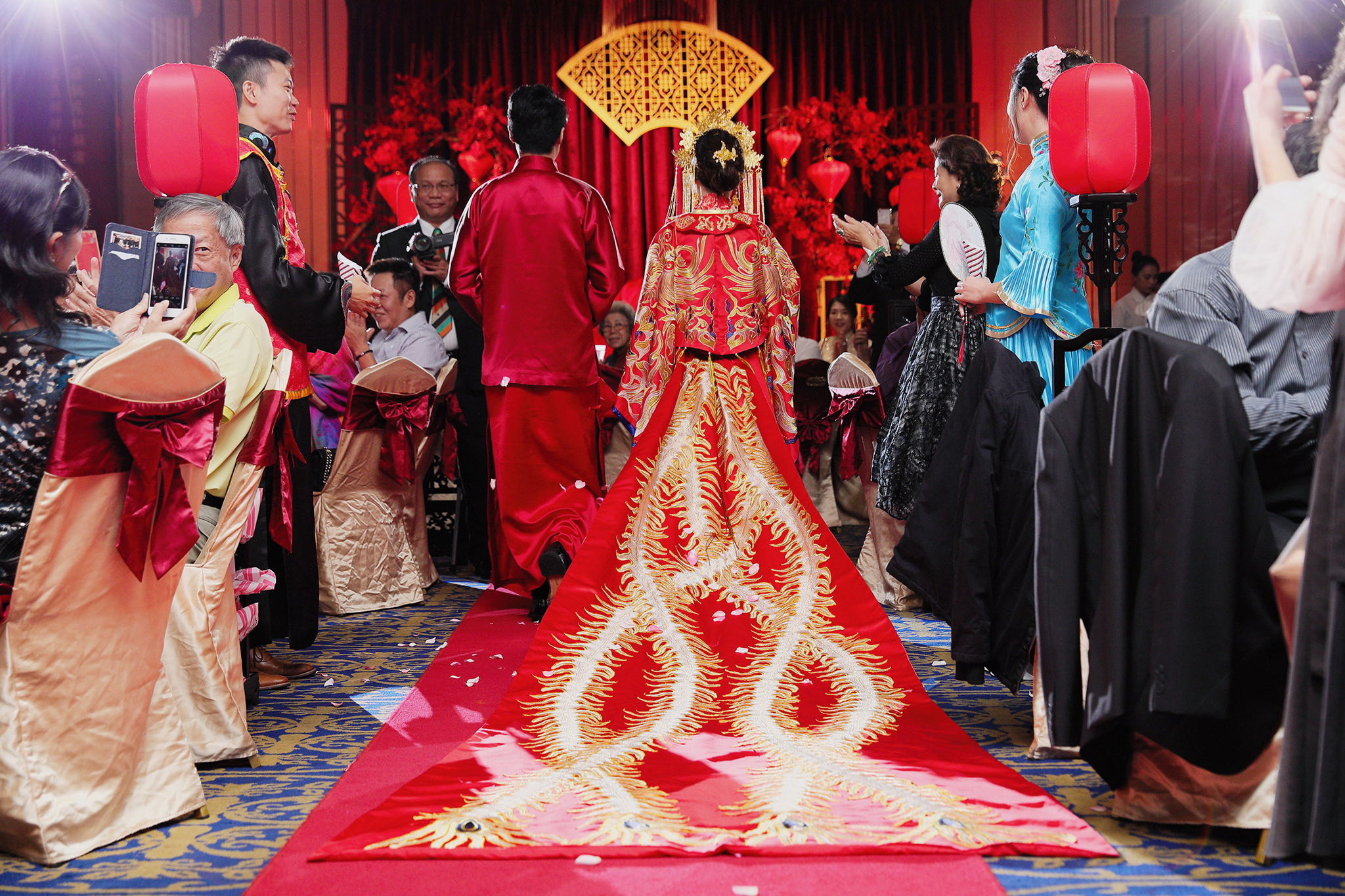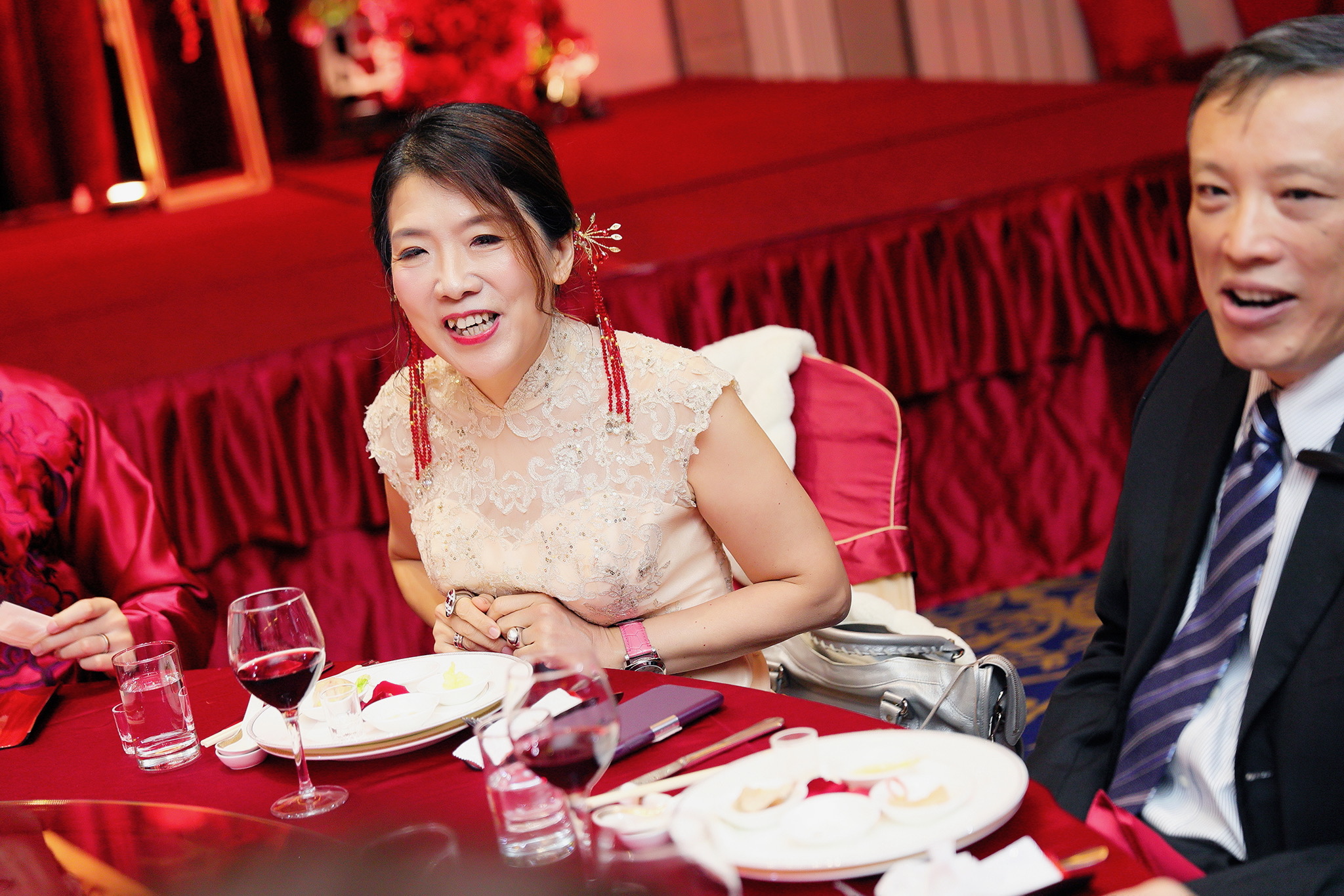 這場婚禮是由新娘的媽咪跟我洽詢的,因緣際會看了我拍攝其親友的婚禮,就直接來敲我檔期,哈 說來也還真是緣份呀!新人是在美國念書認識的,交往許久決定廝守終身,雖然只是簡單的純宴客,但從治裝就可以看出完全的走中國風,連進場歌曲都是<延禧攻略>,拍起來格外有fu,婚禮沒有一定要怎麼樣,只要你們喜歡都可以發揮其中,婚禮嘛!開心玩最重要