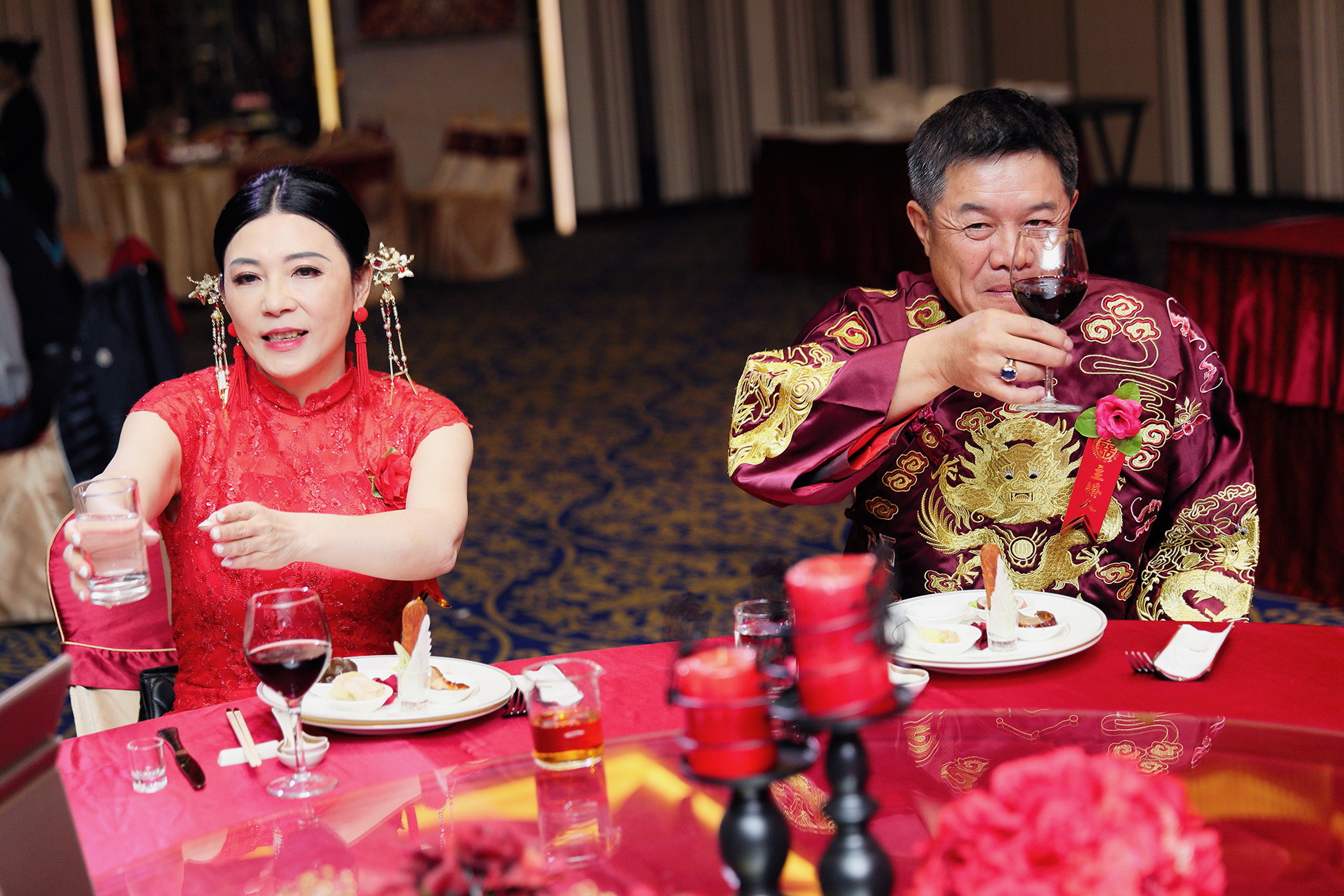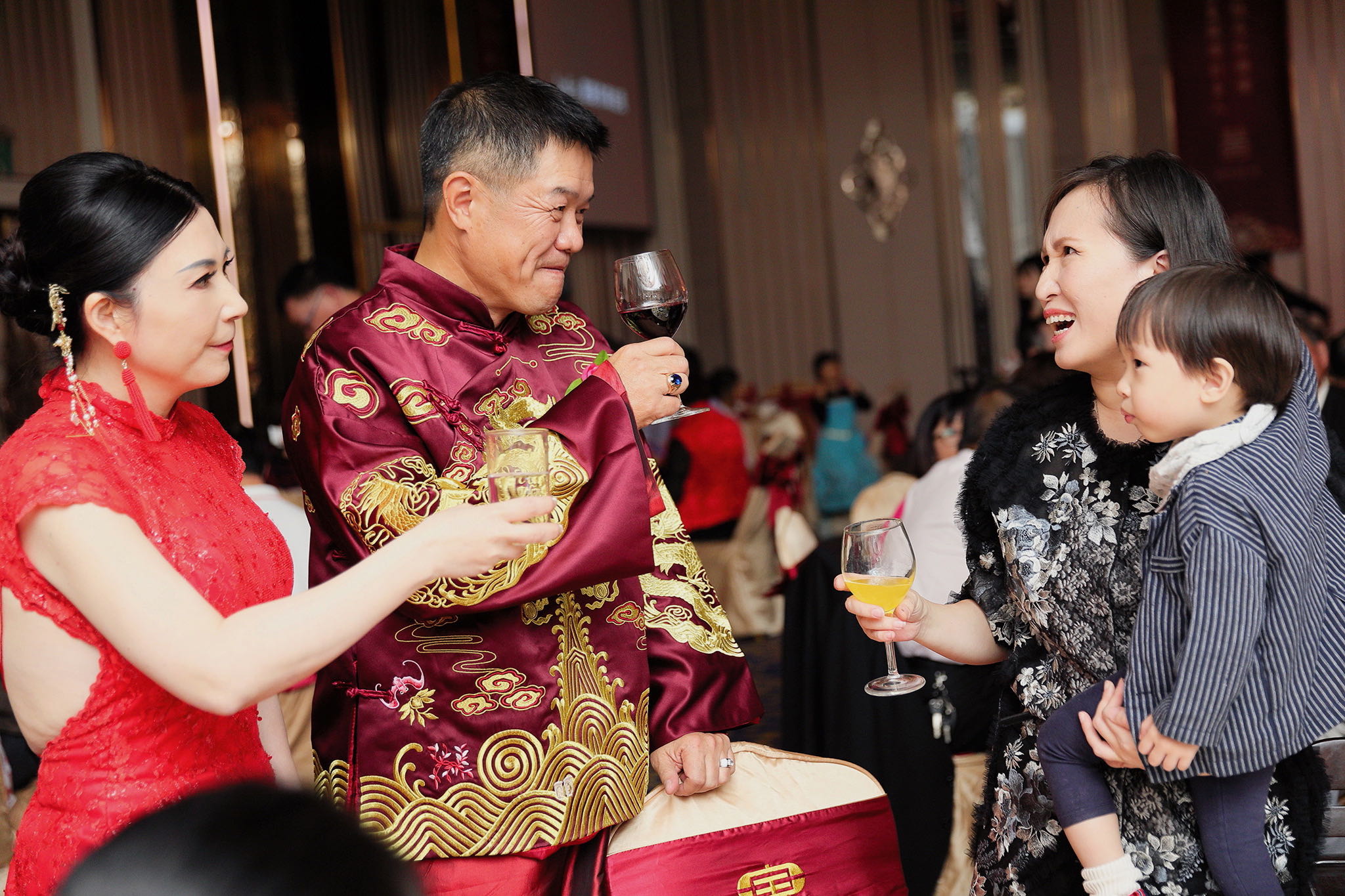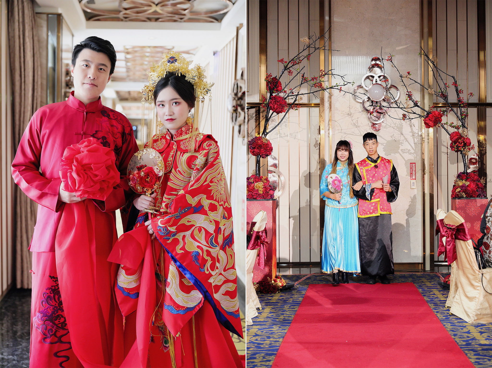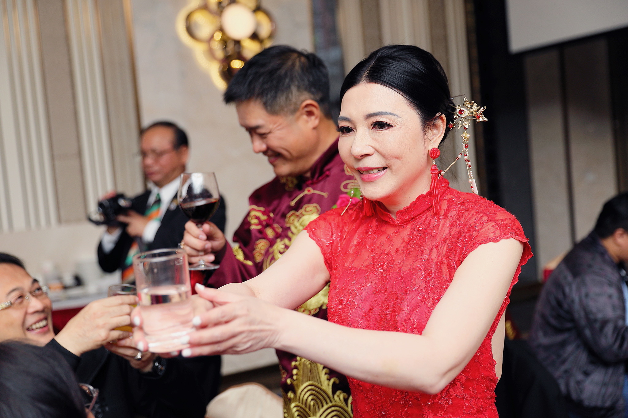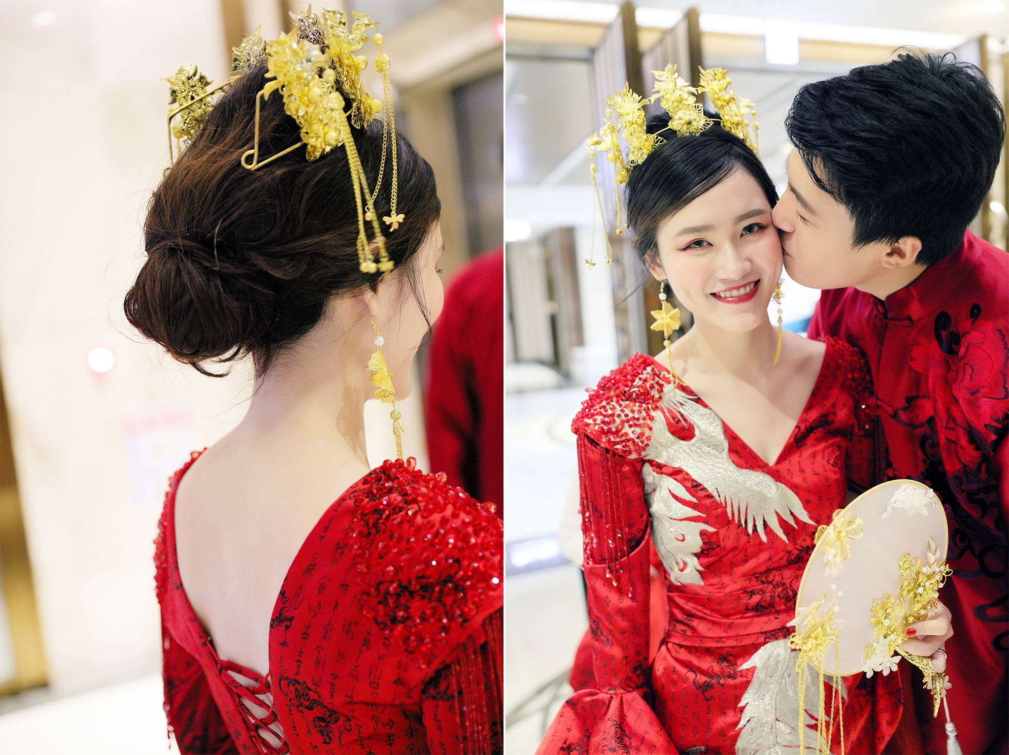 這場婚禮是由新娘的媽咪跟我洽詢的,因緣際會看了我拍攝其親友的婚禮,就直接來敲我檔期,哈 說來也還真是緣份呀!新人是在美國念書認識的,交往許久決定廝守終身,雖然只是簡單的純宴客,但從治裝就可以看出完全的走中國風,連進場歌曲都是<延禧攻略>,拍起來格外有fu,婚禮沒有一定要怎麼樣,只要你們喜歡都可以發揮其中,婚禮嘛!開心玩最重要