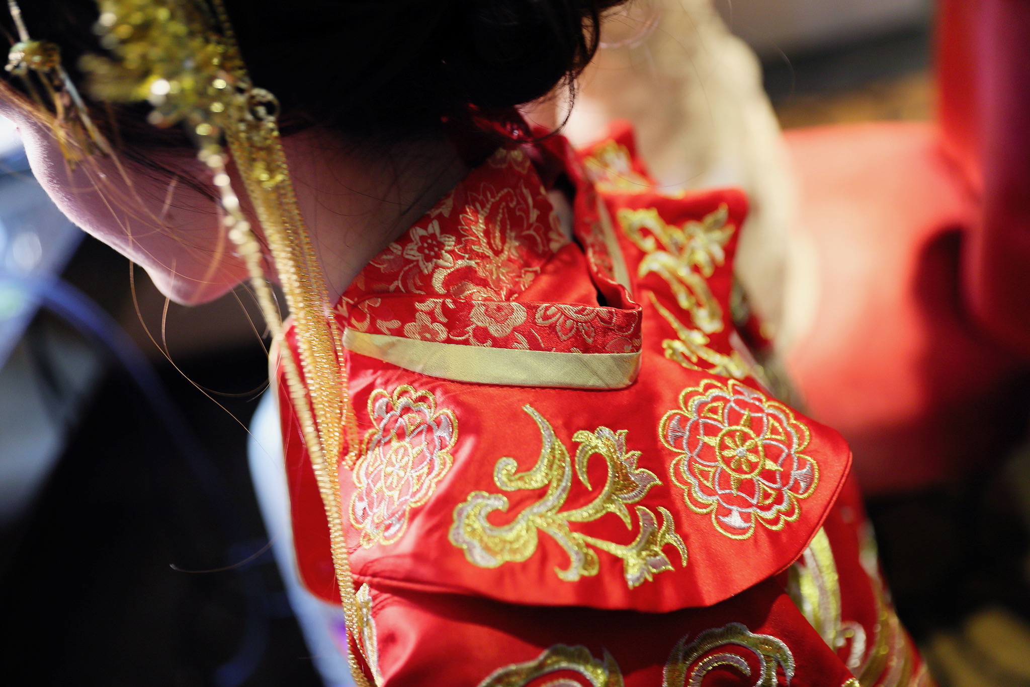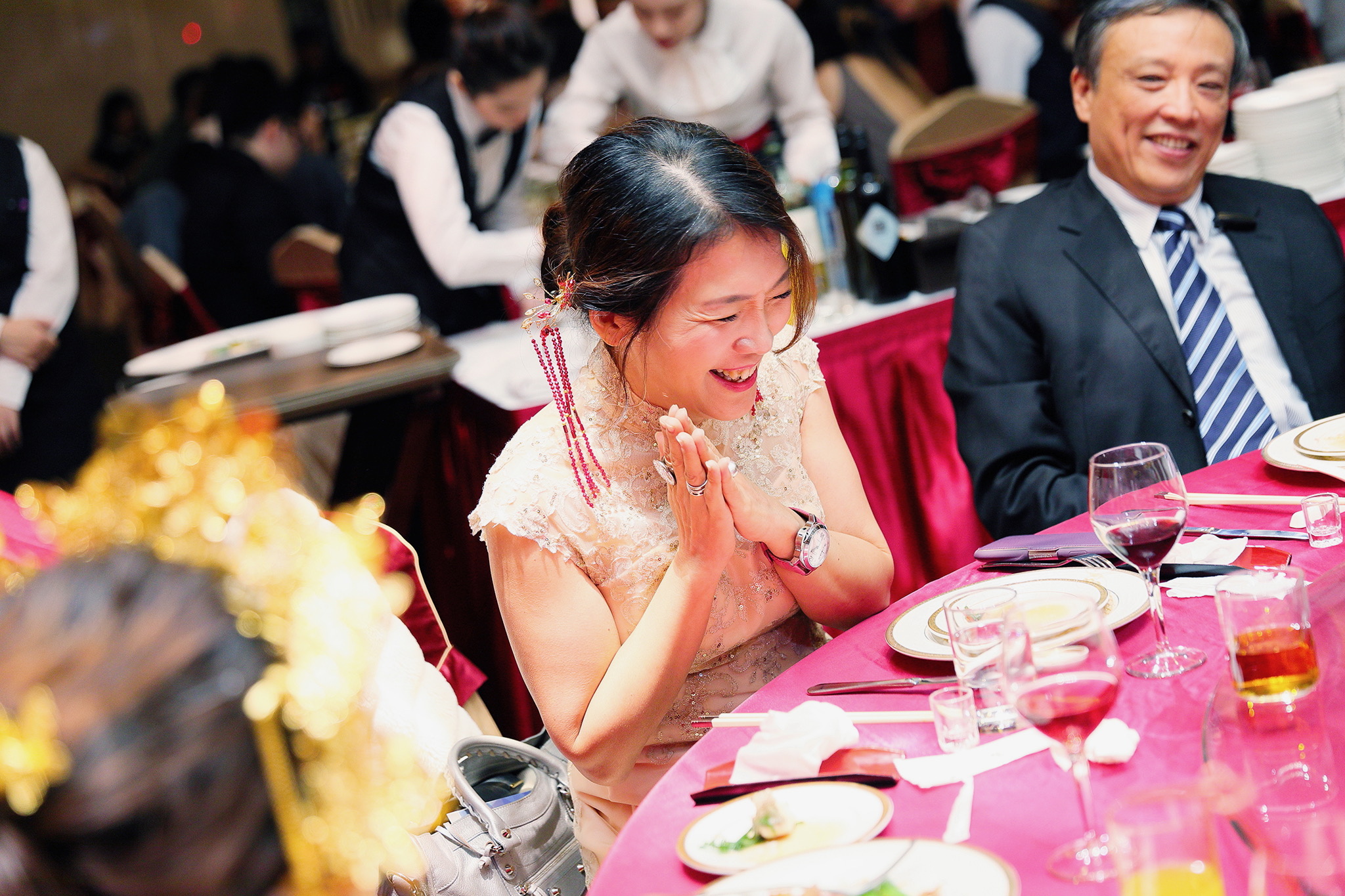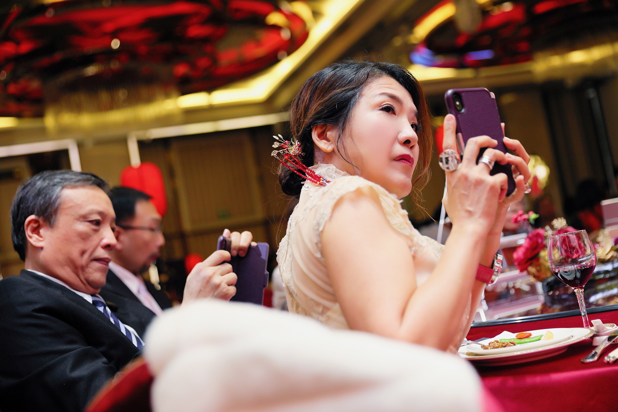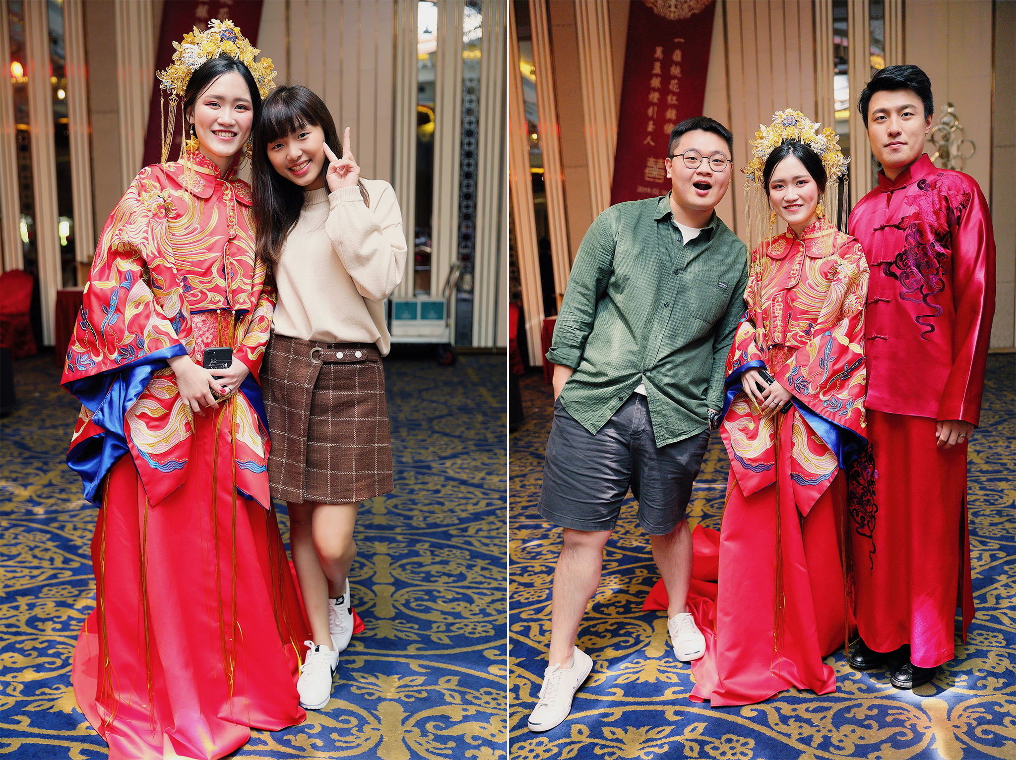 這場婚禮是由新娘的媽咪跟我洽詢的,因緣際會看了我拍攝其親友的婚禮,就直接來敲我檔期,哈 說來也還真是緣份呀!新人是在美國念書認識的,交往許久決定廝守終身,雖然只是簡單的純宴客,但從治裝就可以看出完全的走中國風,連進場歌曲都是<延禧攻略>,拍起來格外有fu,婚禮沒有一定要怎麼樣,只要你們喜歡都可以發揮其中,婚禮嘛!開心玩最重要