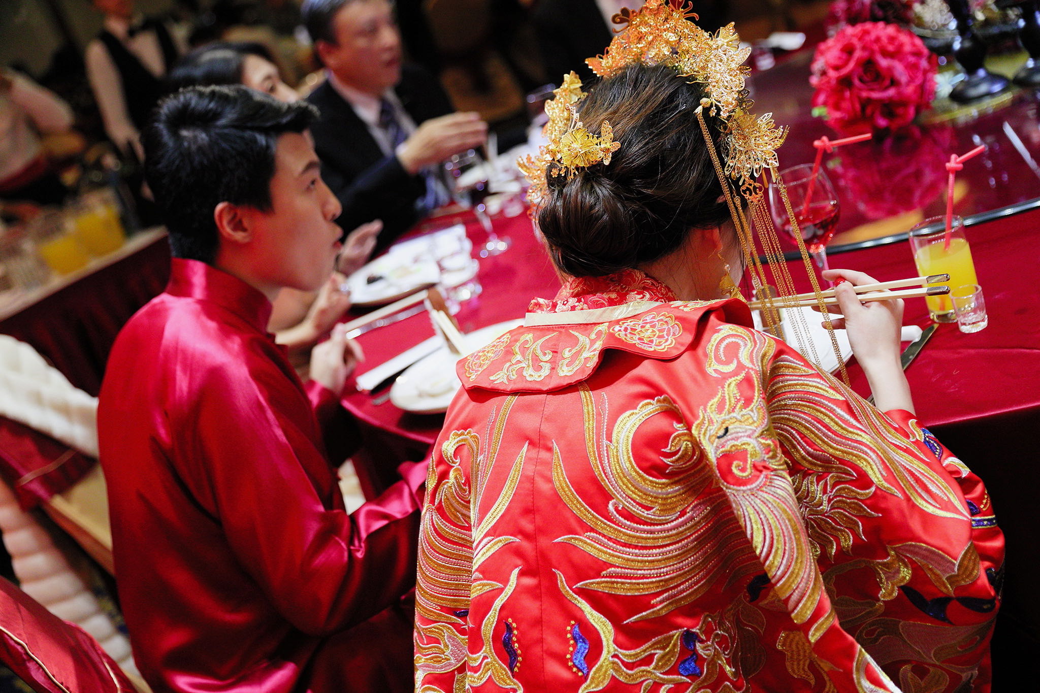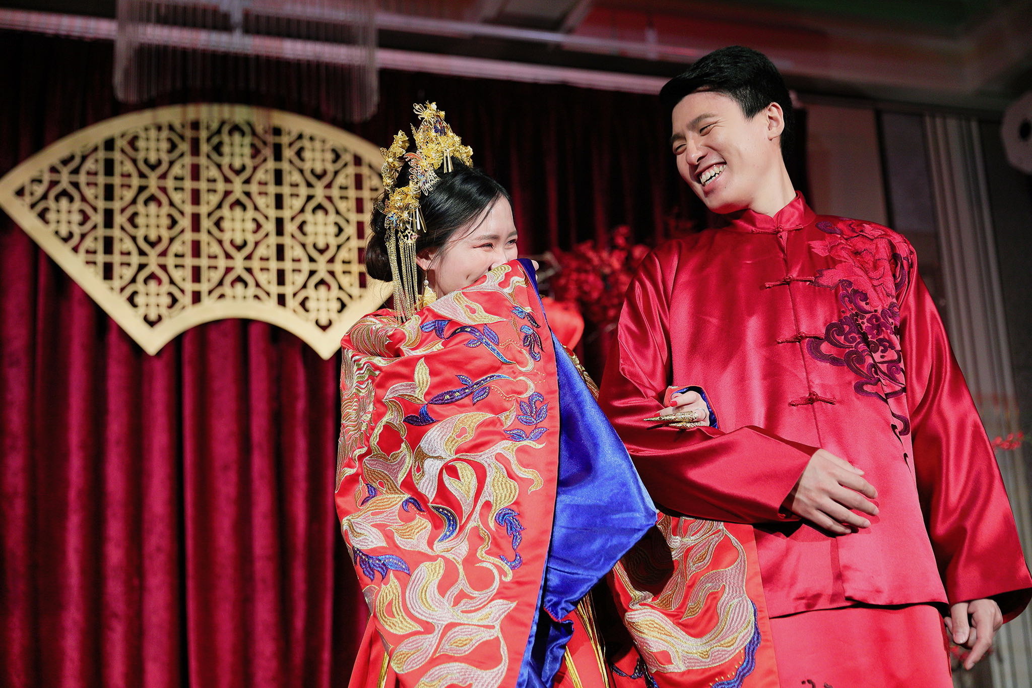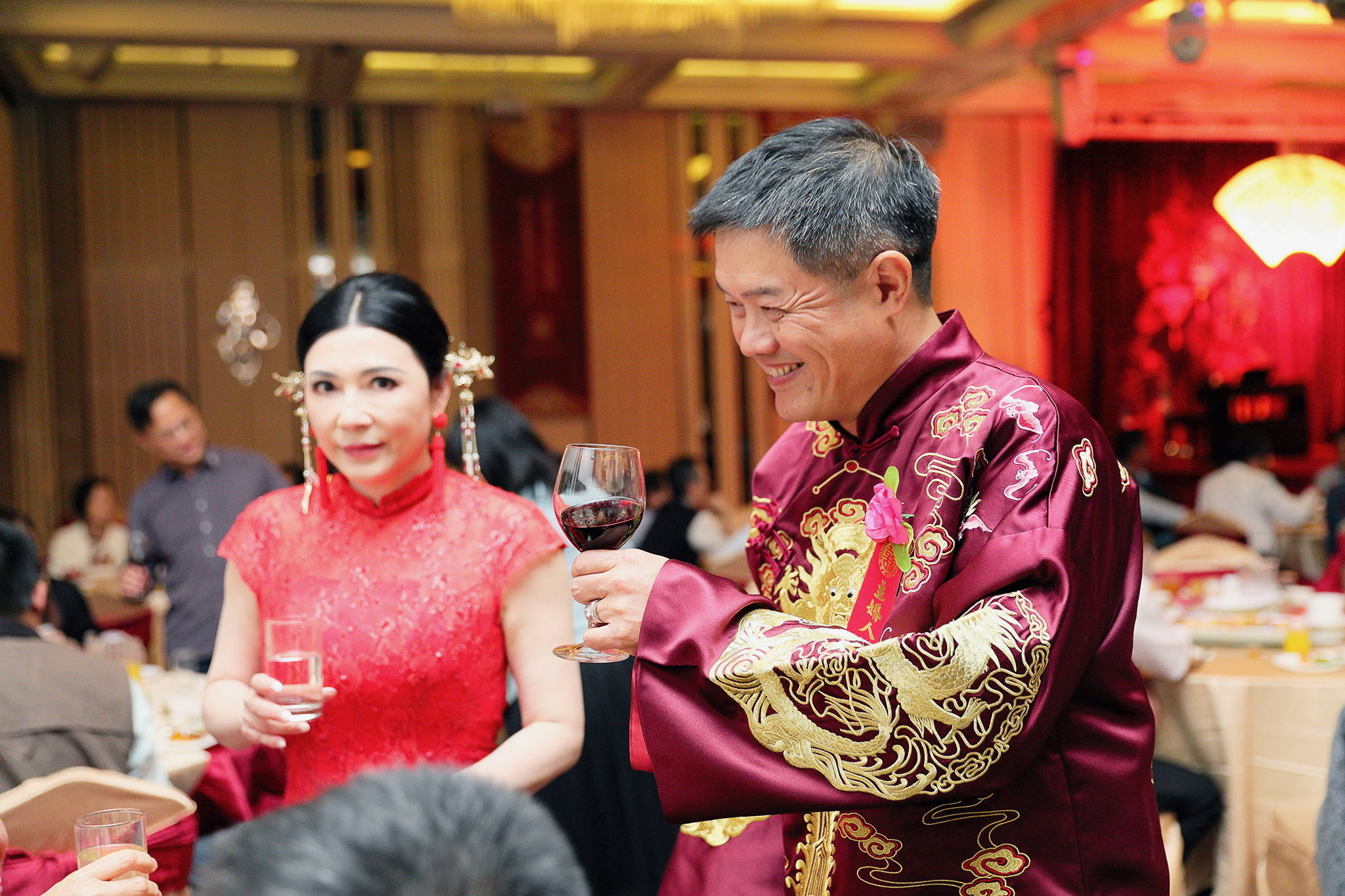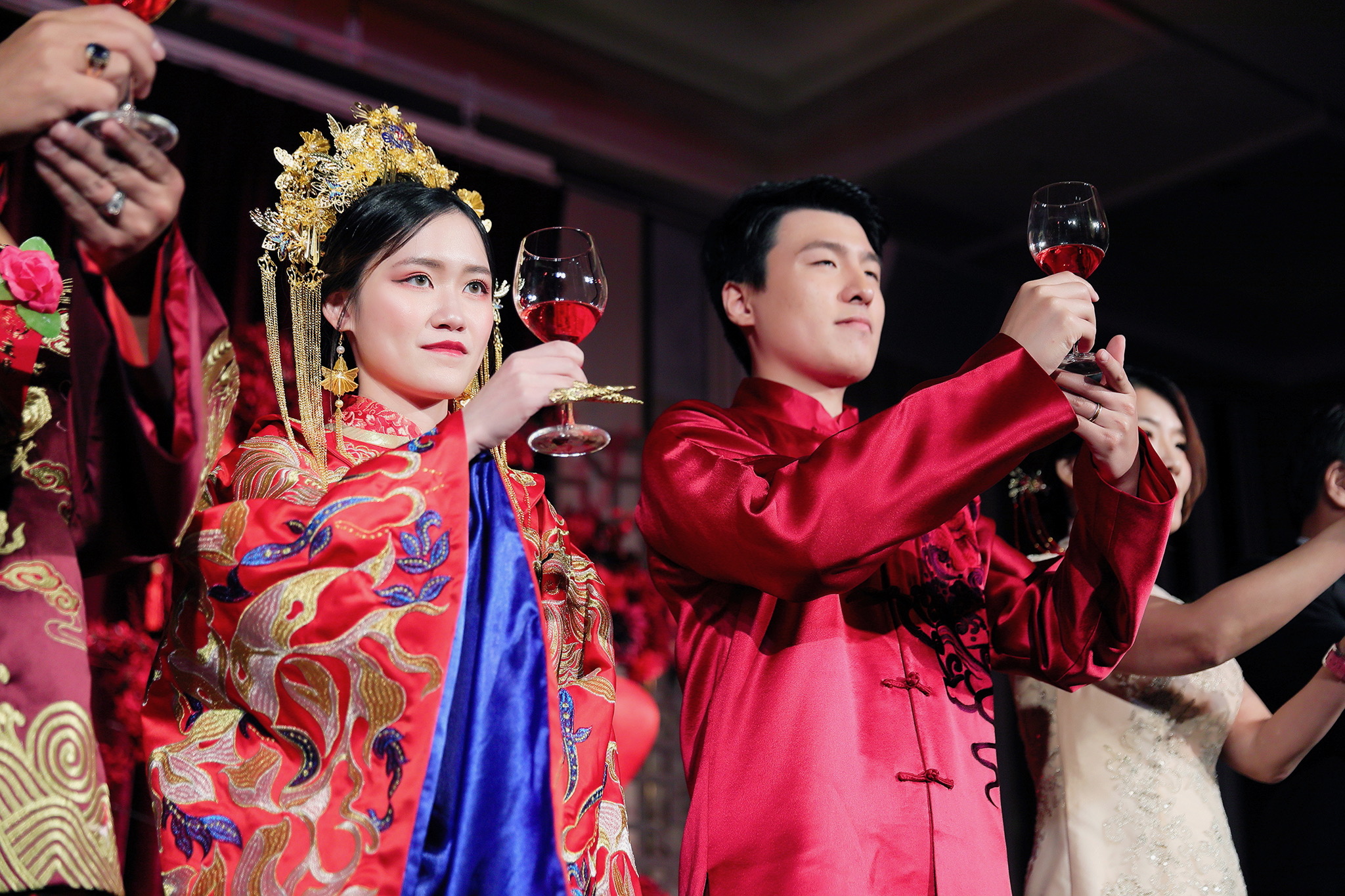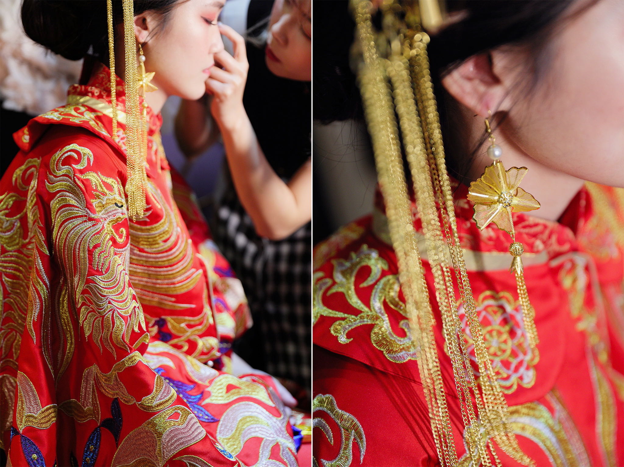 這場婚禮是由新娘的媽咪跟我洽詢的,因緣際會看了我拍攝其親友的婚禮,就直接來敲我檔期,哈 說來也還真是緣份呀!新人是在美國念書認識的,交往許久決定廝守終身,雖然只是簡單的純宴客,但從治裝就可以看出完全的走中國風,連進場歌曲都是<延禧攻略>,拍起來格外有fu,婚禮沒有一定要怎麼樣,只要你們喜歡都可以發揮其中,婚禮嘛!開心玩最重要