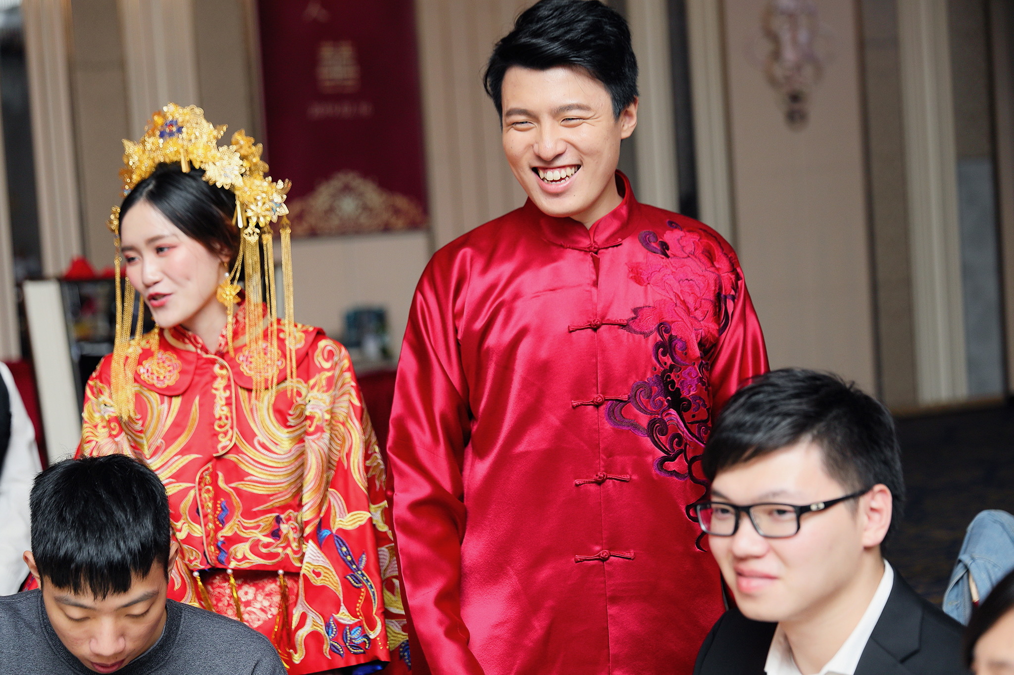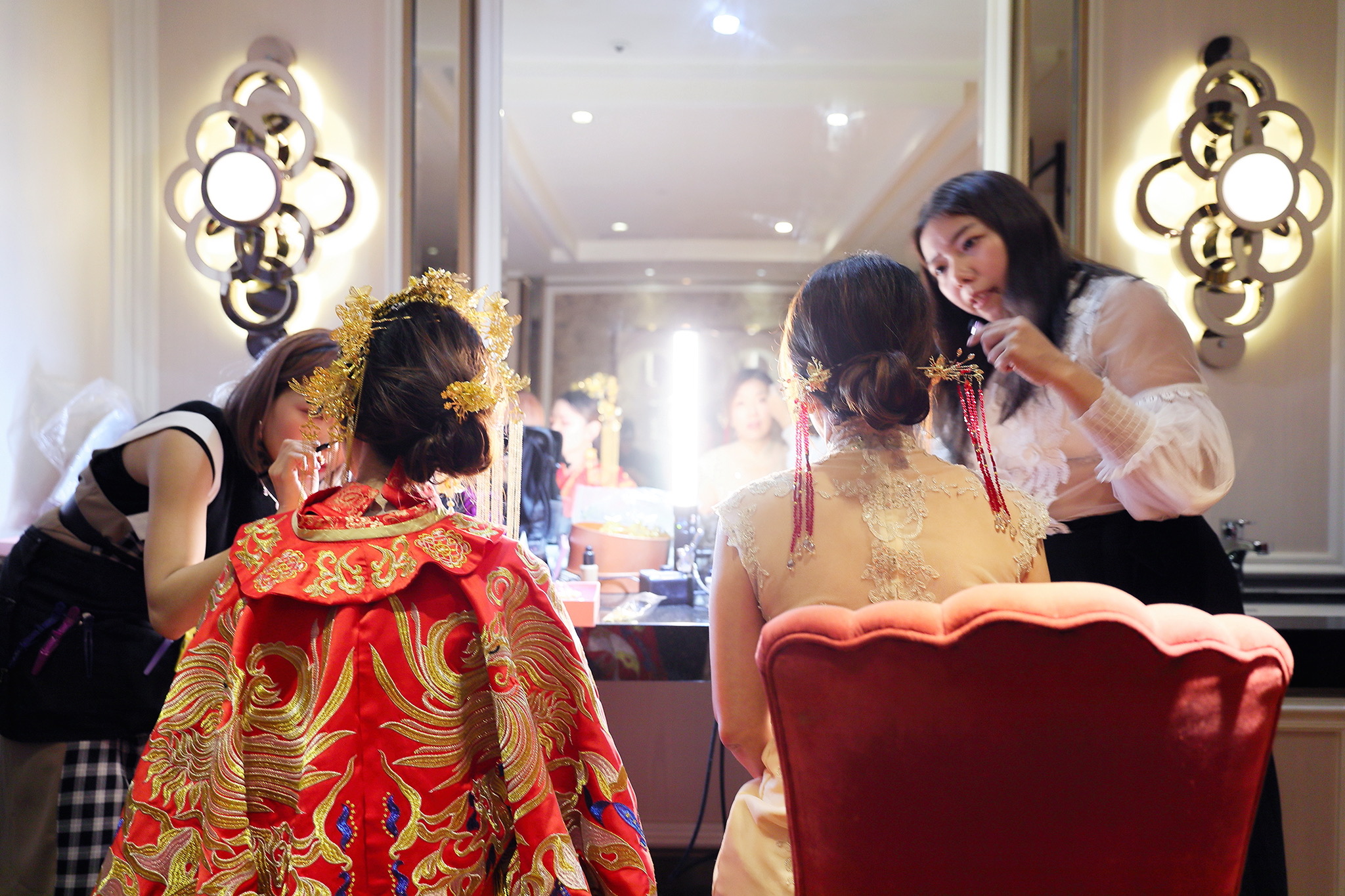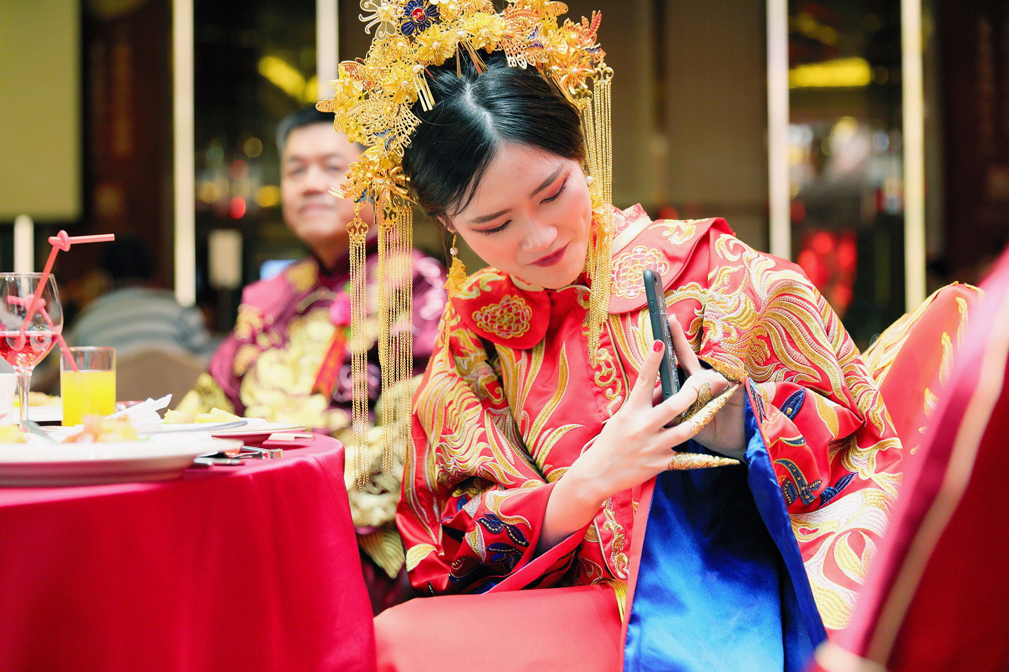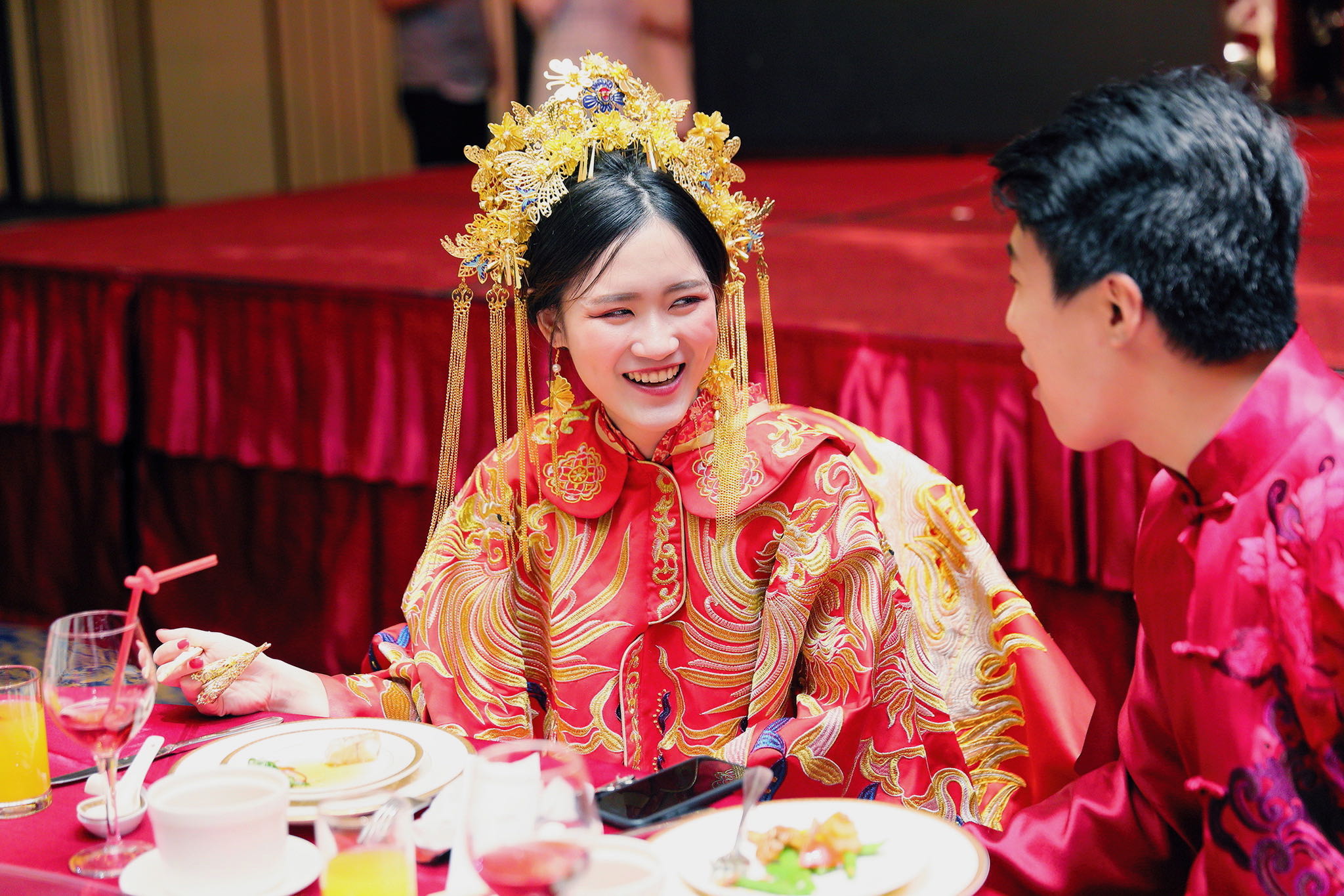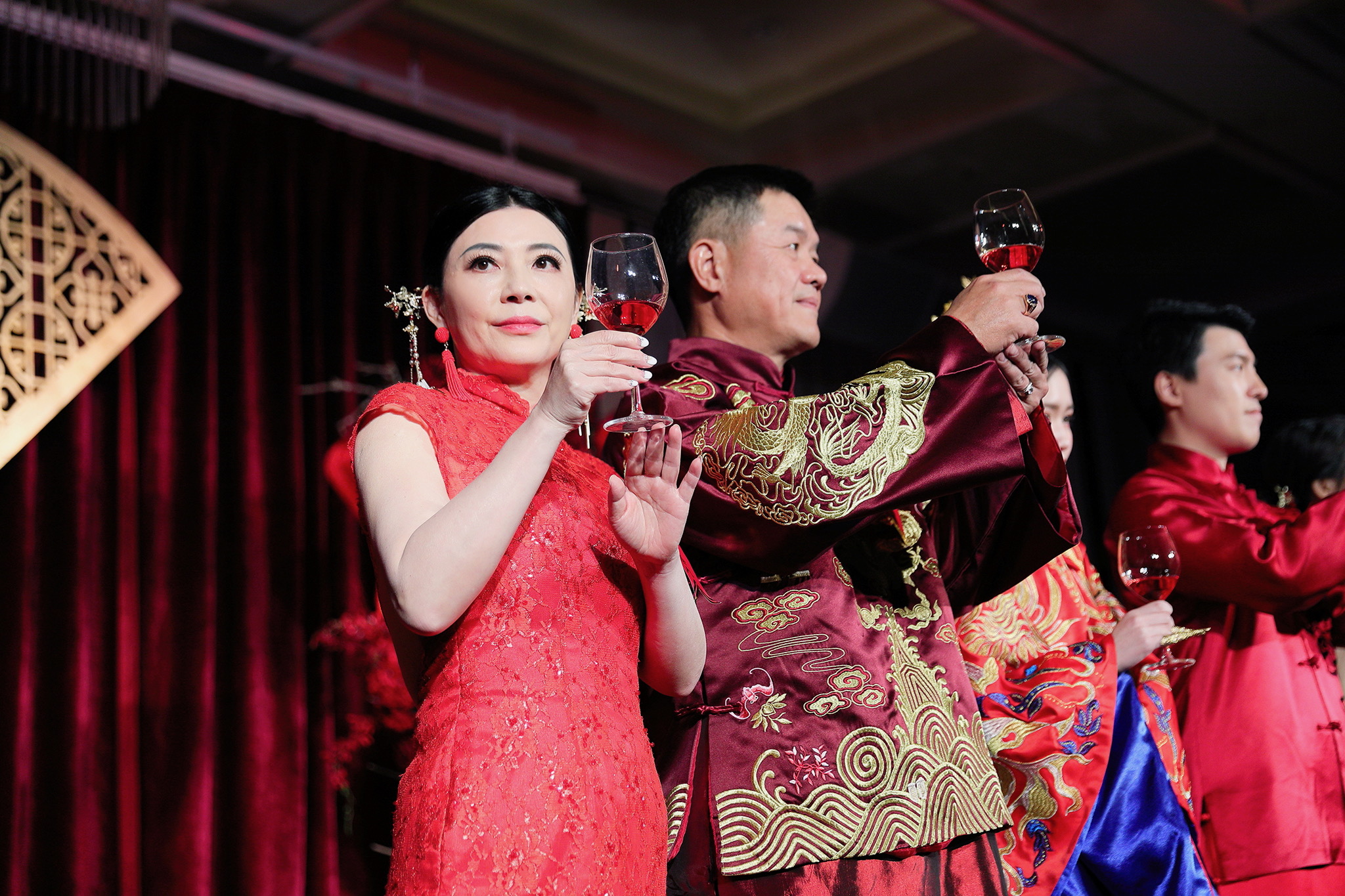 這場婚禮是由新娘的媽咪跟我洽詢的,因緣際會看了我拍攝其親友的婚禮,就直接來敲我檔期,哈 說來也還真是緣份呀!新人是在美國念書認識的,交往許久決定廝守終身,雖然只是簡單的純宴客,但從治裝就可以看出完全的走中國風,連進場歌曲都是<延禧攻略>,拍起來格外有fu,婚禮沒有一定要怎麼樣,只要你們喜歡都可以發揮其中,婚禮嘛!開心玩最重要