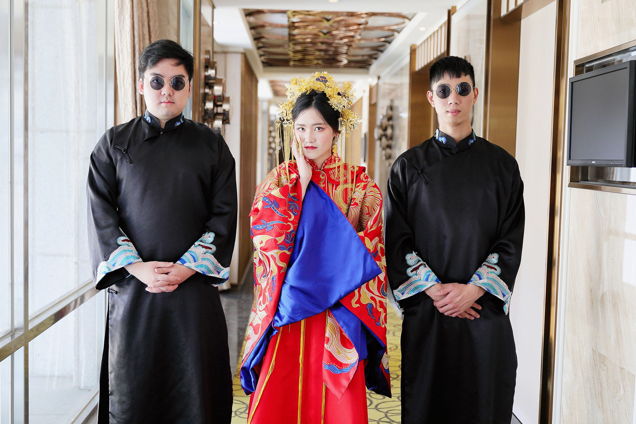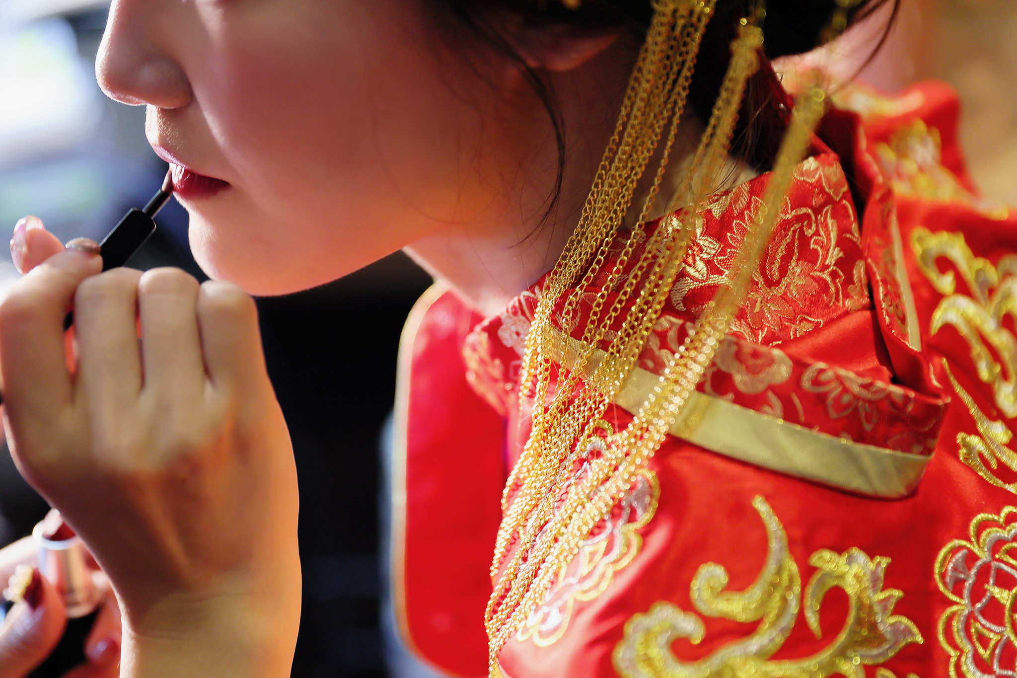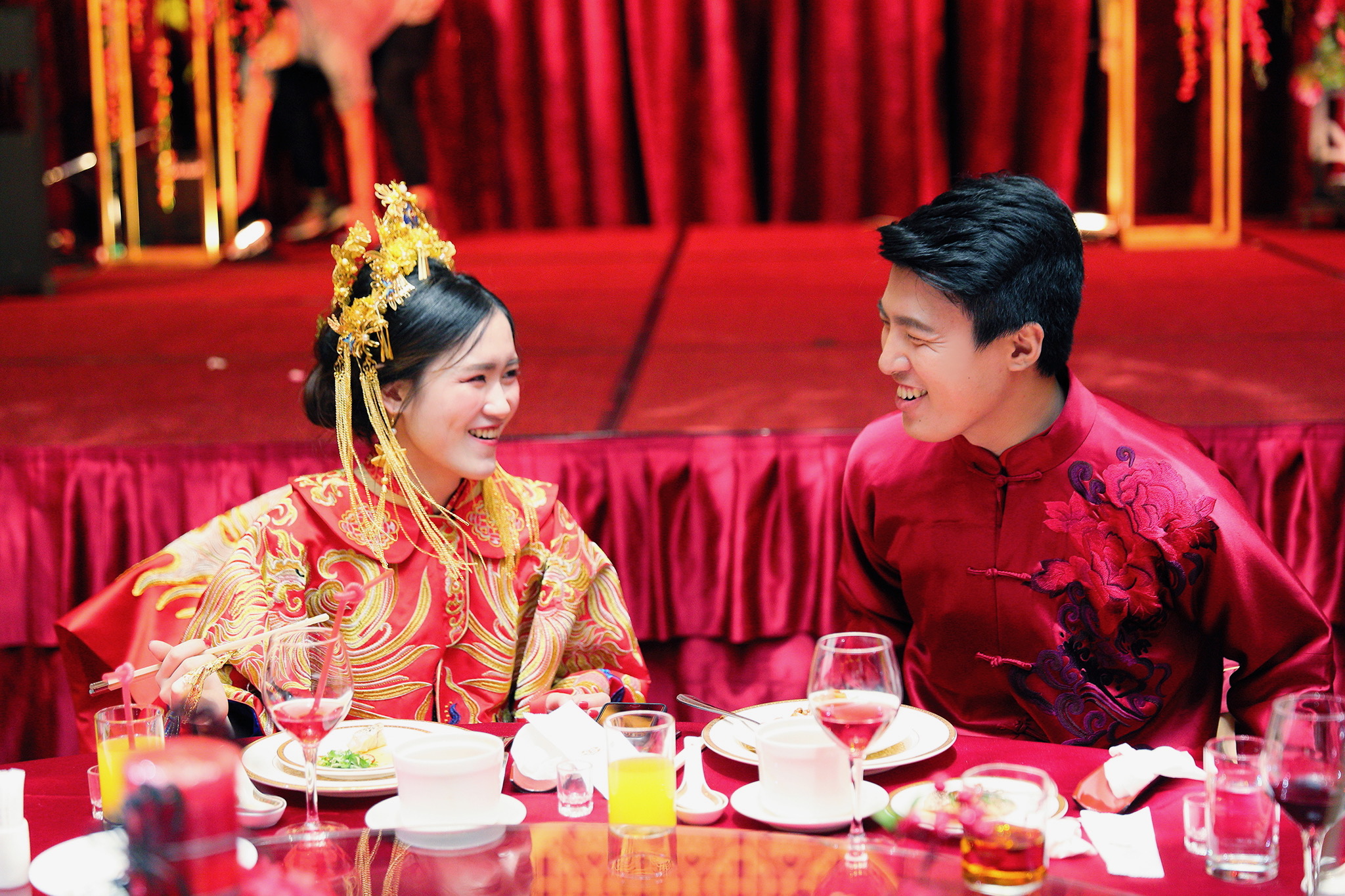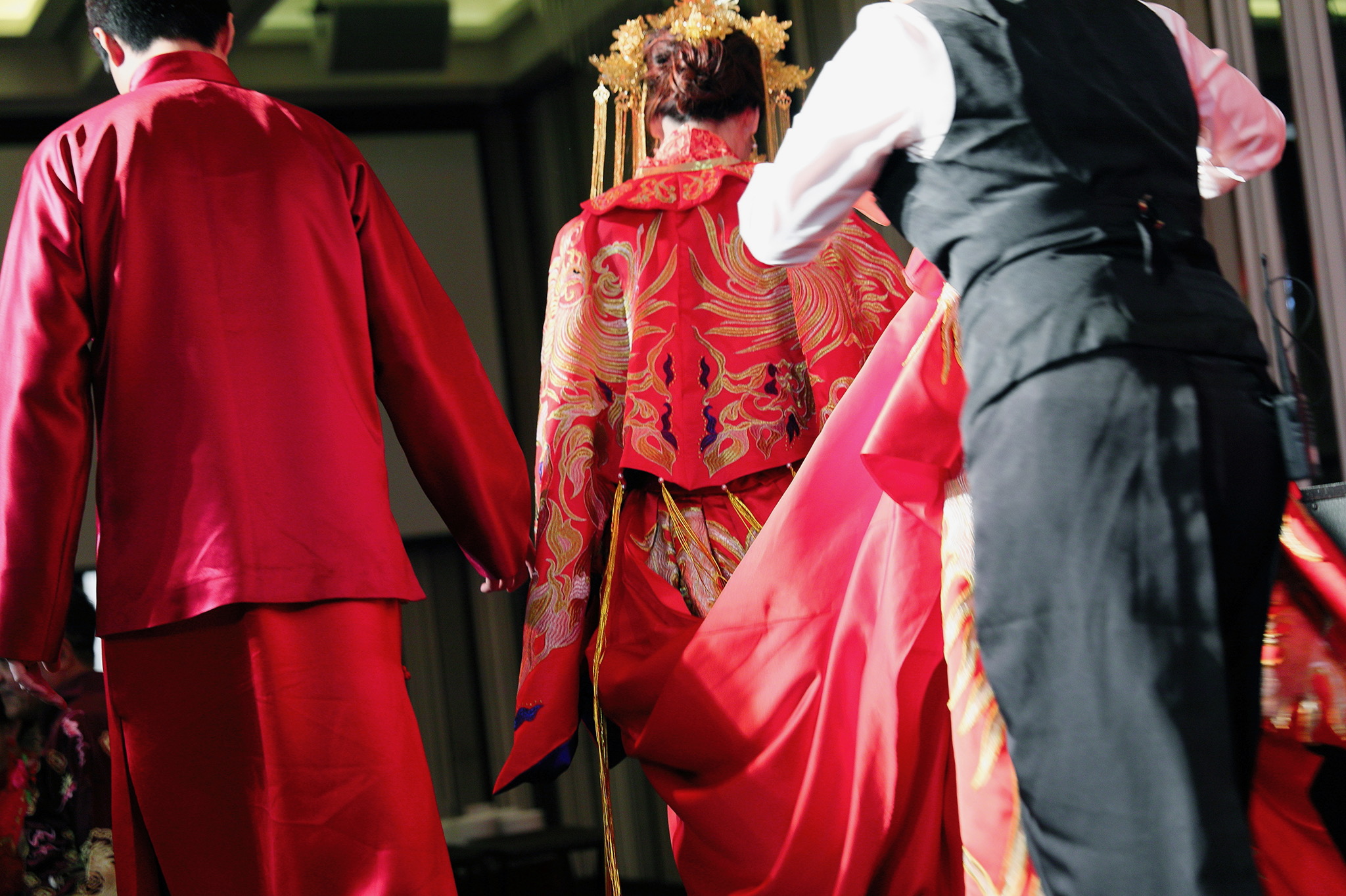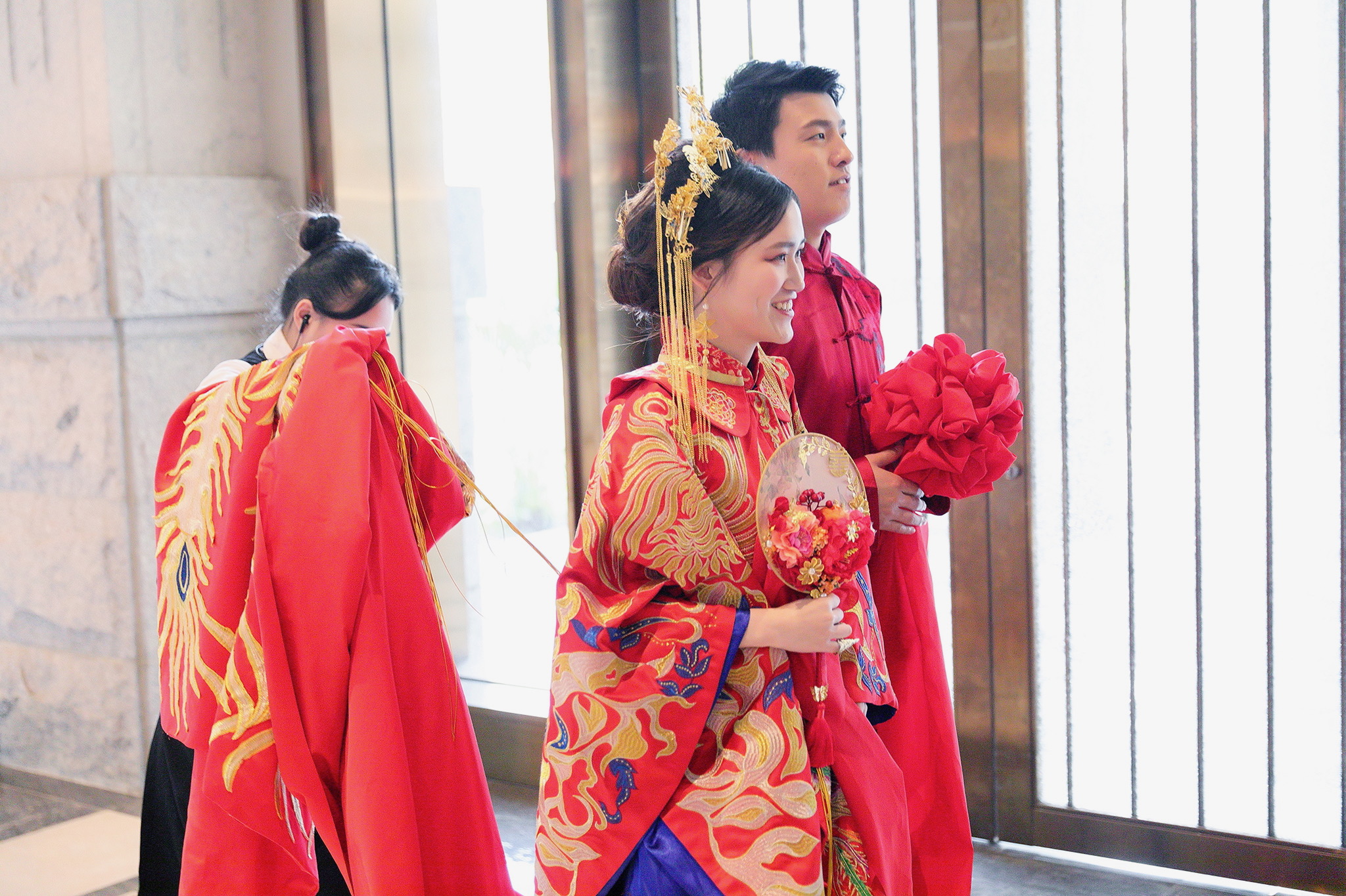 這場婚禮是由新娘的媽咪跟我洽詢的,因緣際會看了我拍攝其親友的婚禮,就直接來敲我檔期,哈 說來也還真是緣份呀!新人是在美國念書認識的,交往許久決定廝守終身,雖然只是簡單的純宴客,但從治裝就可以看出完全的走中國風,連進場歌曲都是<延禧攻略>,拍起來格外有fu,婚禮沒有一定要怎麼樣,只要你們喜歡都可以發揮其中,婚禮嘛!開心玩最重要