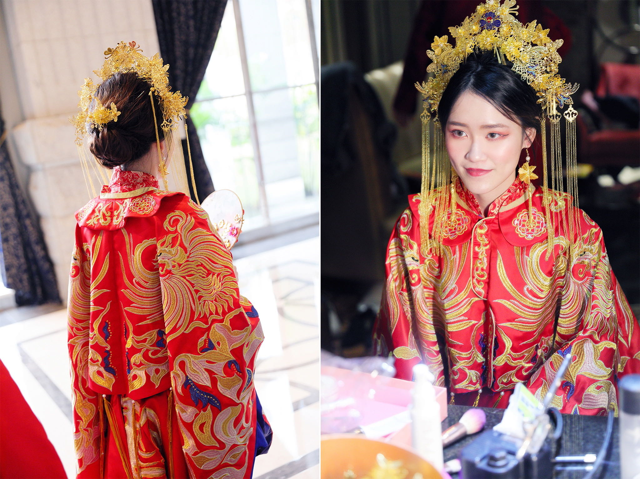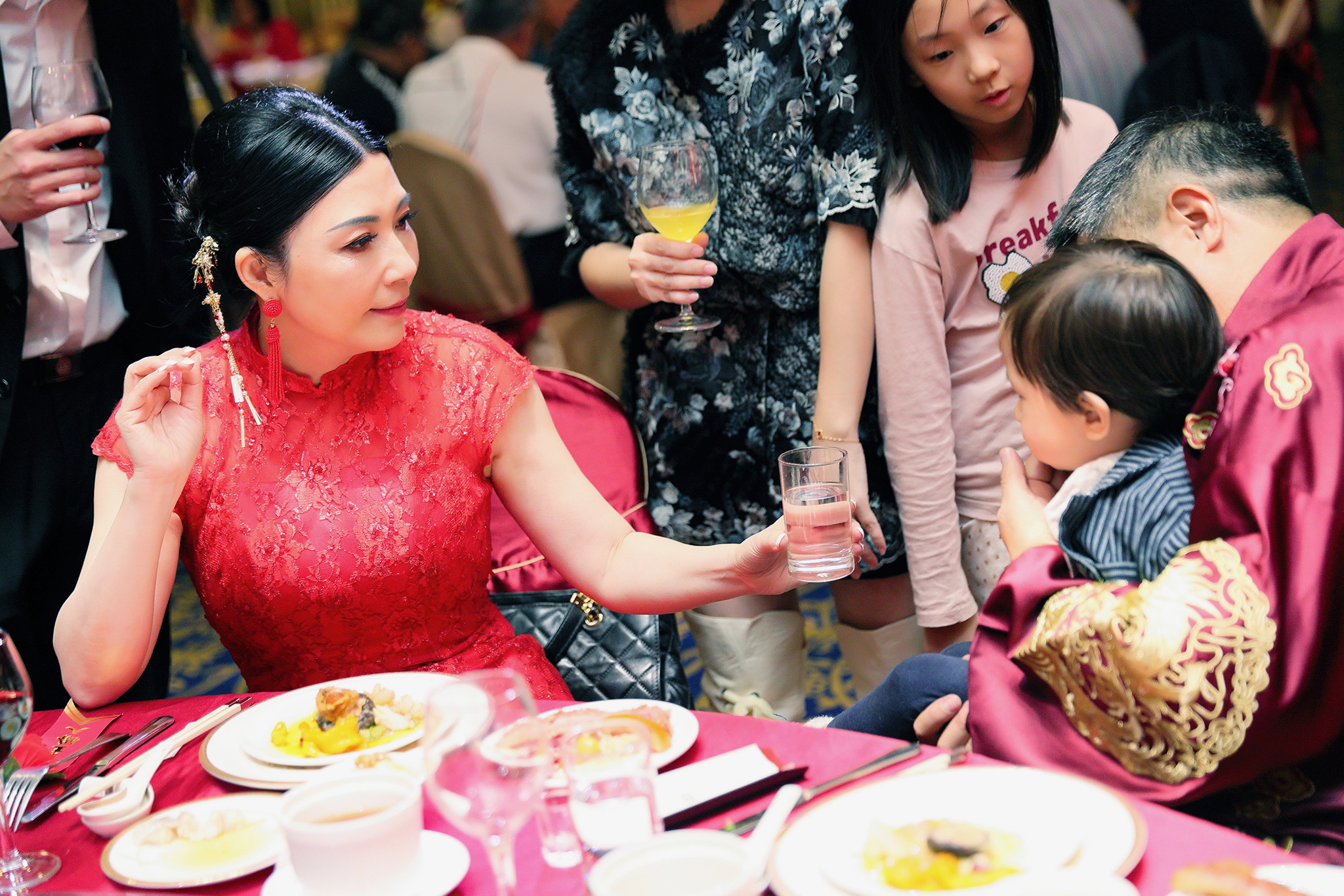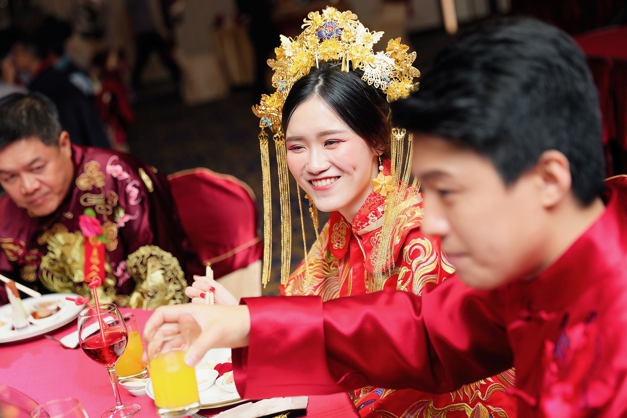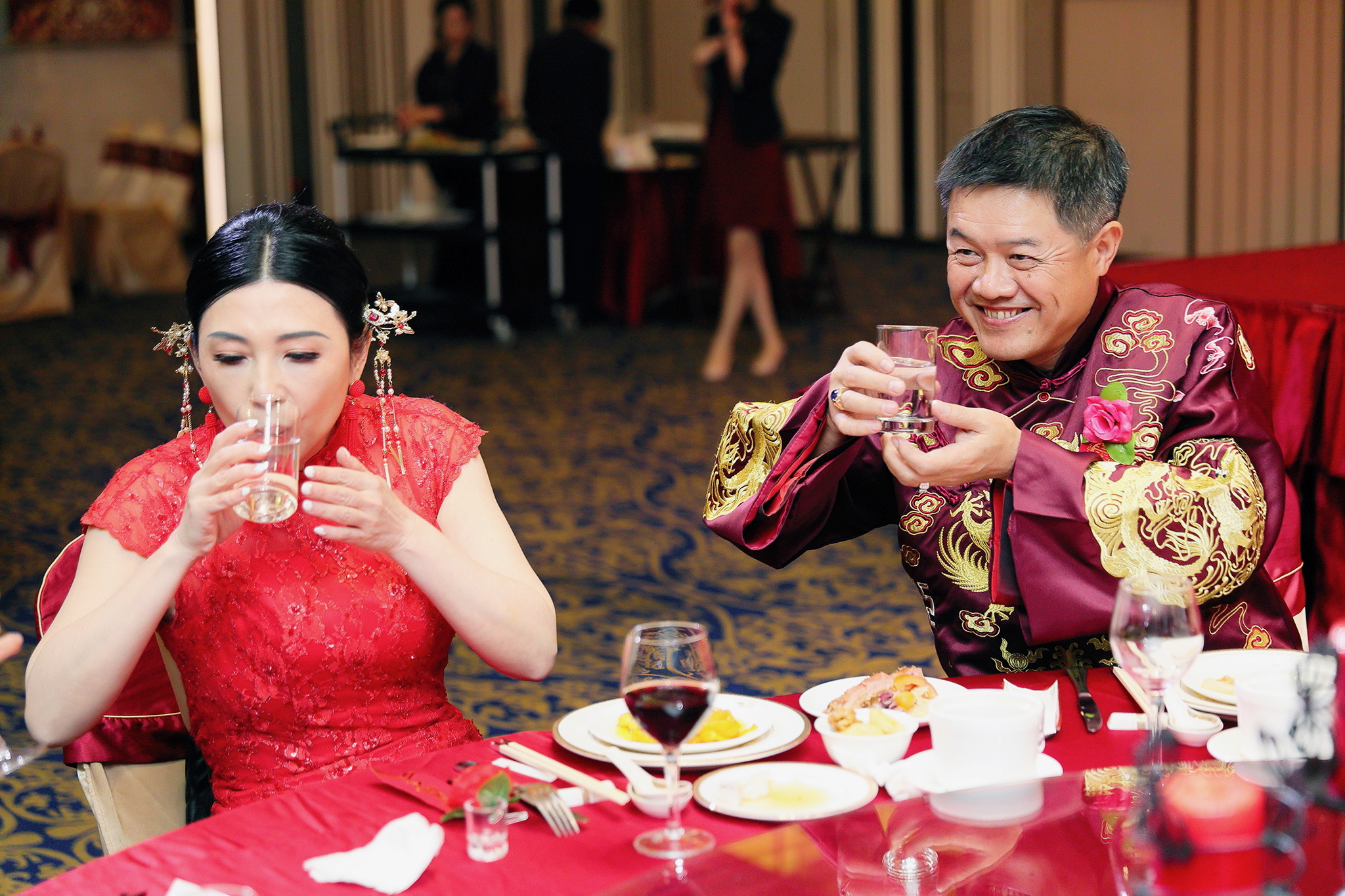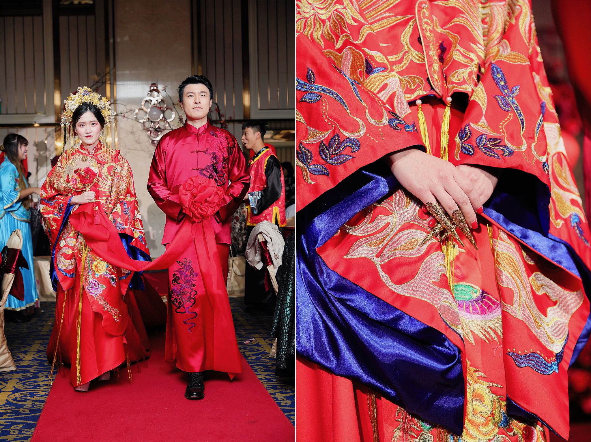 這場婚禮是由新娘的媽咪跟我洽詢的,因緣際會看了我拍攝其親友的婚禮,就直接來敲我檔期,哈 說來也還真是緣份呀!新人是在美國念書認識的,交往許久決定廝守終身,雖然只是簡單的純宴客,但從治裝就可以看出完全的走中國風,連進場歌曲都是<延禧攻略>,拍起來格外有fu,婚禮沒有一定要怎麼樣,只要你們喜歡都可以發揮其中,婚禮嘛!開心玩最重要