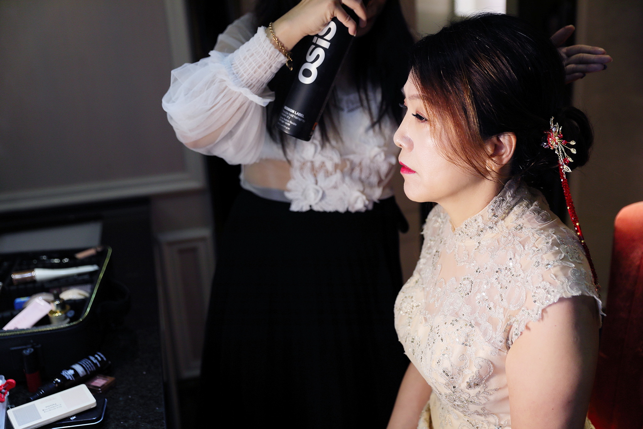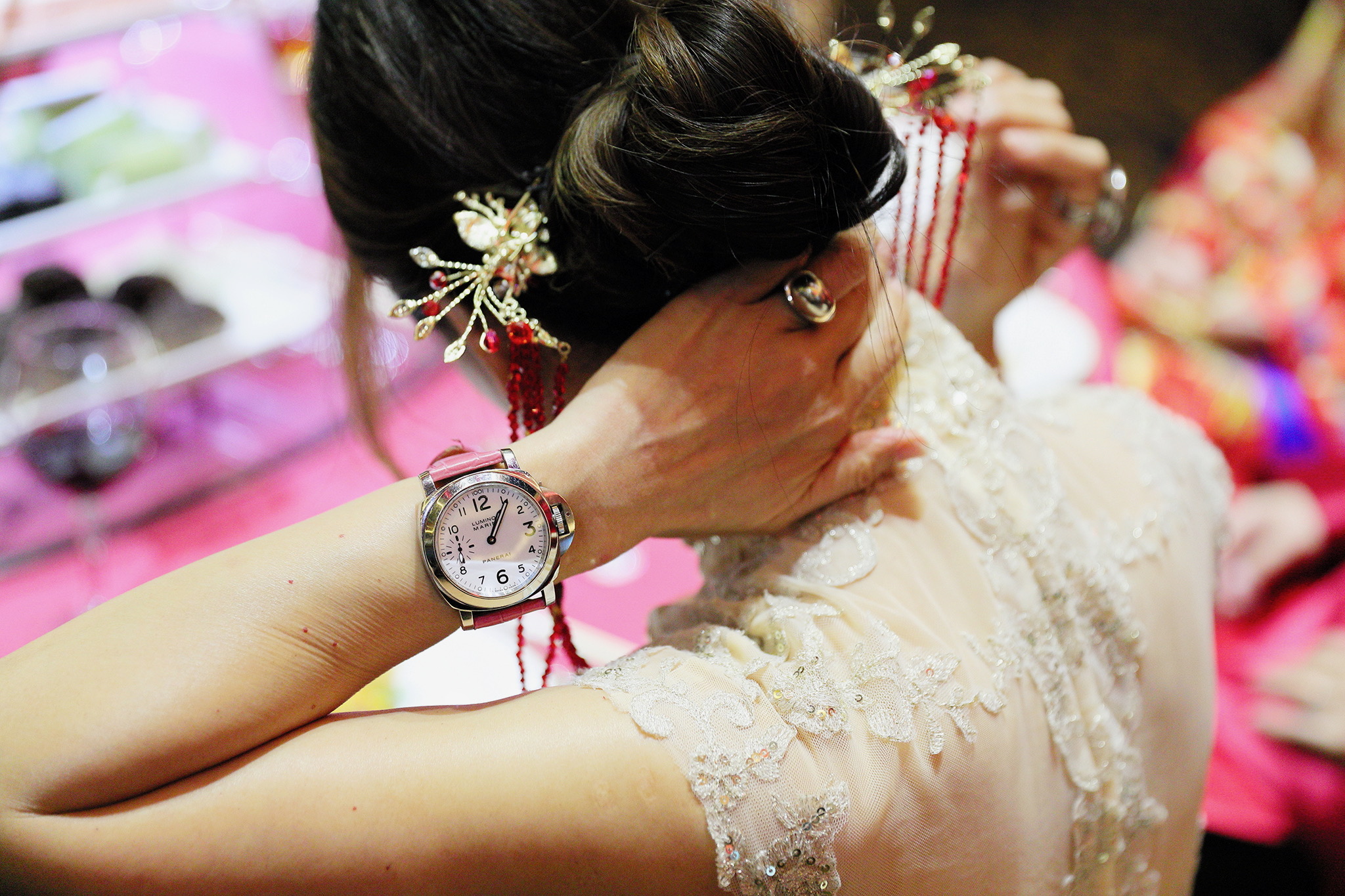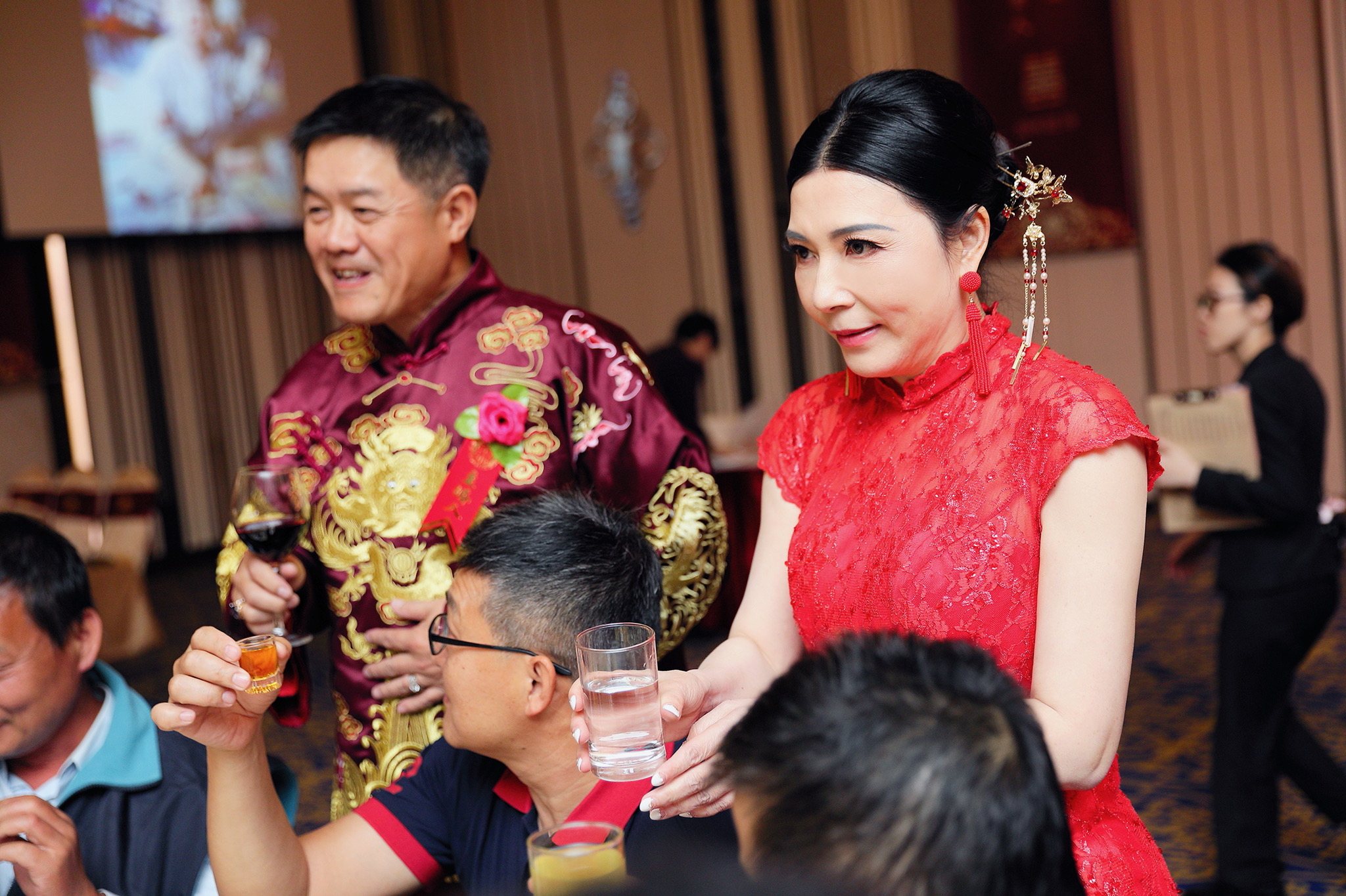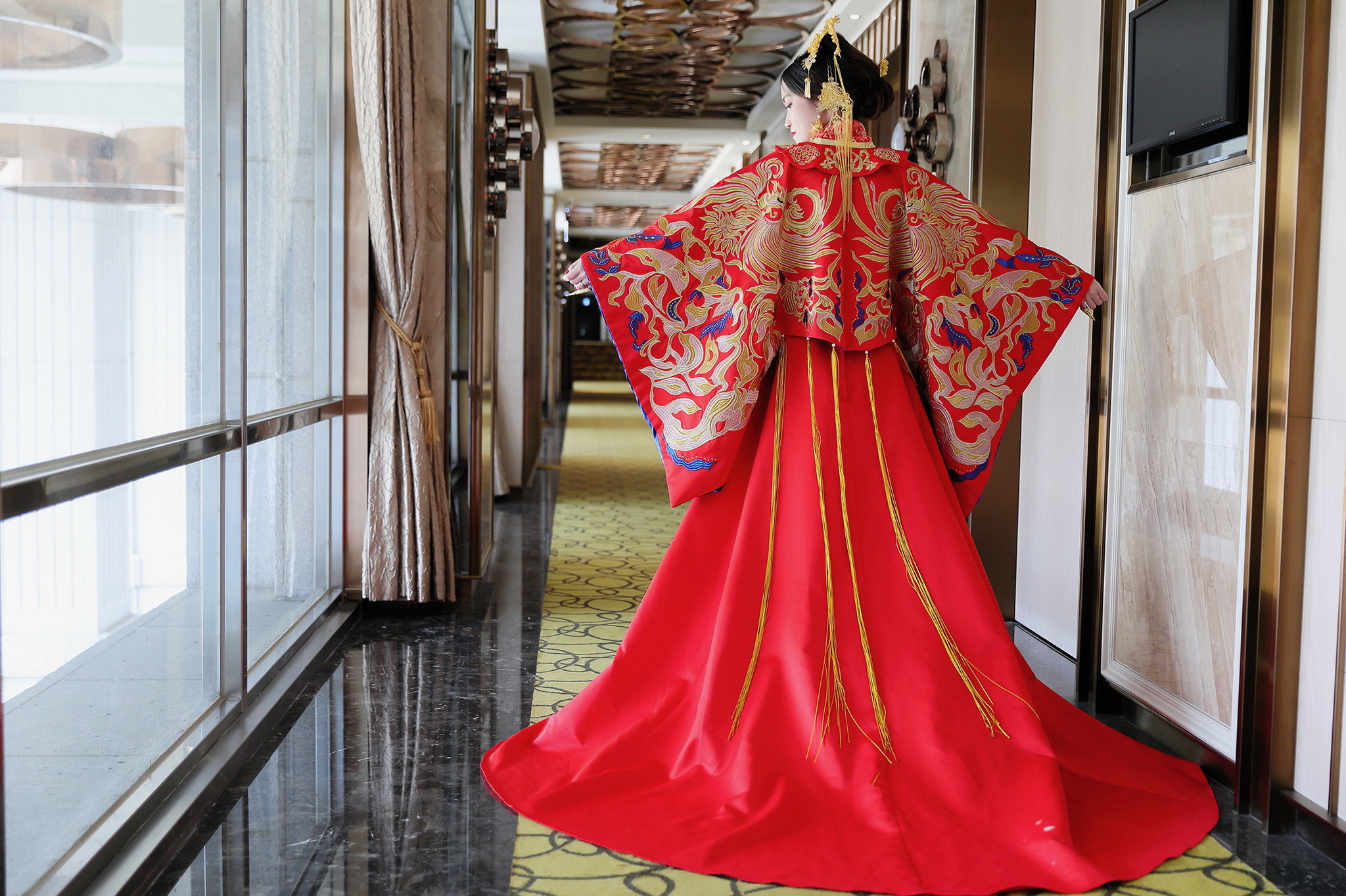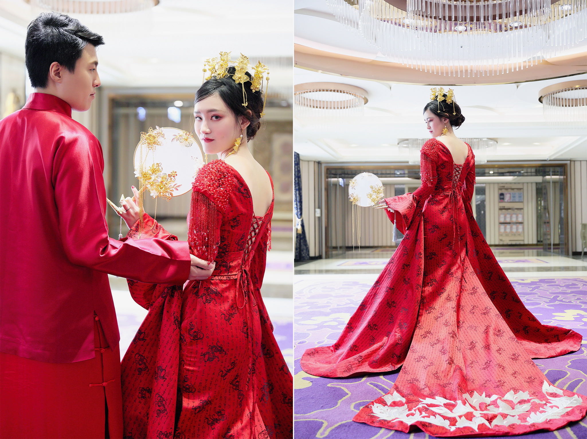 這場婚禮是由新娘的媽咪跟我洽詢的,因緣際會看了我拍攝其親友的婚禮,就直接來敲我檔期,哈 說來也還真是緣份呀!新人是在美國念書認識的,交往許久決定廝守終身,雖然只是簡單的純宴客,但從治裝就可以看出完全的走中國風,連進場歌曲都是<延禧攻略>,拍起來格外有fu,婚禮沒有一定要怎麼樣,只要你們喜歡都可以發揮其中,婚禮嘛!開心玩最重要