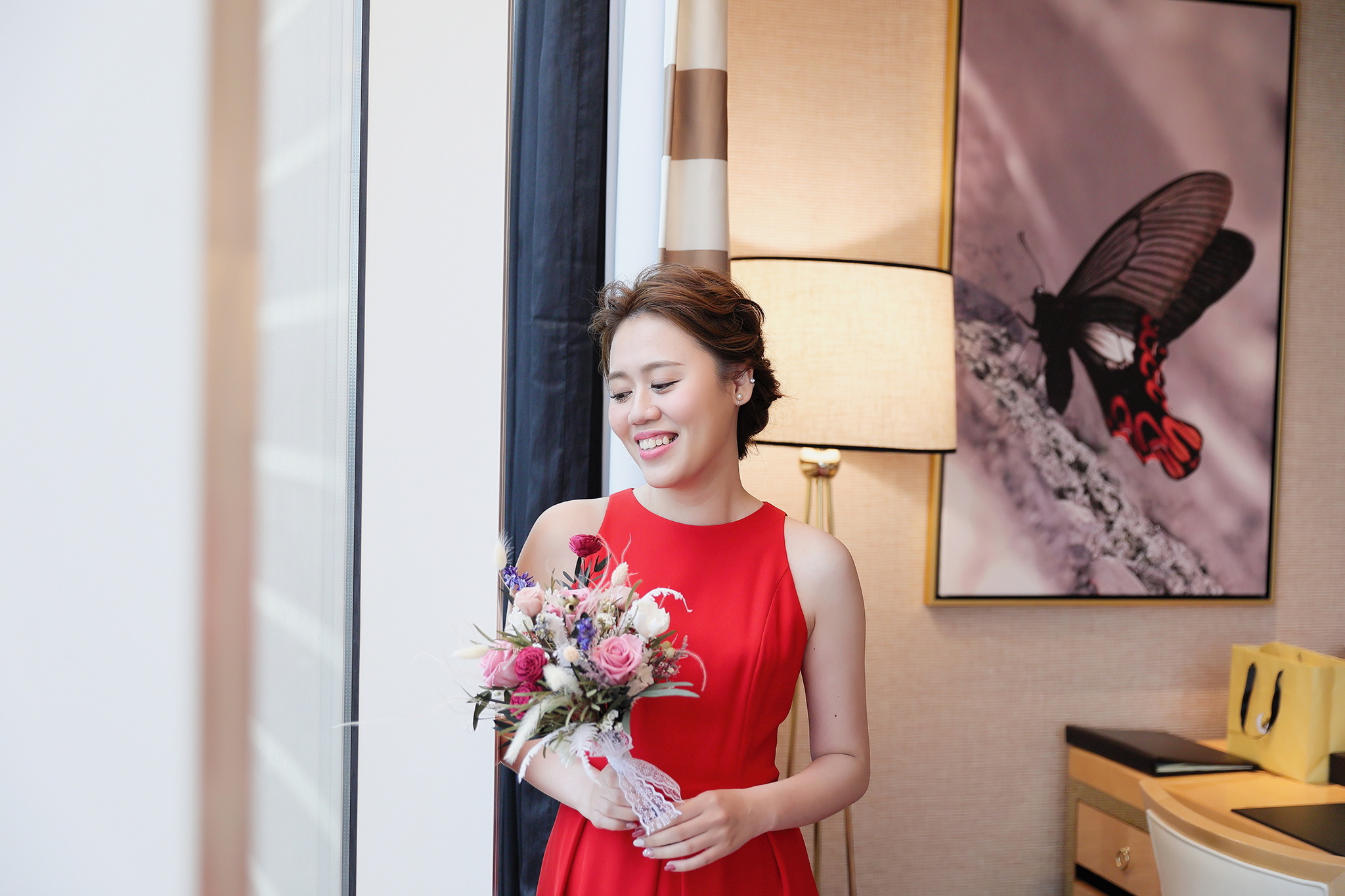 交件時看到喜悅的你們真的倍感窩心,連我自己都很開心你們這麼喜歡!雖然婚禮當天的戶外文定儀式,天空不作美下起雨來,但完全擋不住親友對你們的祝福與喜悅,婚禮當天只有短短相處,聊了一些澳洲打工的事,相信歷經旅外工作的辛苦經驗,更會在你們婚後成為最穩健的力量