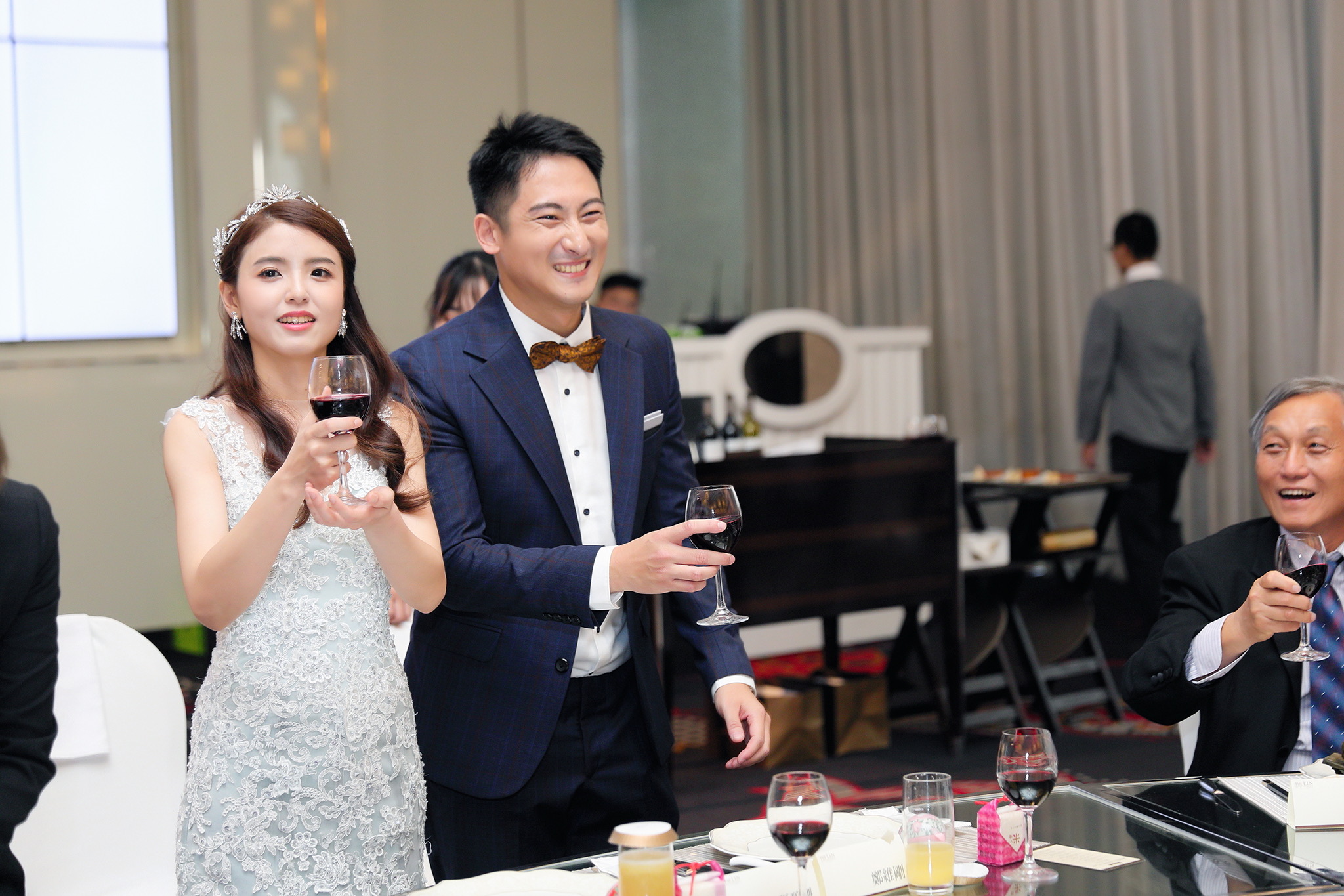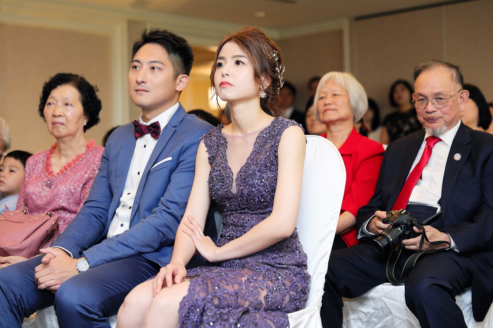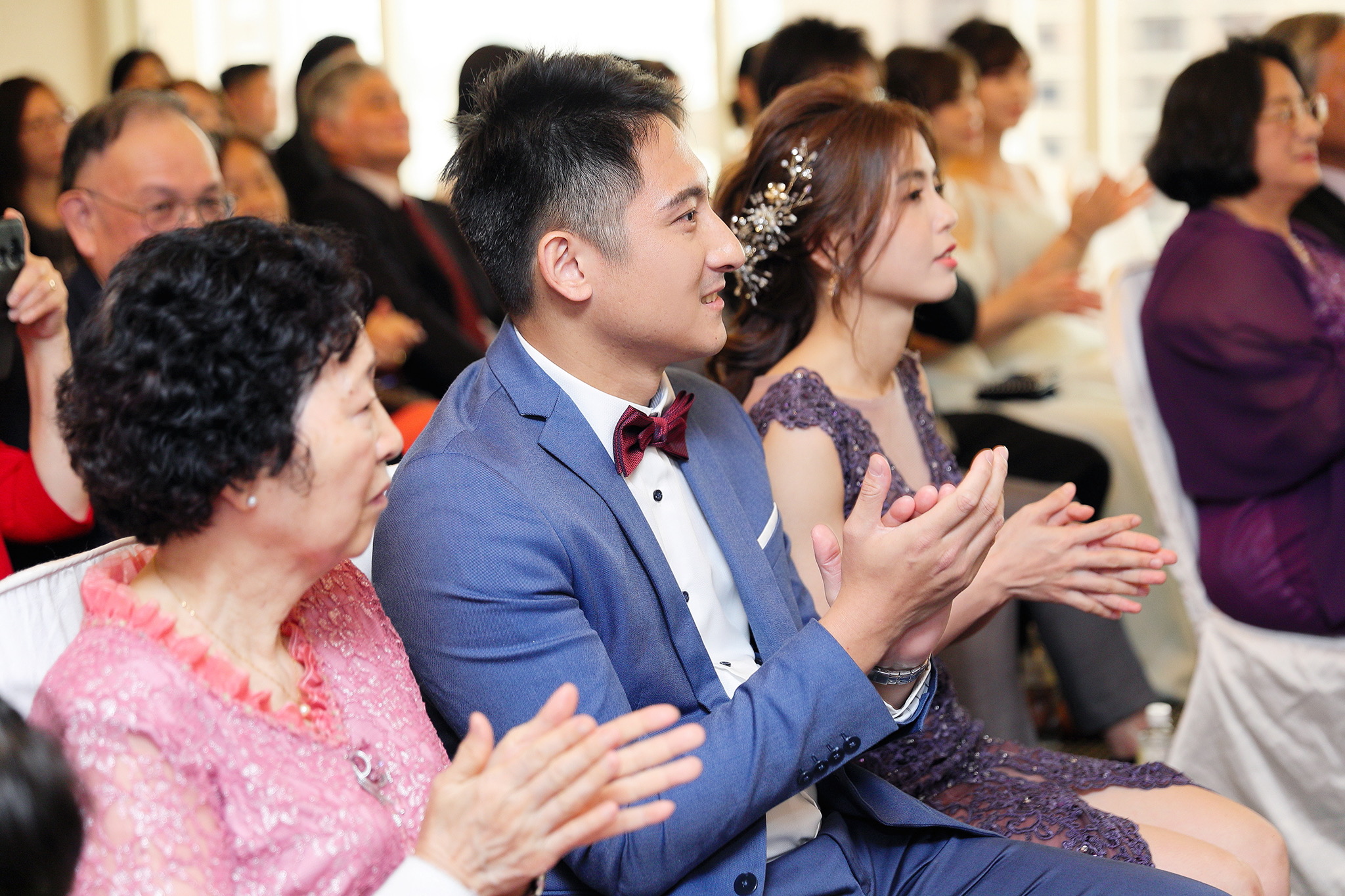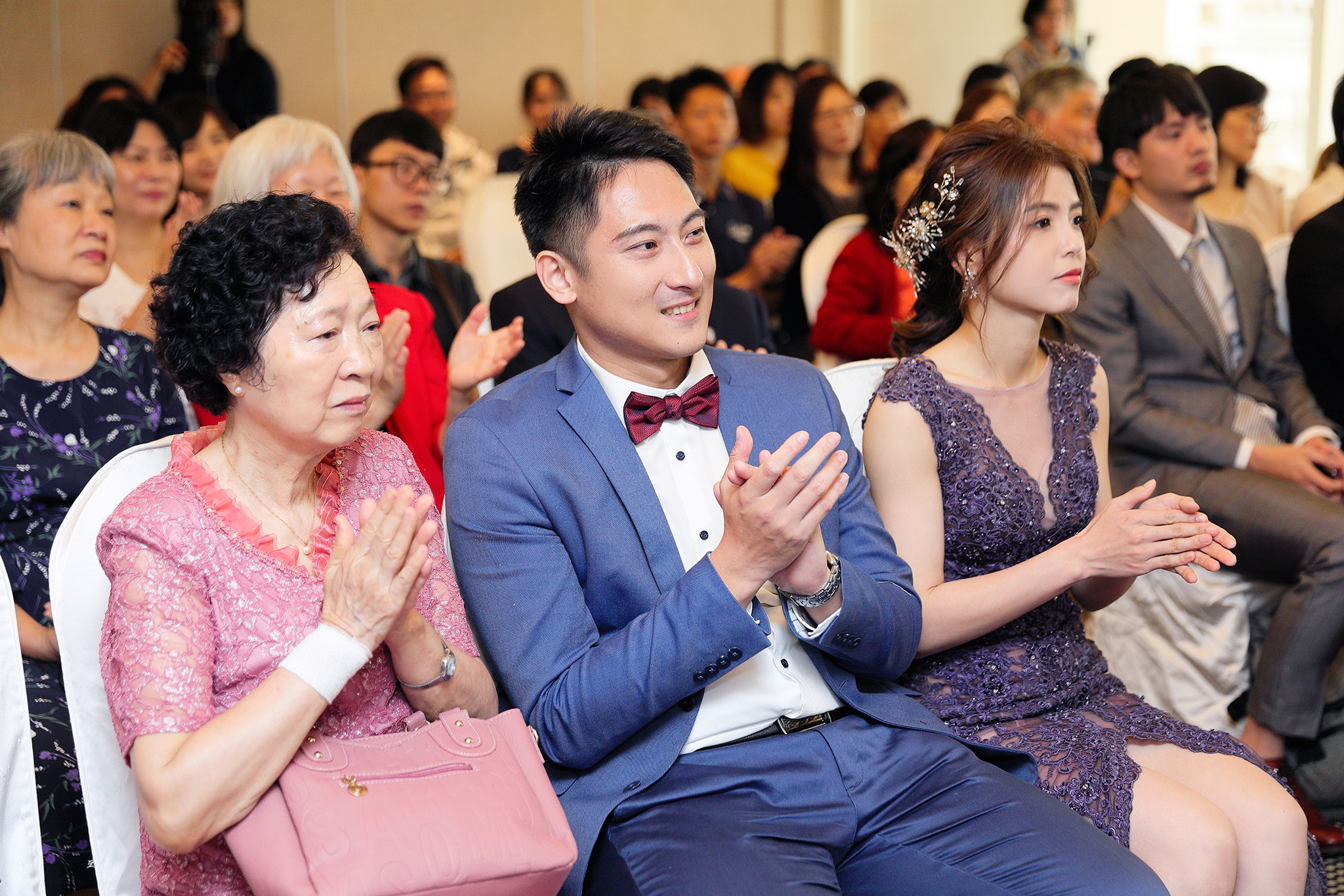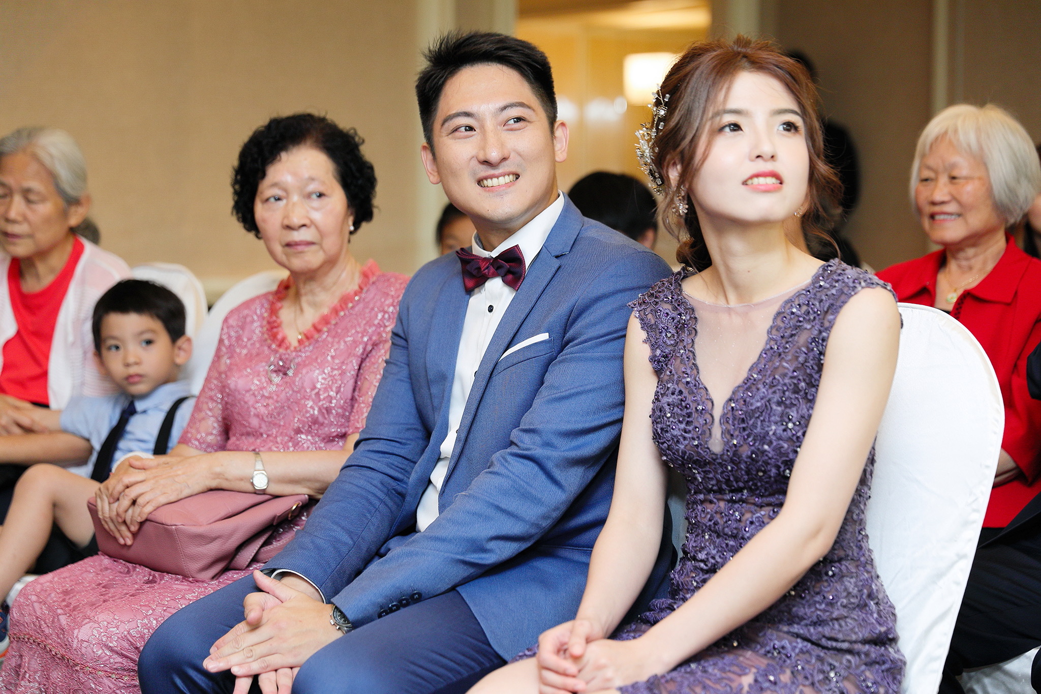 一般婚禮流程大致都維持著大同小異的相同性,這場卻有一點小小的不同,因為新郎的大伯對他而言就如同父親一樣重要,從小提攜教育成長,婚禮一開始就讓大伯主持最喜愛的古典音樂鑑賞,還在會場搬來了高級音響,還真讓我有些吃驚,鑑賞每一件作品時,都有著背後的含義,無非是從大伯心中給予最真誠的祝福,當天的喜悅自然不在話下,有家人的愛,有另一半的愛,人生如此,令人羨慕的幸福