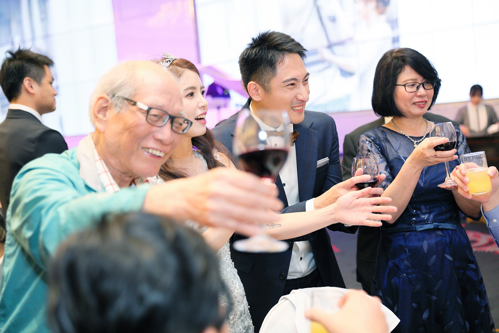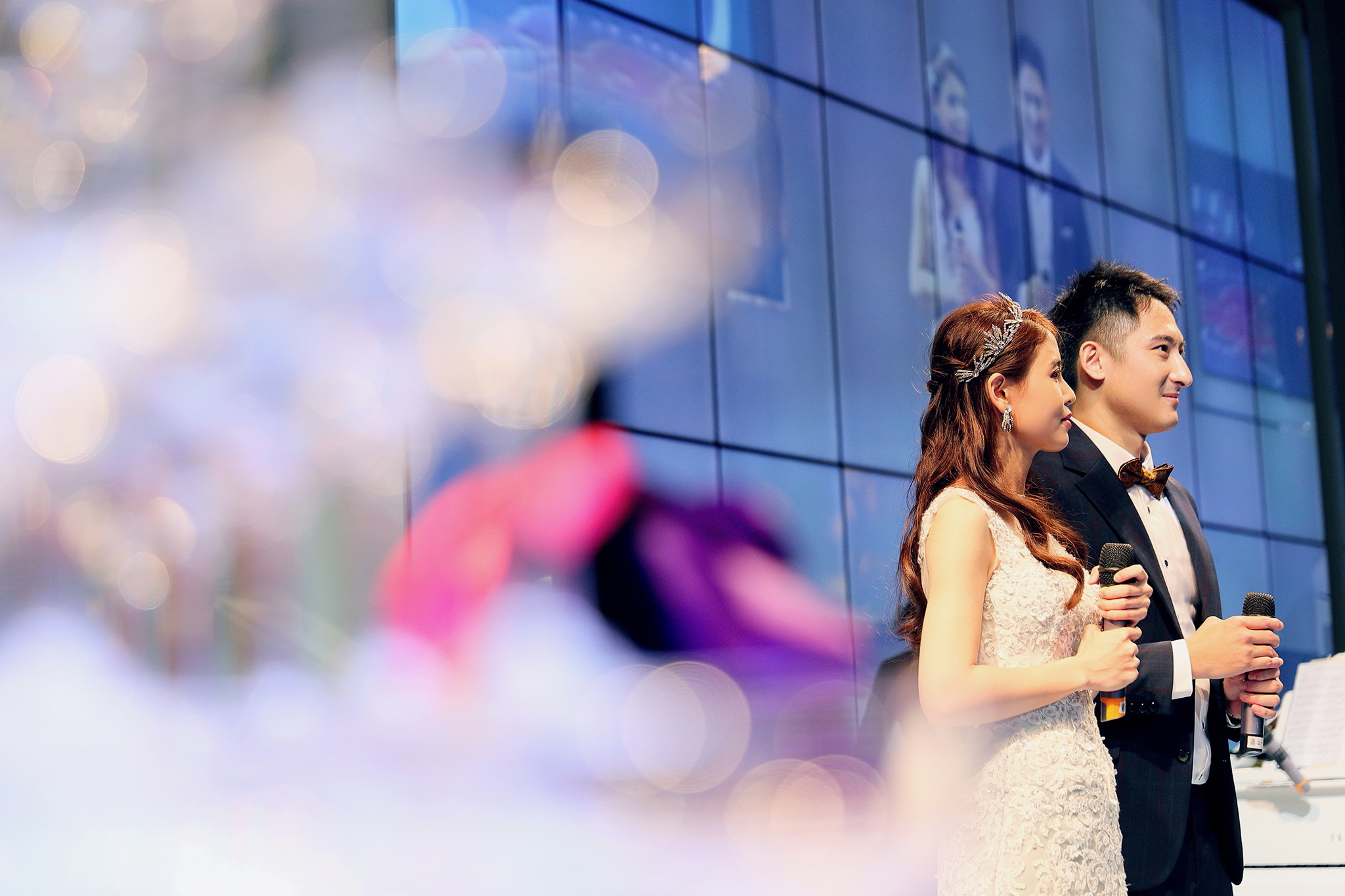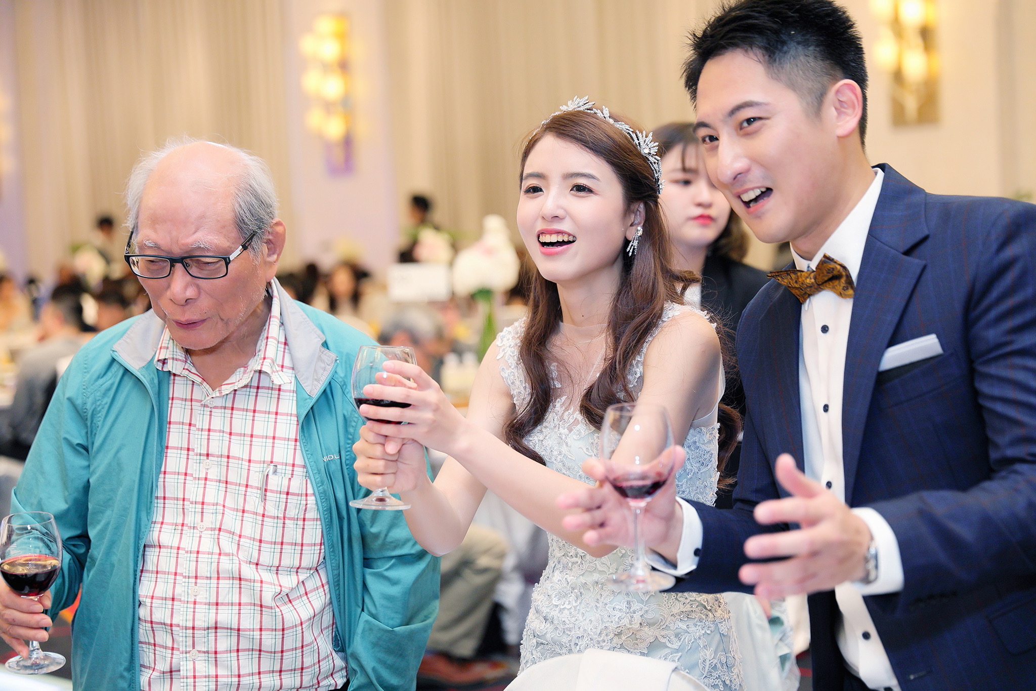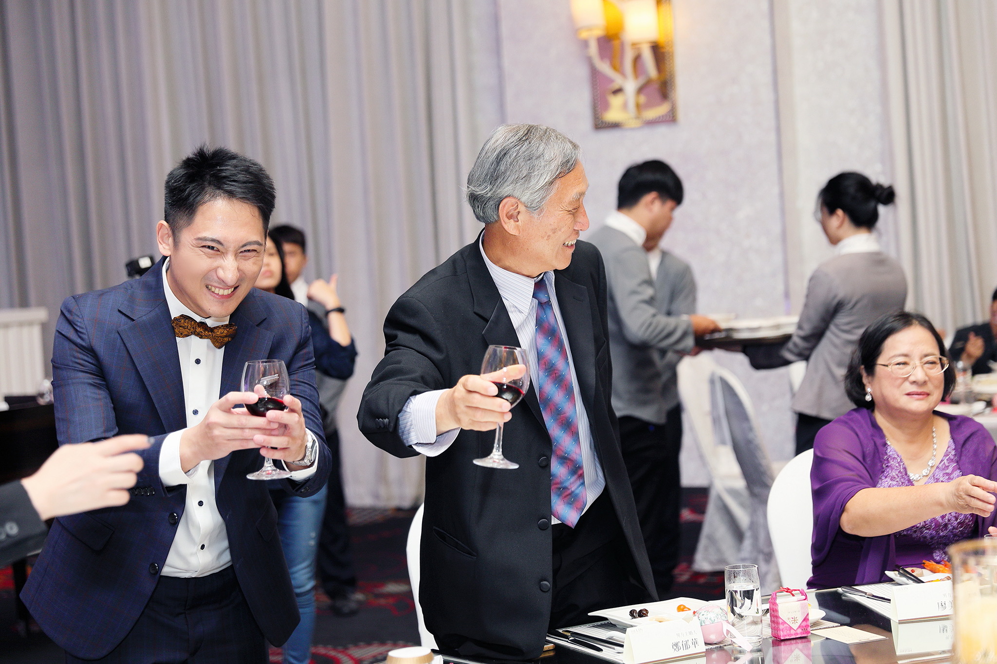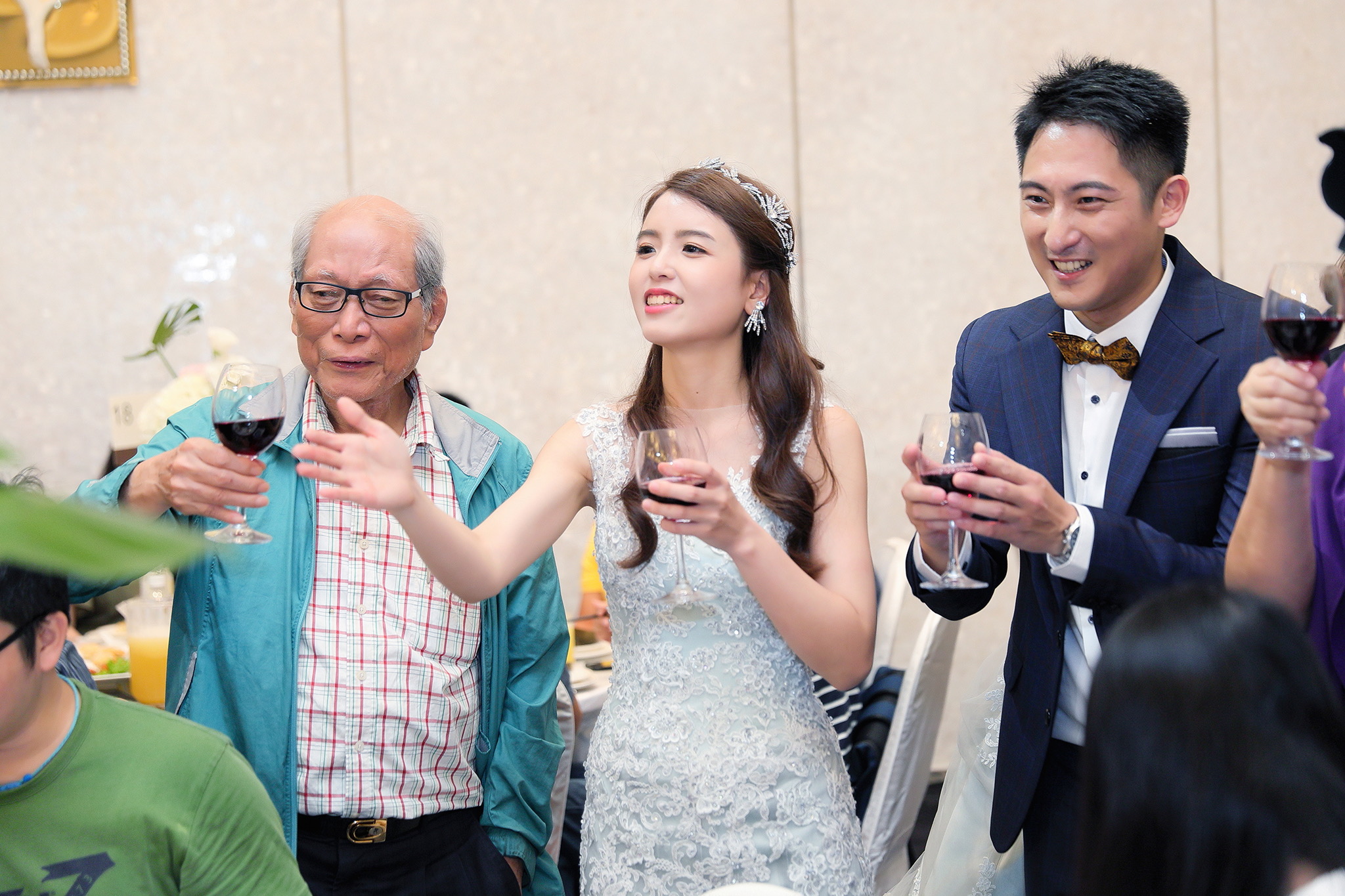 一般婚禮流程大致都維持著大同小異的相同性,這場卻有一點小小的不同,因為新郎的大伯對他而言就如同父親一樣重要,從小提攜教育成長,婚禮一開始就讓大伯主持最喜愛的古典音樂鑑賞,還在會場搬來了高級音響,還真讓我有些吃驚,鑑賞每一件作品時,都有著背後的含義,無非是從大伯心中給予最真誠的祝福,當天的喜悅自然不在話下,有家人的愛,有另一半的愛,人生如此,令人羨慕的幸福