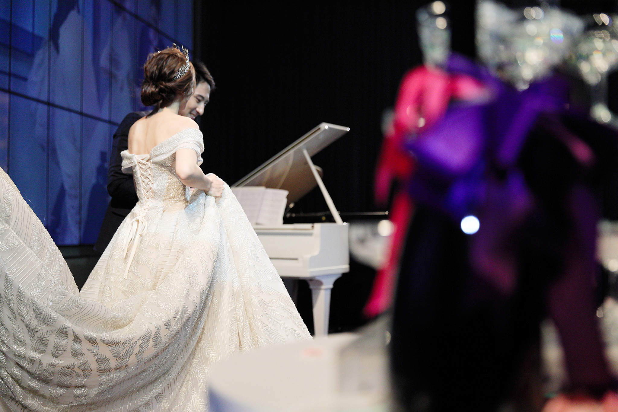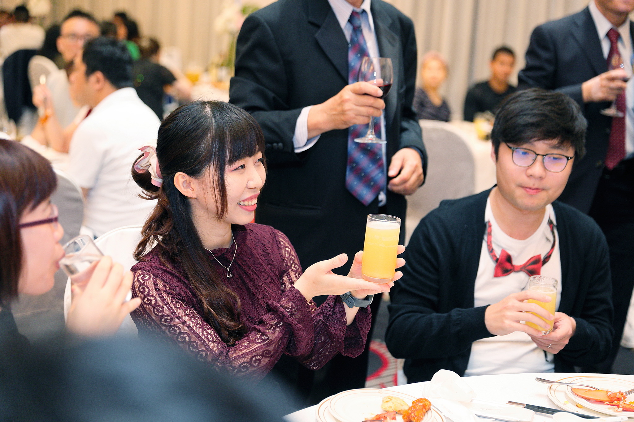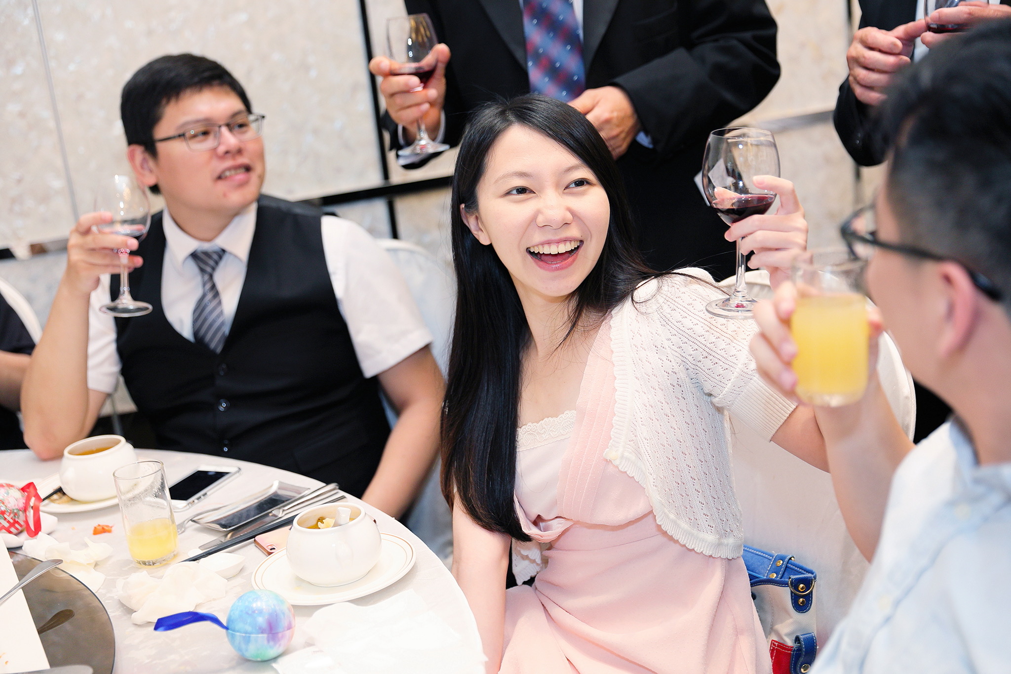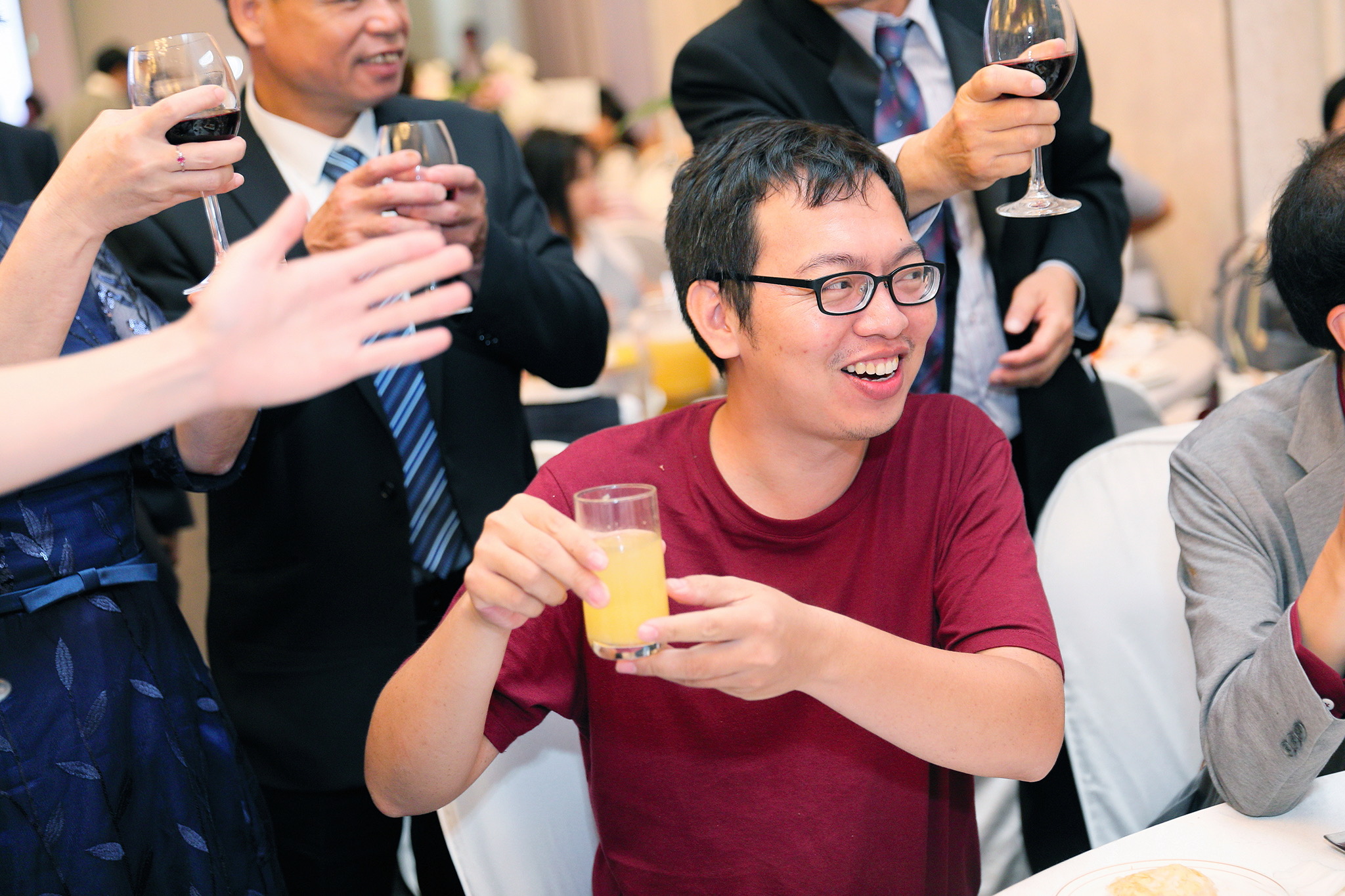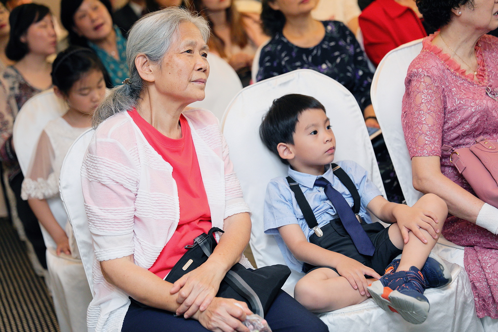 一般婚禮流程大致都維持著大同小異的相同性,這場卻有一點小小的不同,因為新郎的大伯對他而言就如同父親一樣重要,從小提攜教育成長,婚禮一開始就讓大伯主持最喜愛的古典音樂鑑賞,還在會場搬來了高級音響,還真讓我有些吃驚,鑑賞每一件作品時,都有著背後的含義,無非是從大伯心中給予最真誠的祝福,當天的喜悅自然不在話下,有家人的愛,有另一半的愛,人生如此,令人羨慕的幸福